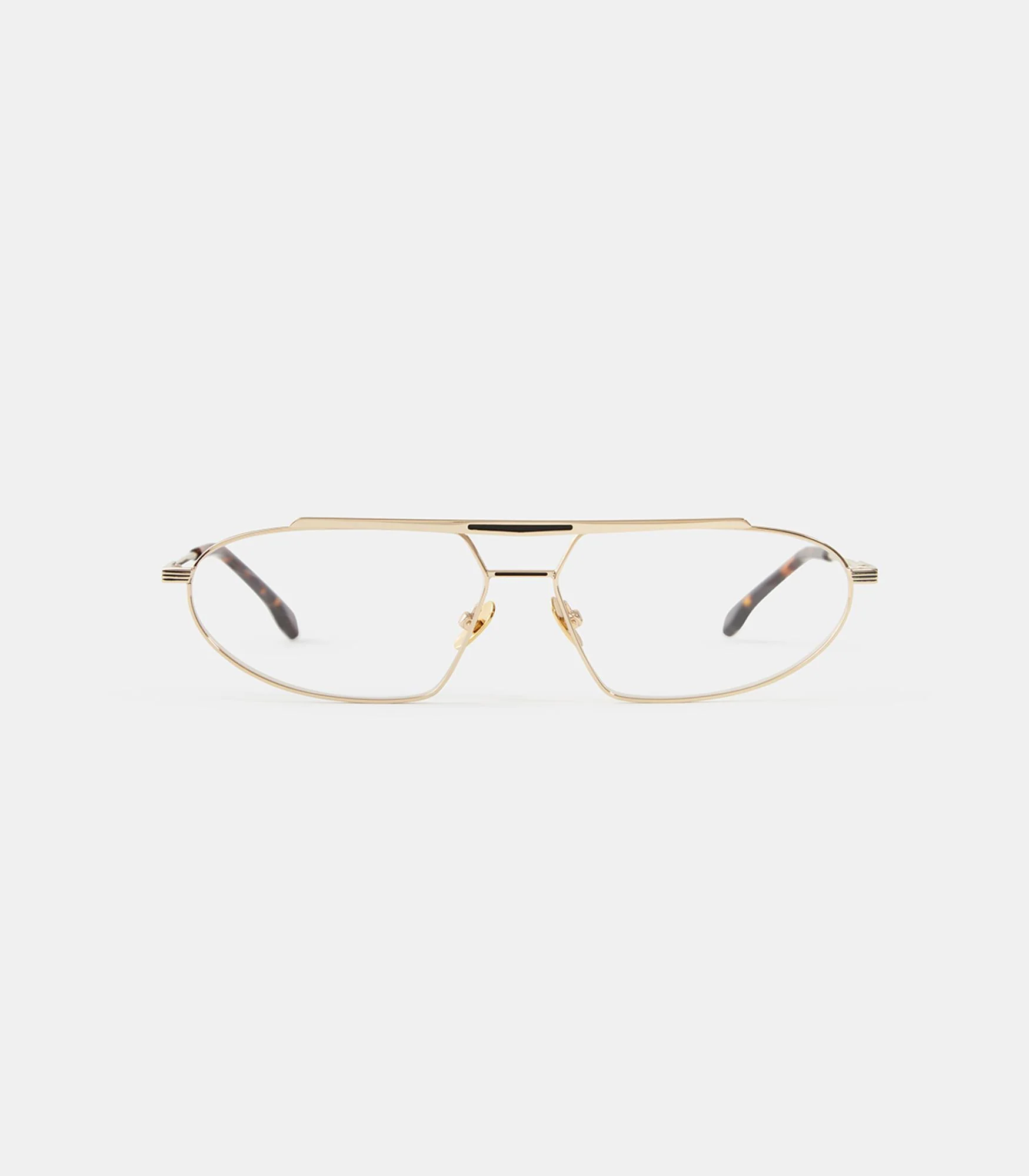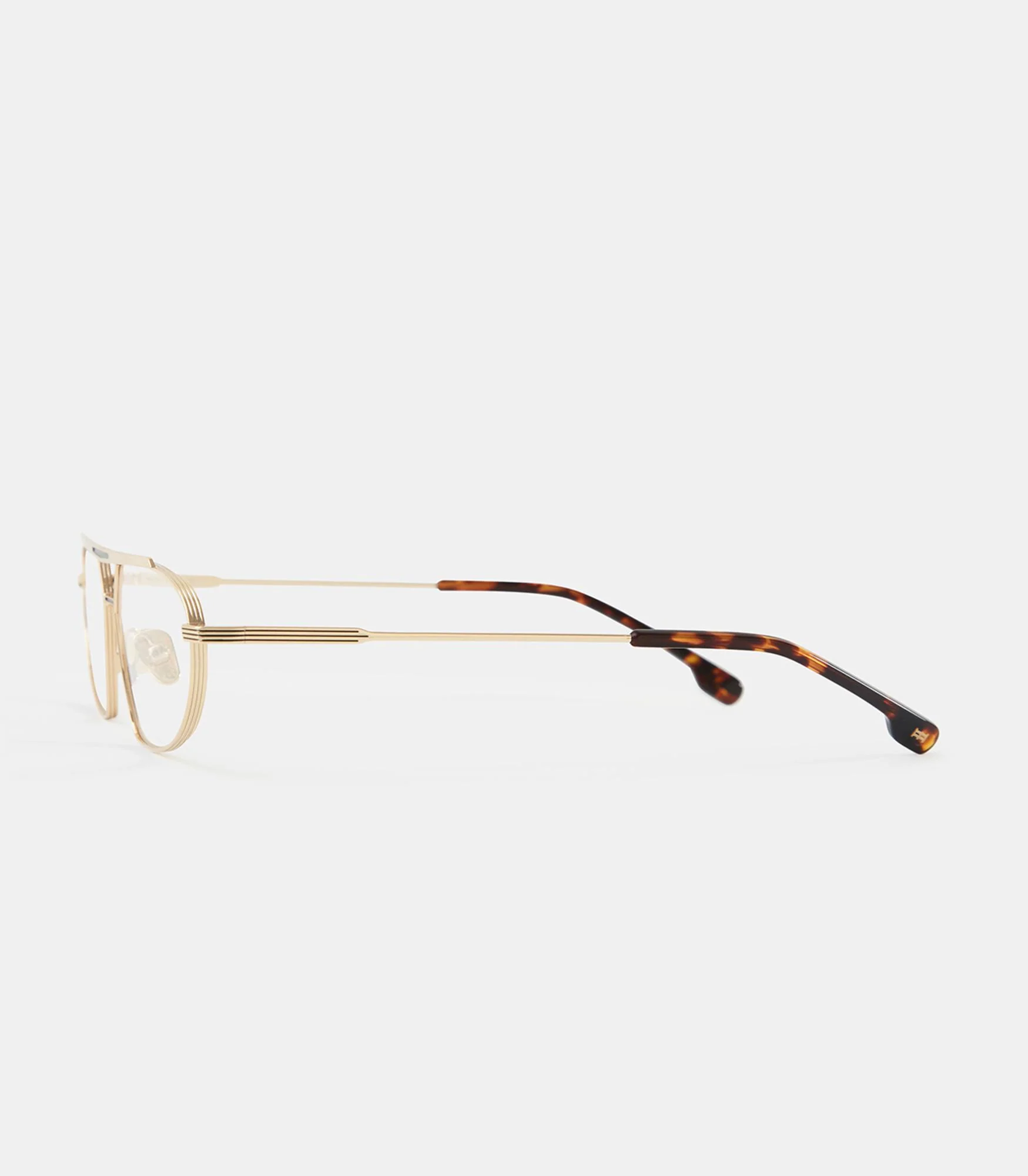 Monture futuriste en acier inoxydable à double pont. Lignes fines et striées.