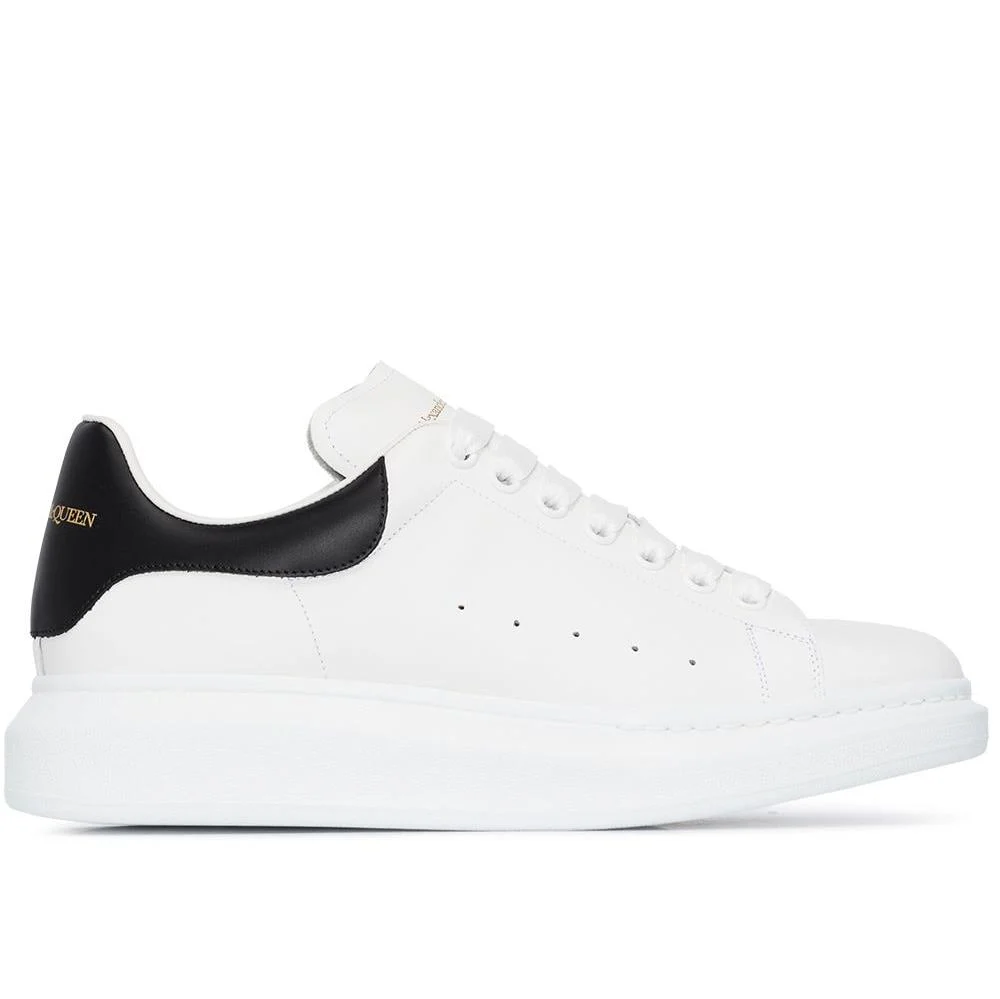 Baskets Oversized en cuir en cuir Alexander McQueen avec bout rond, contrefort contrastant, languette à logo imprimé, détails de perforations, fermeture à lacer sur le devant et semelle à plateforme en caoutchouc.