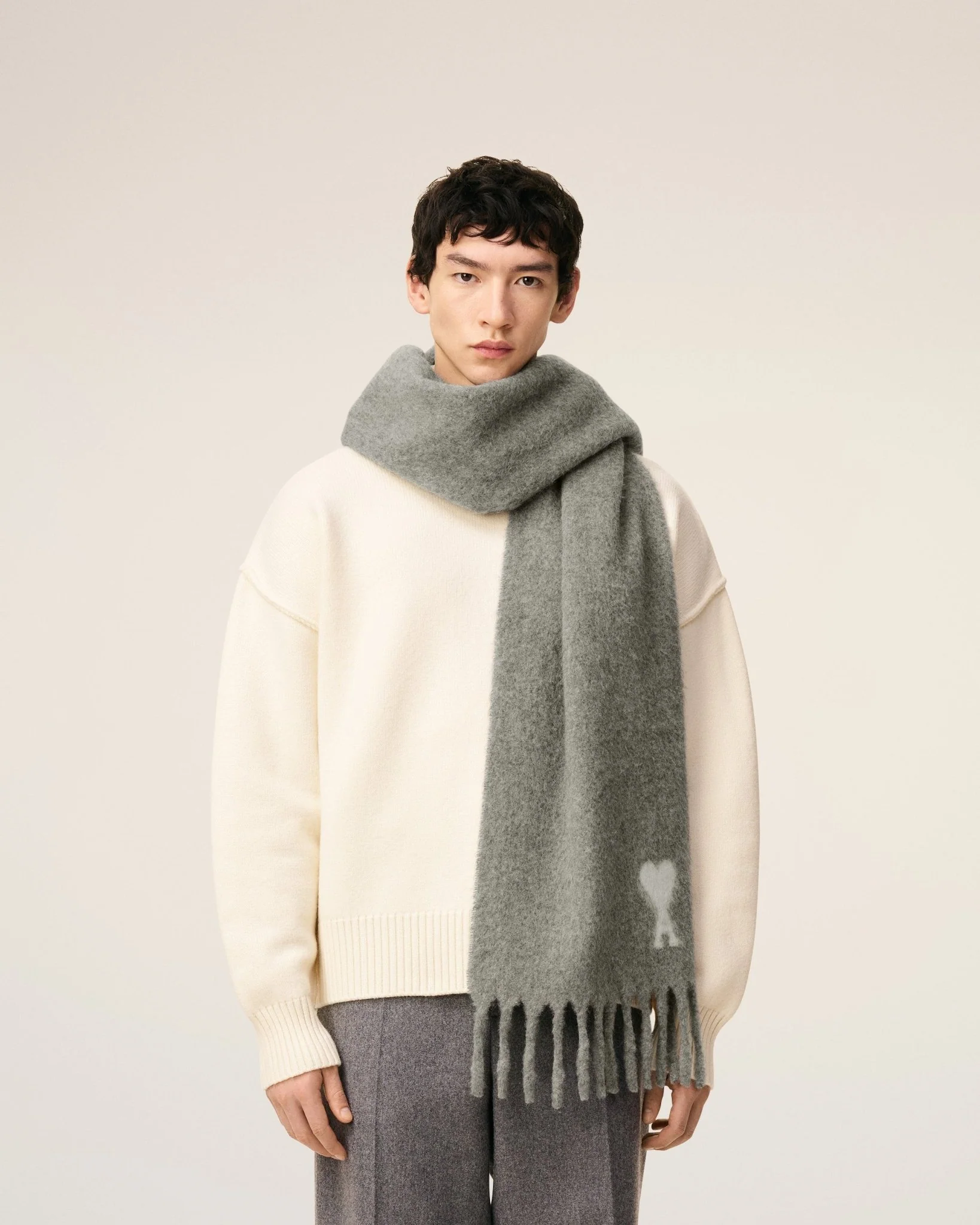 AMI – Écharpe grise ami de cœur en alpaga