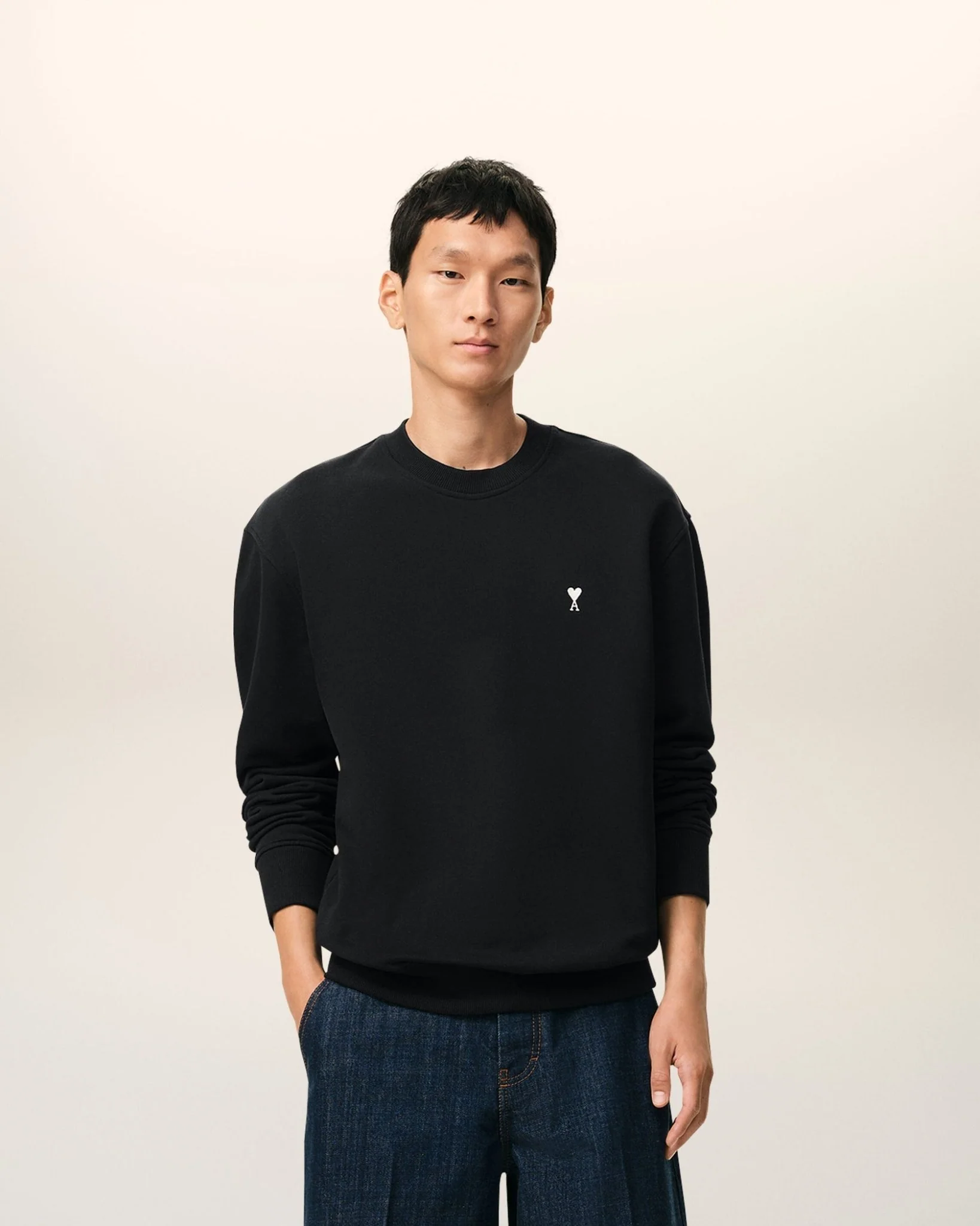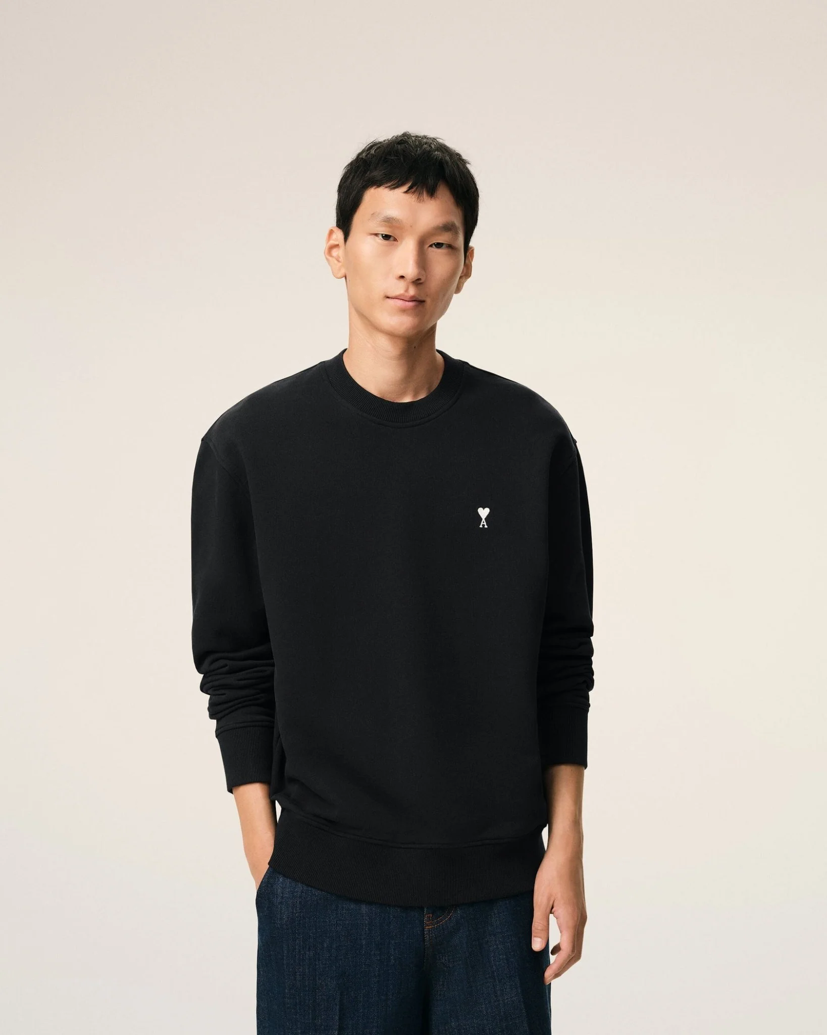 AMI – Sweatshirt Noir Ami de Cœur en Coton