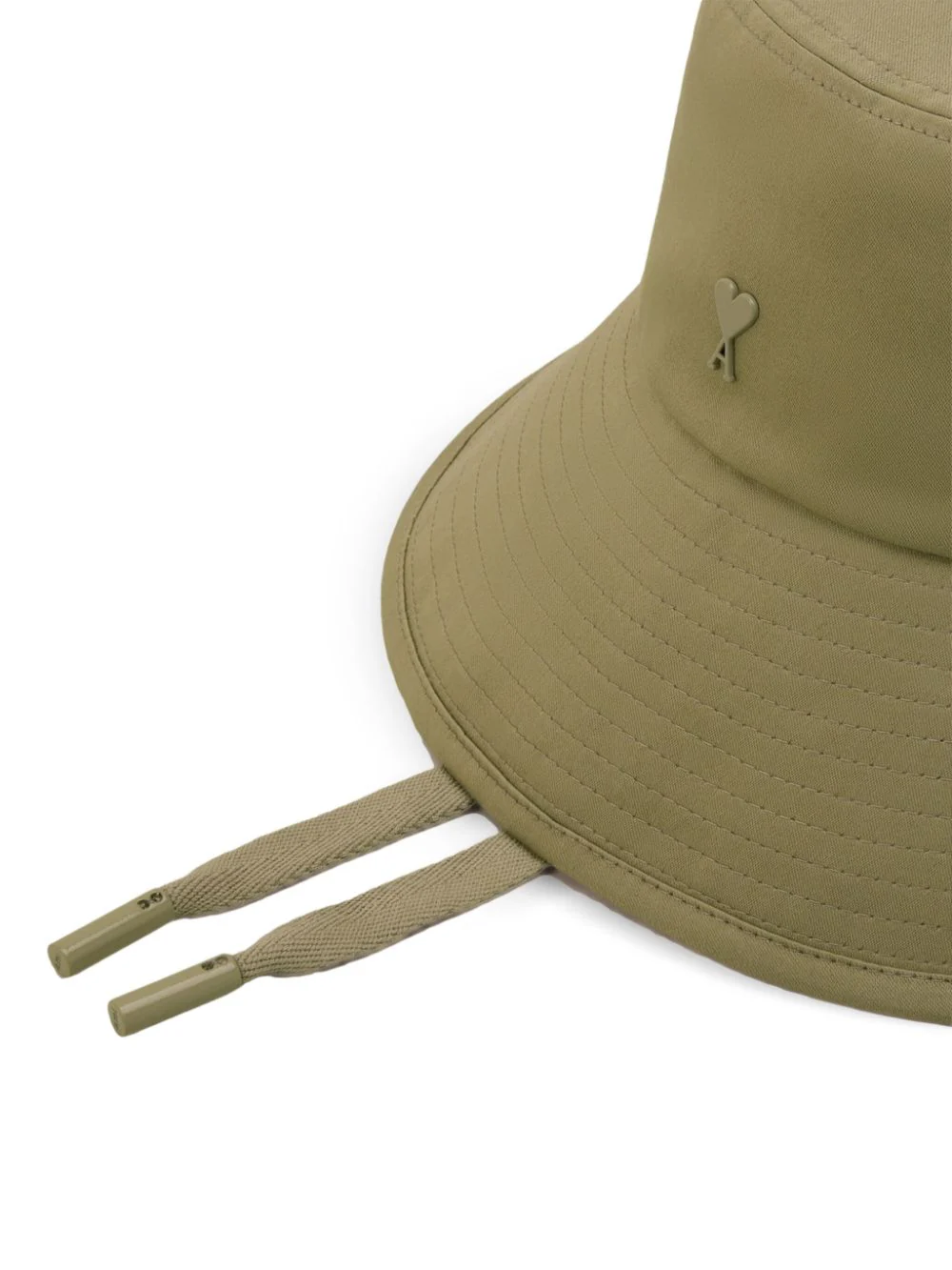 bob à logo Fabrication : Italie vert sauge coton armure gabardine logo Ami de Coeur signature détails d’œillets couronne plate bord large tombant lien de resserrage coton 100% Le mannequin porte la taille 58. ID de la marque : Euha233.co0009 317 sauge