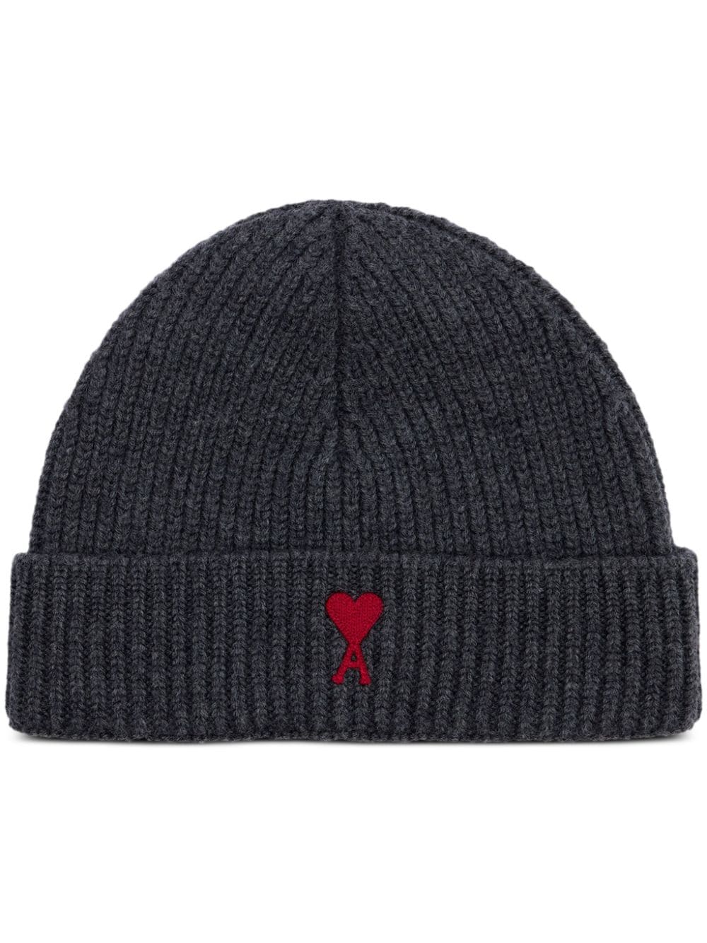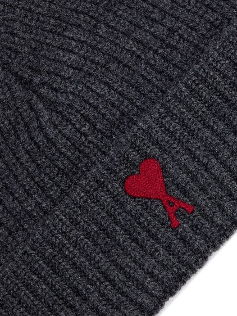 AMI – Bonnet Gris Ami De Cœur En Alpaga Rayé