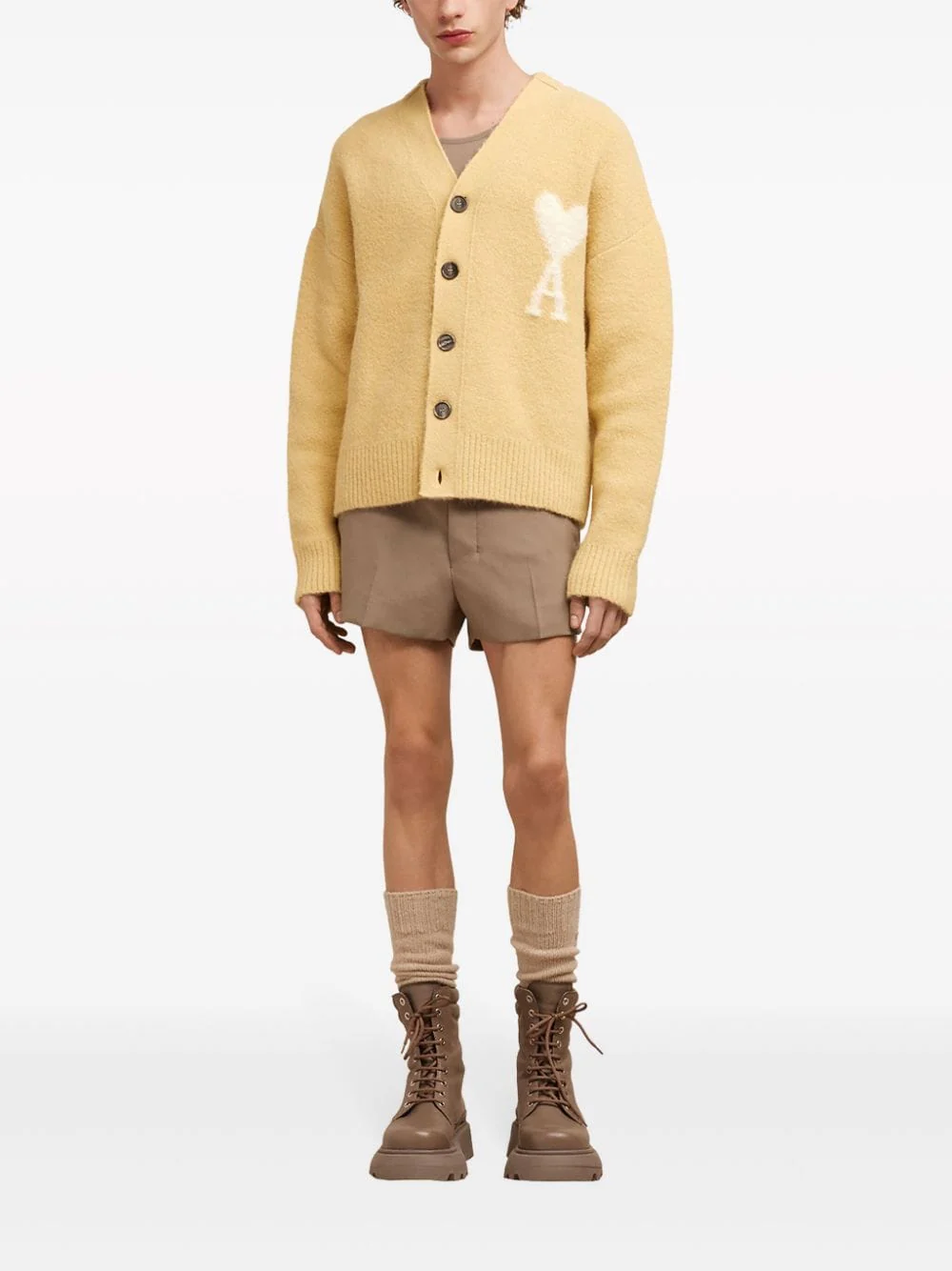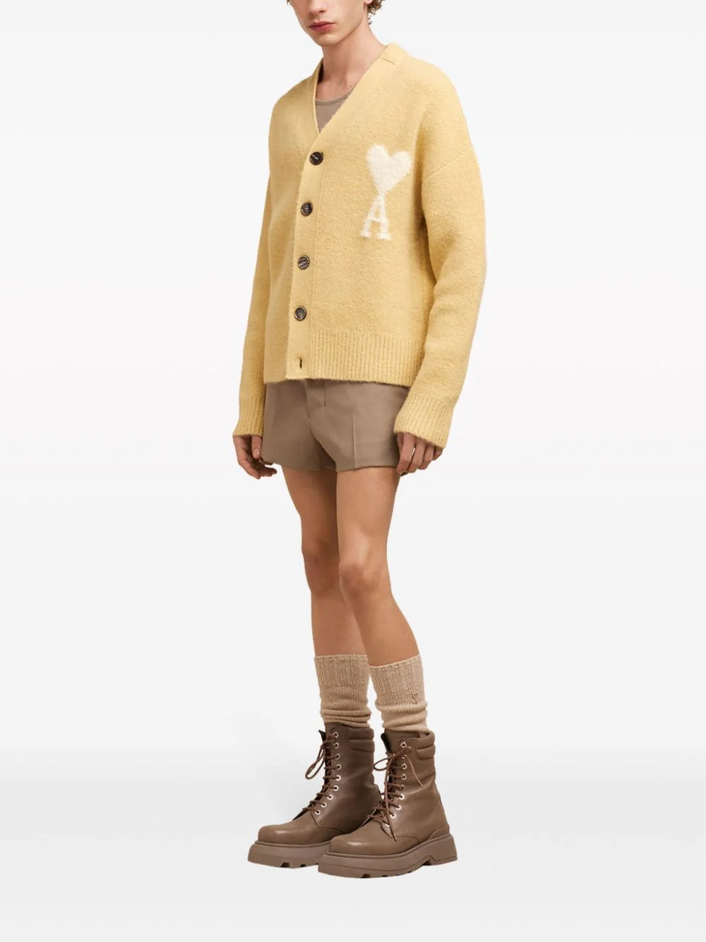 AMI Paris – Cardigan jaune Maille Nuage Ami de Coeur