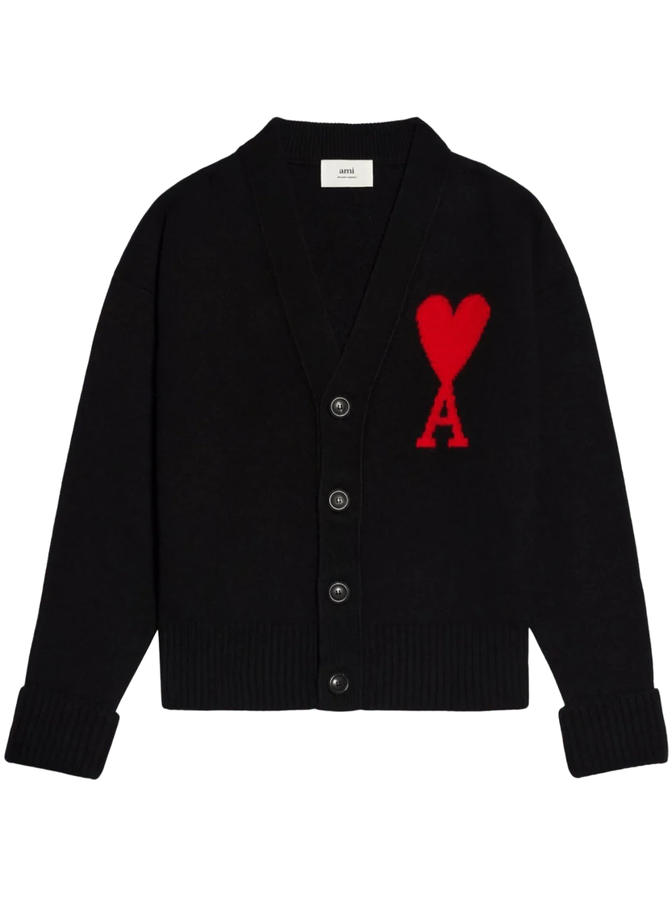 AMI Paris – Cardigan unisexe Ami de Coeur Noir/rouge