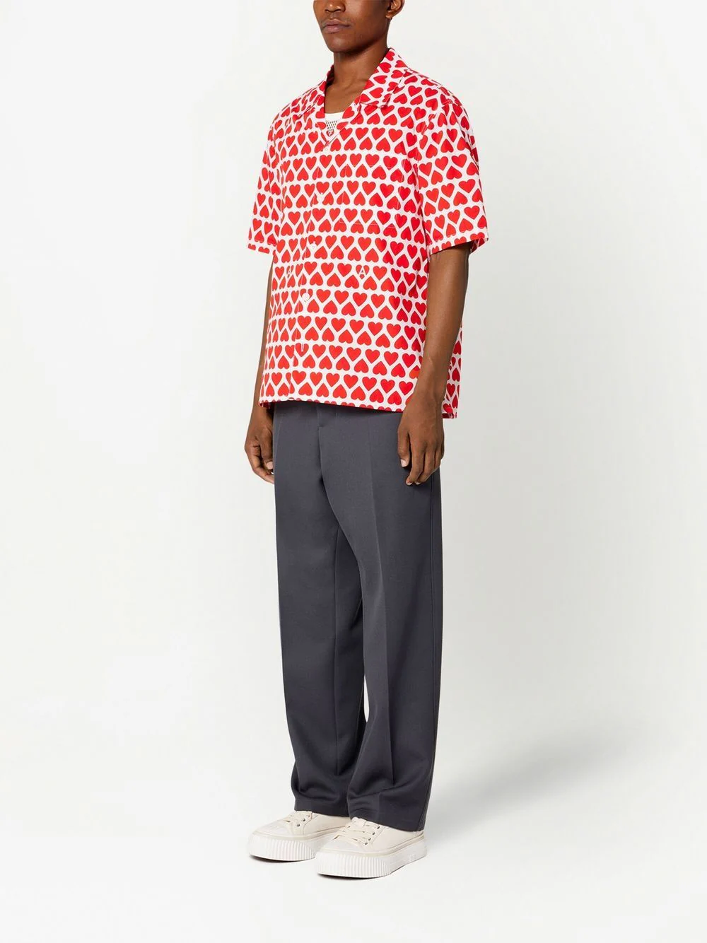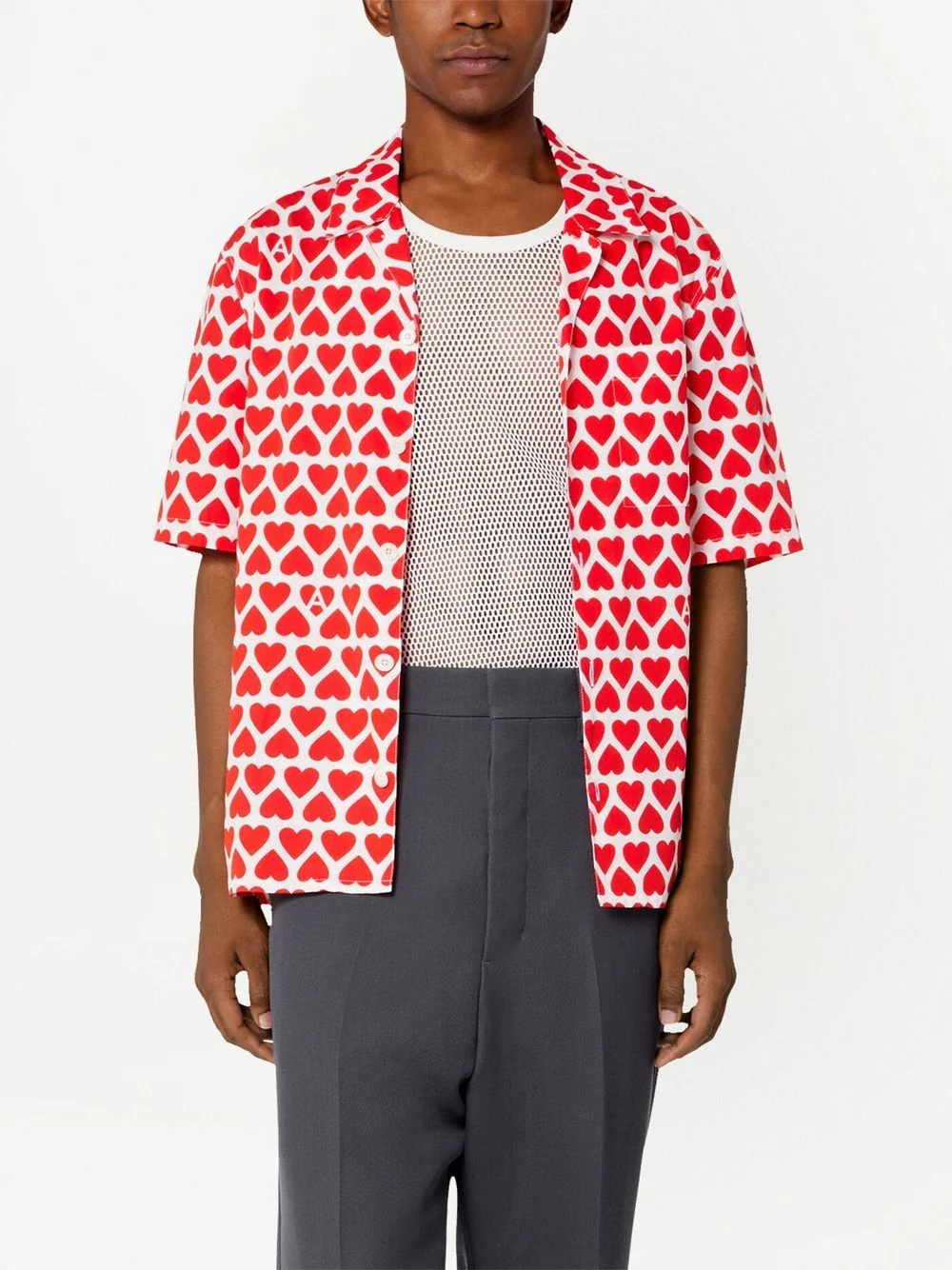 AMI Paris – Chemisette rouge à imprimé coeur