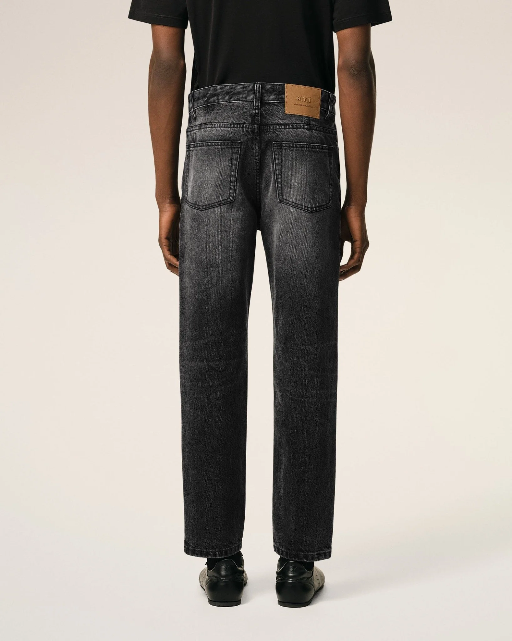 Denim indigo noir offrant une bonne tenue et une patine progressive, fidèle à l’ADN contemporain de AMI Paris.