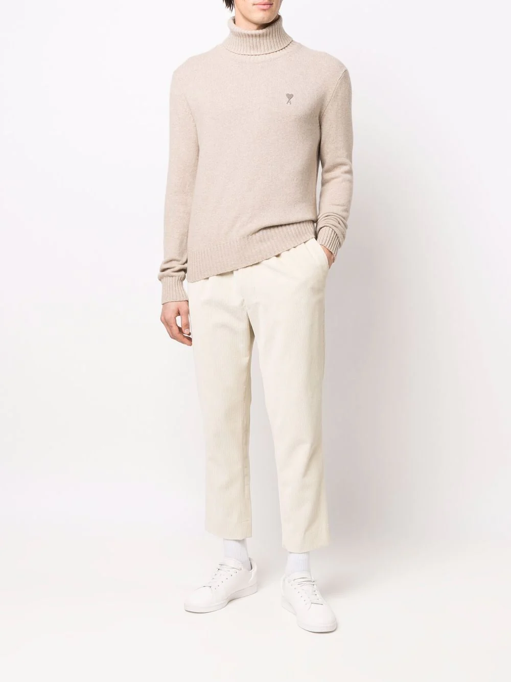AMI Paris Pantalon écru en velours côtelé
