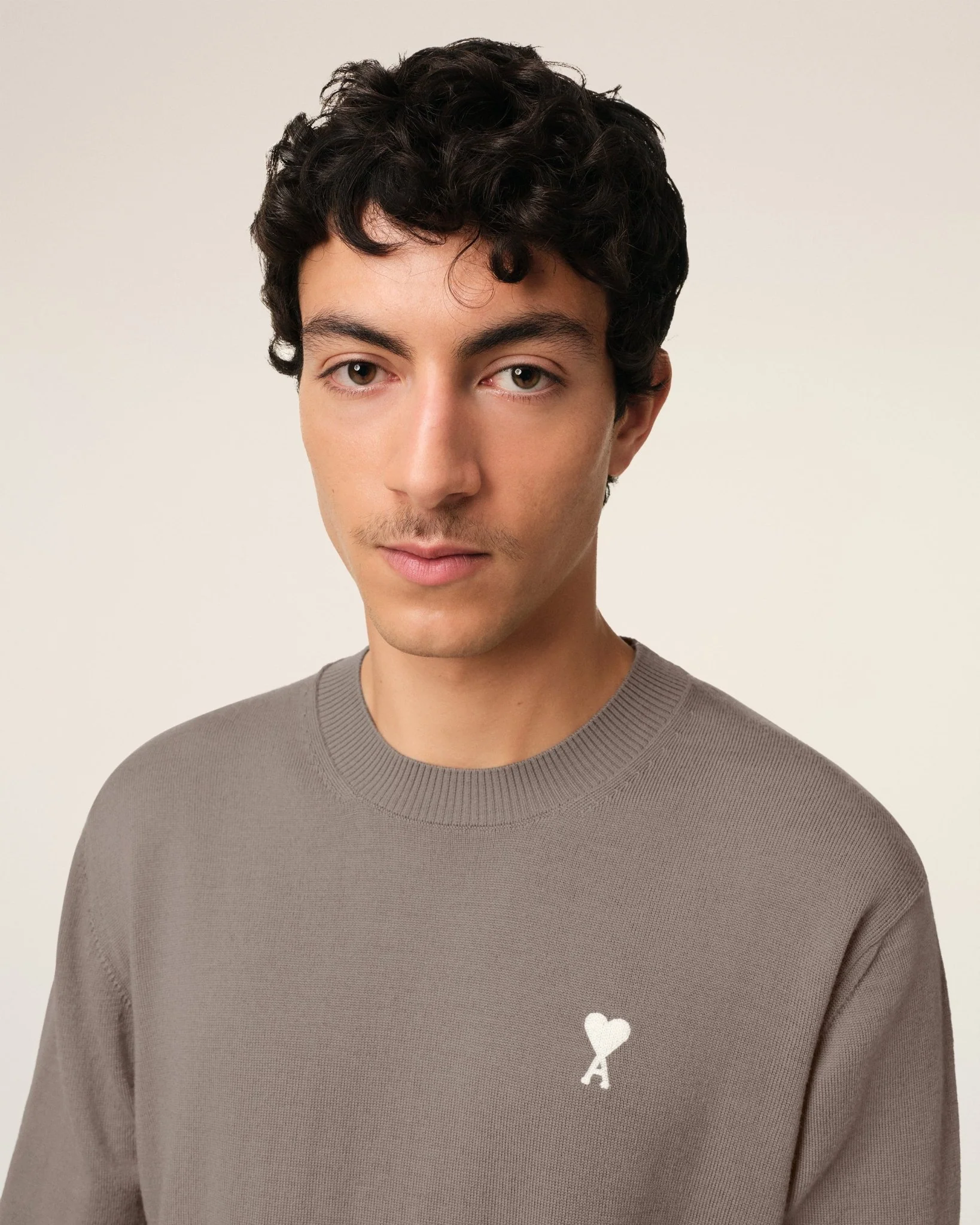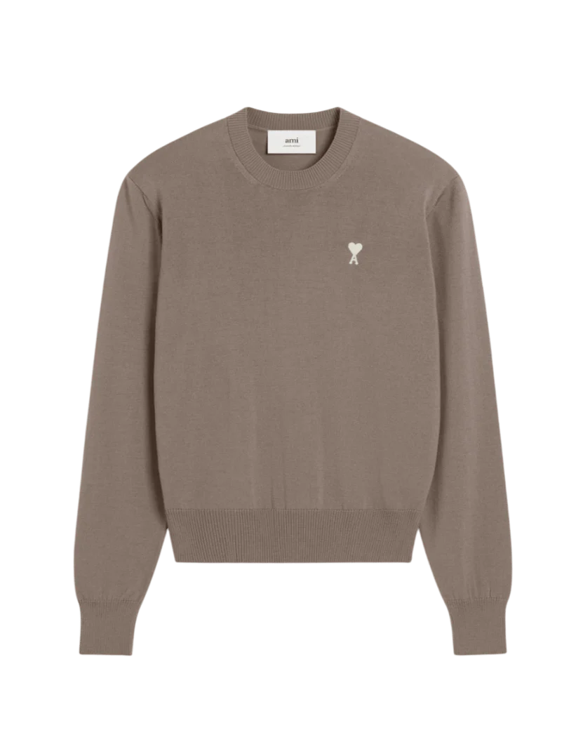 AMI PARIS – PULL COL ROND AMI DE COEUR EN LAINE Beige