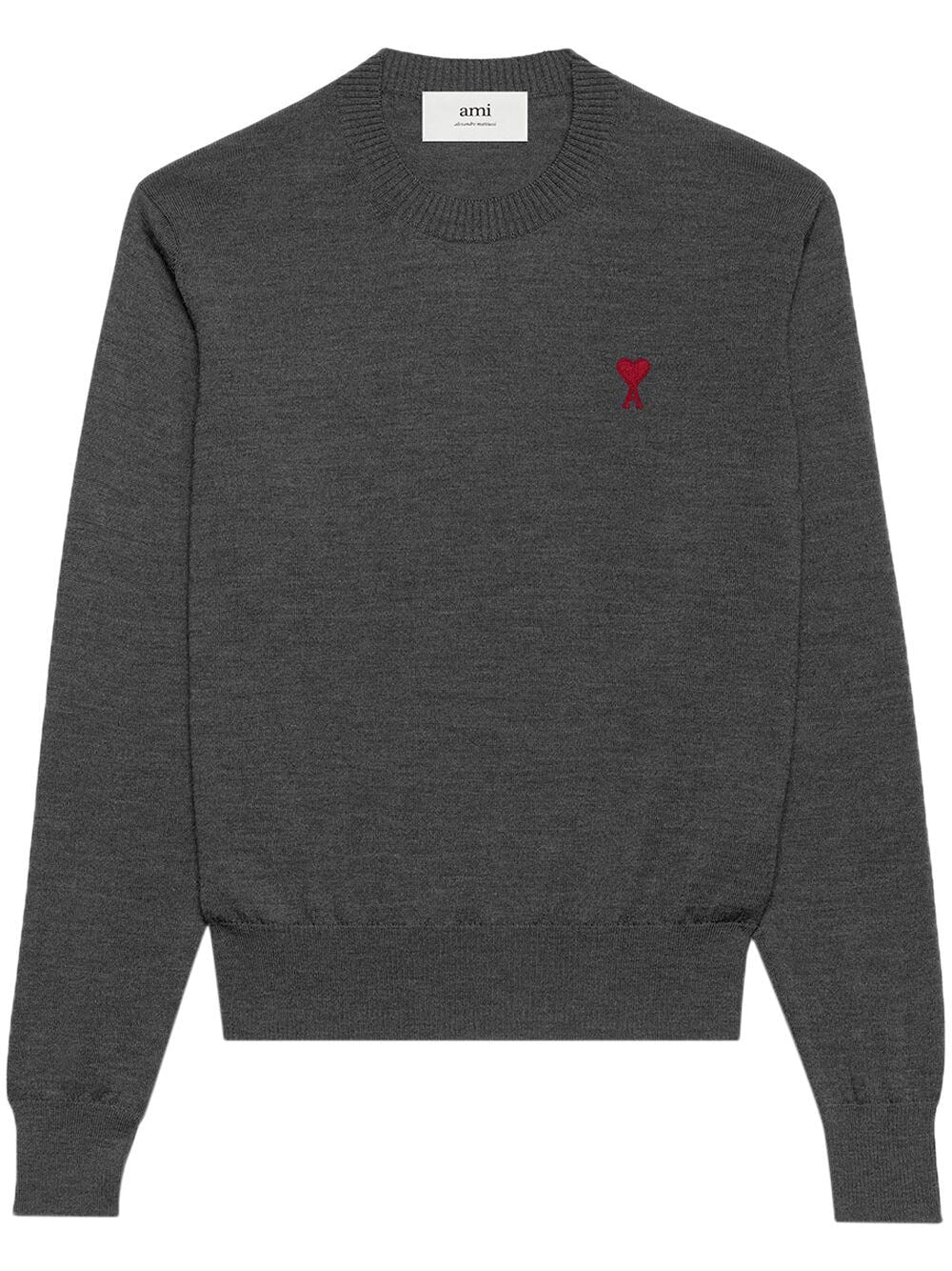 Ami Paris Pull en laine à logo brodé gris chiné