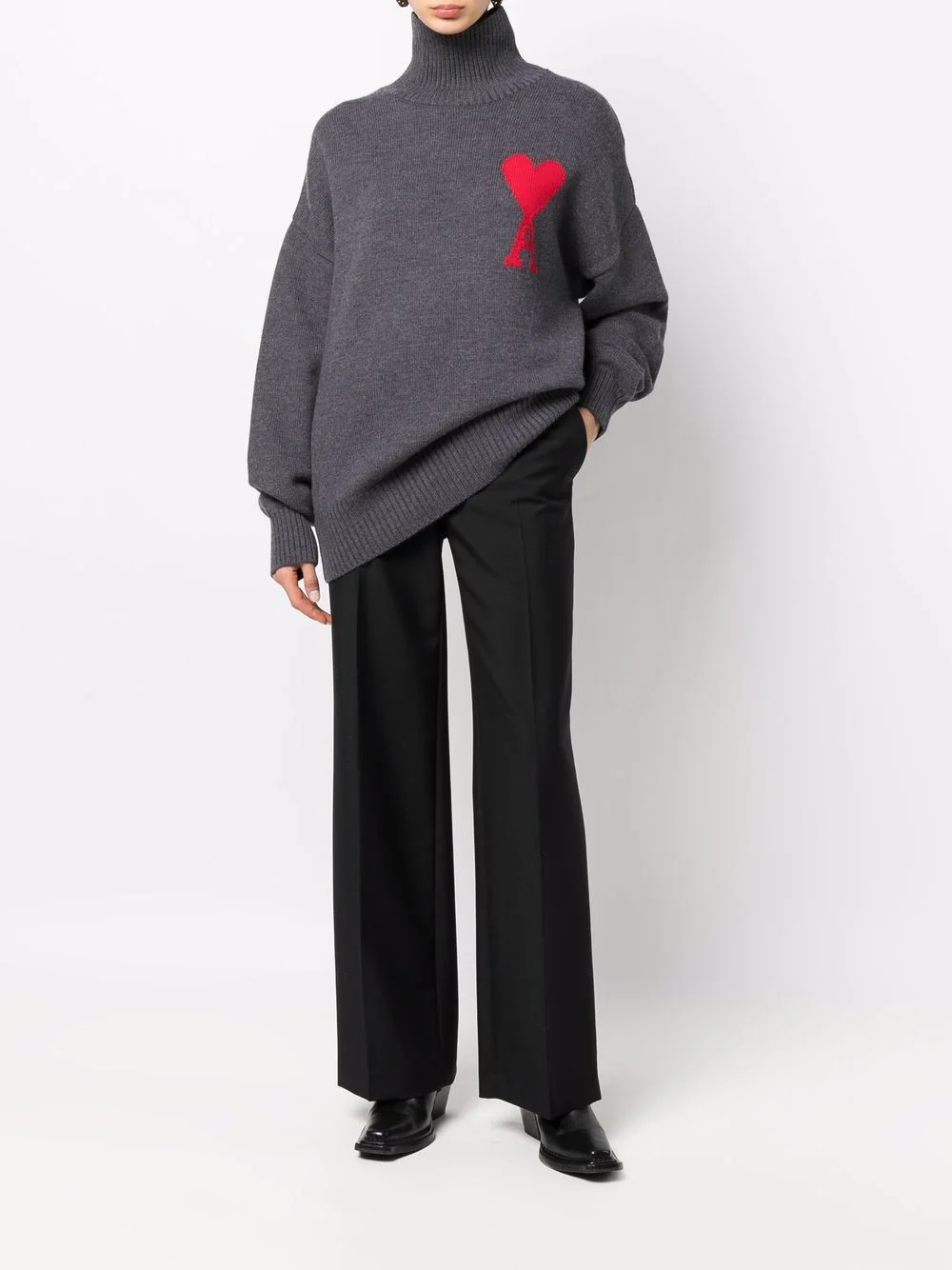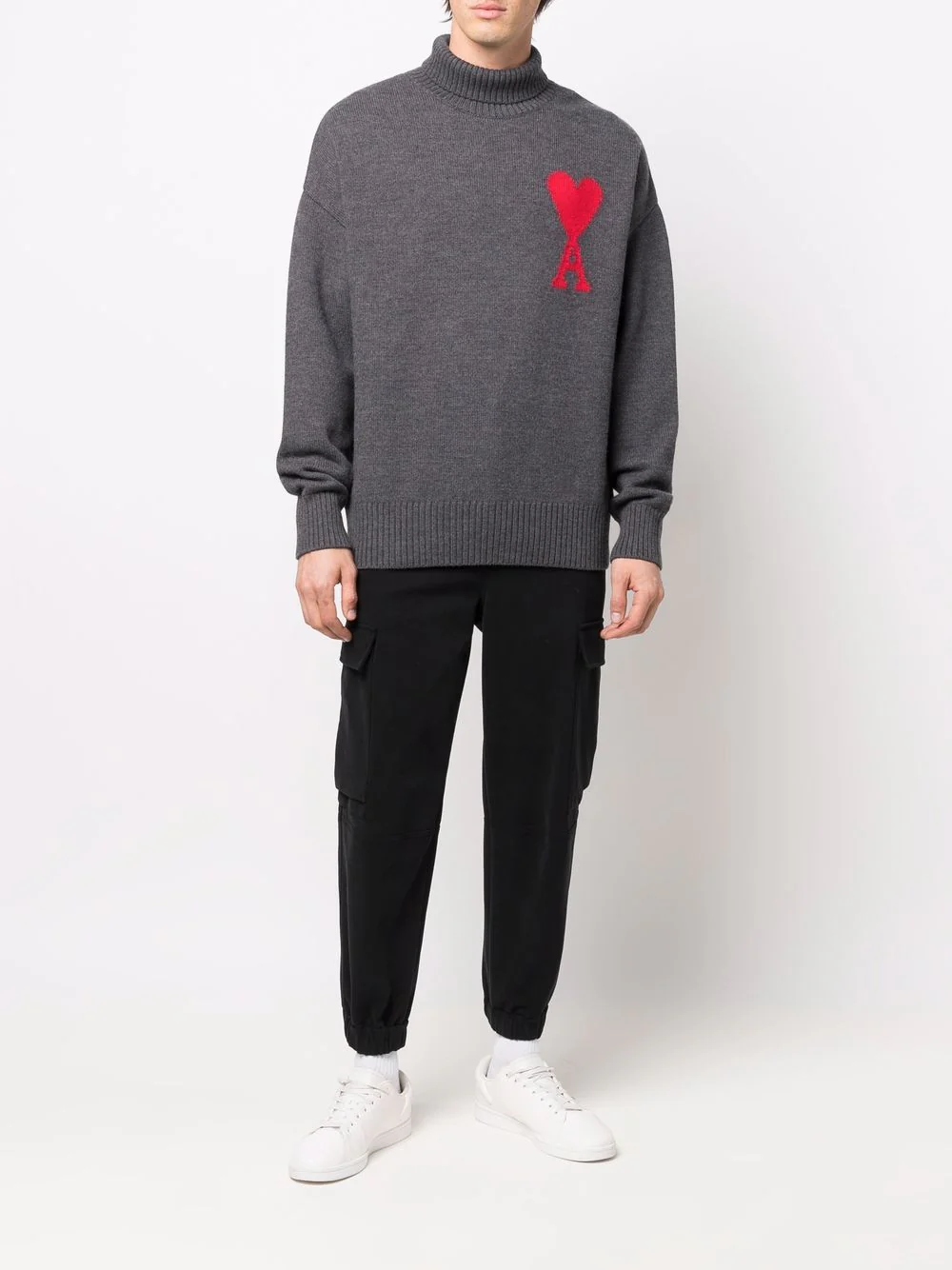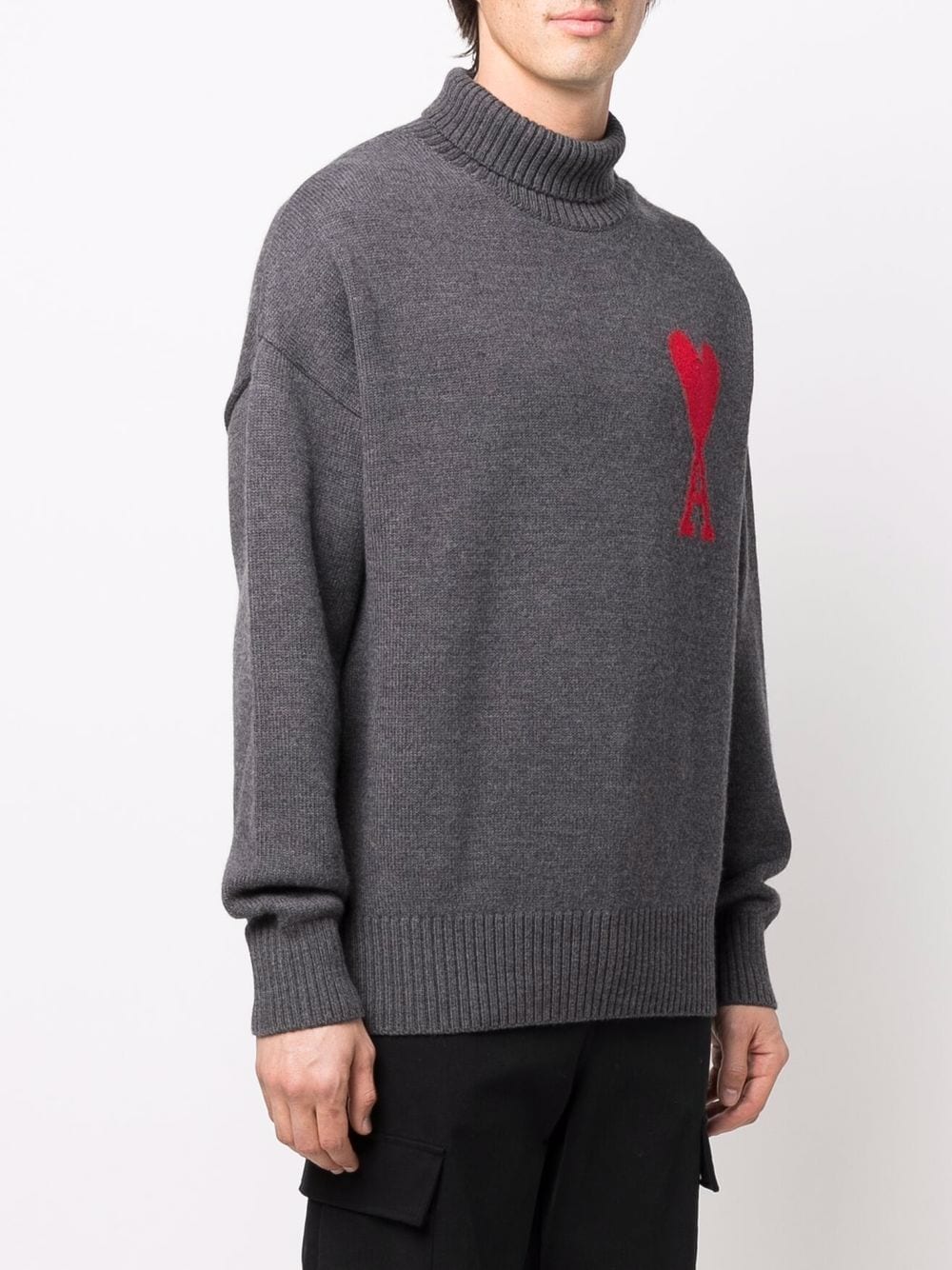 AMI Paris – Pull gris Ami de Coeur à col roulé