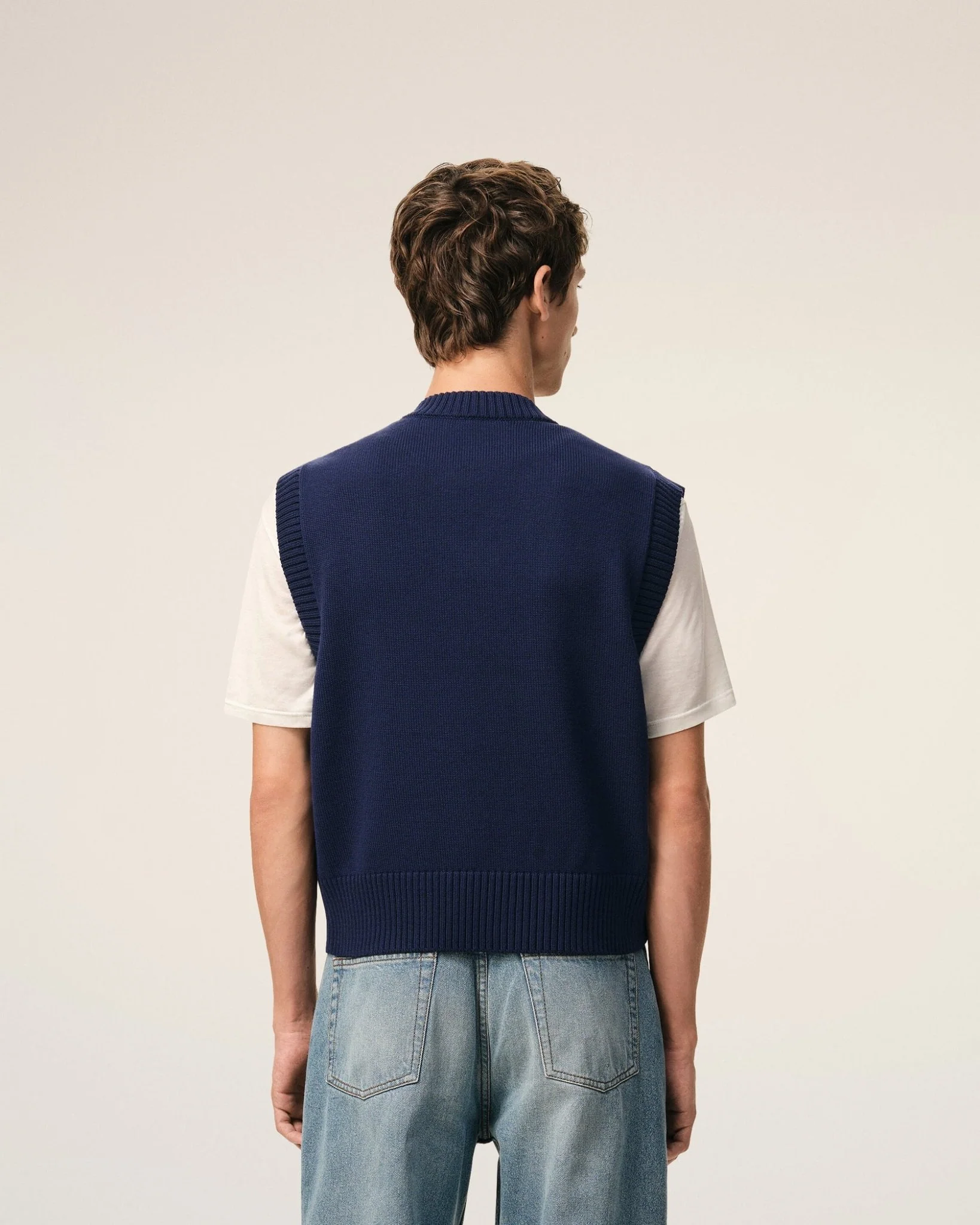 Découvrez ce pull sans manches AMI PARIS, une pièce incontournable alliant élégance minimaliste et confort raffiné. Confectionné en maille jersey de laine et coton de qualité supérieure, ce modèle unisexe arbore le signature « Ami de Coeur » en tricot intarsia sur la poitrine, symbole de l’identité créative de la maison parisienne. La composition soigneusement équilibrée entre laine et coton garantit une thermorégulation optimale et une douceur incomparable contre la peau. Fabriqué en Italie selon des standards éthiques, ce pull provient d’une laine issue de production responsable, reflétant l’engagement de la marque envers la durabilité. Sa coupe épurée et intemporelle en fait une pièce polyvalente, parfaite pour les transitions saisonnières ou en superposition. Un investissement vestimentaire qui transcende les tendances, idéal pour ceux qui apprécient la qualité artisanale et le design contemporain.