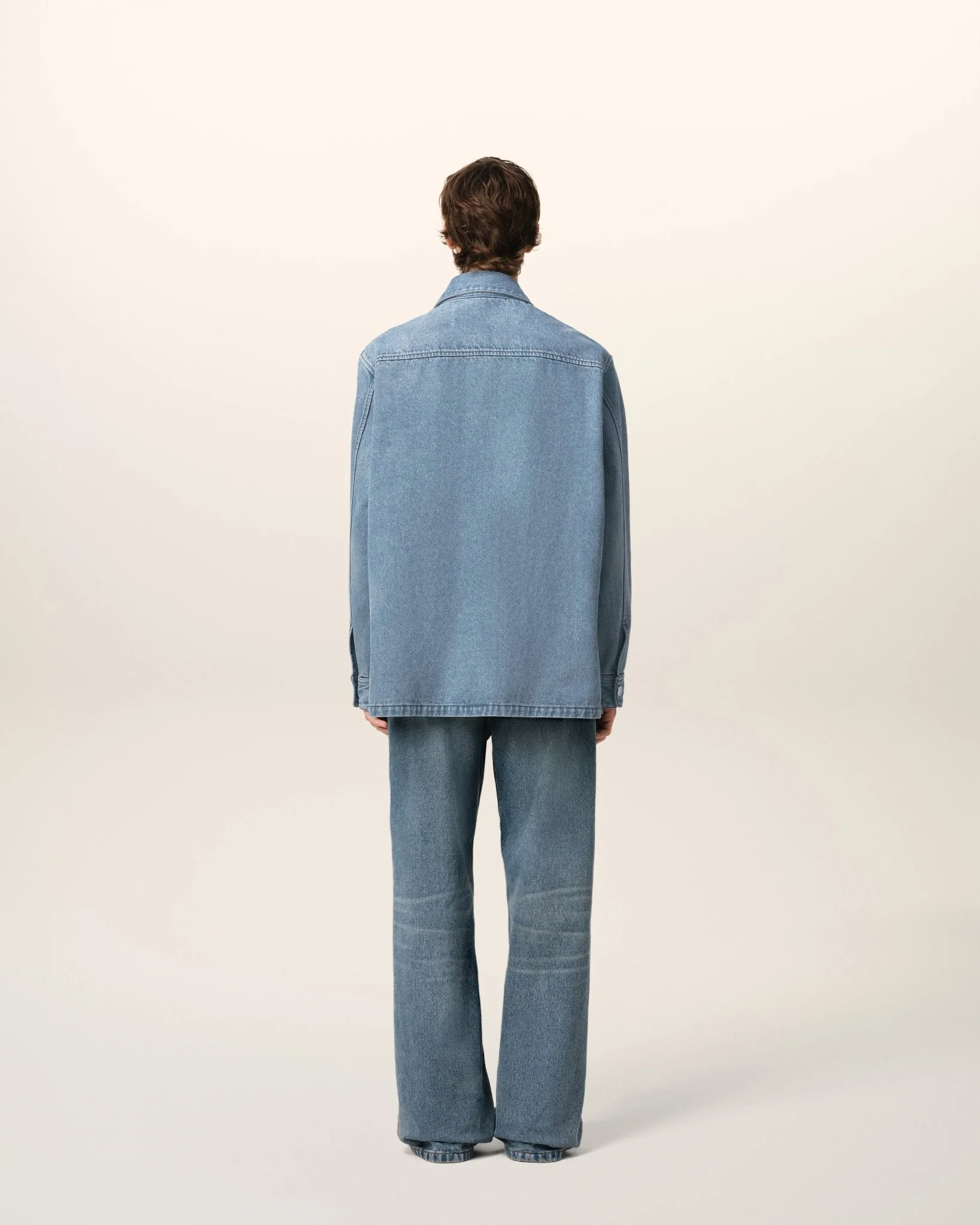 Surchemise en denim indigo délavé.