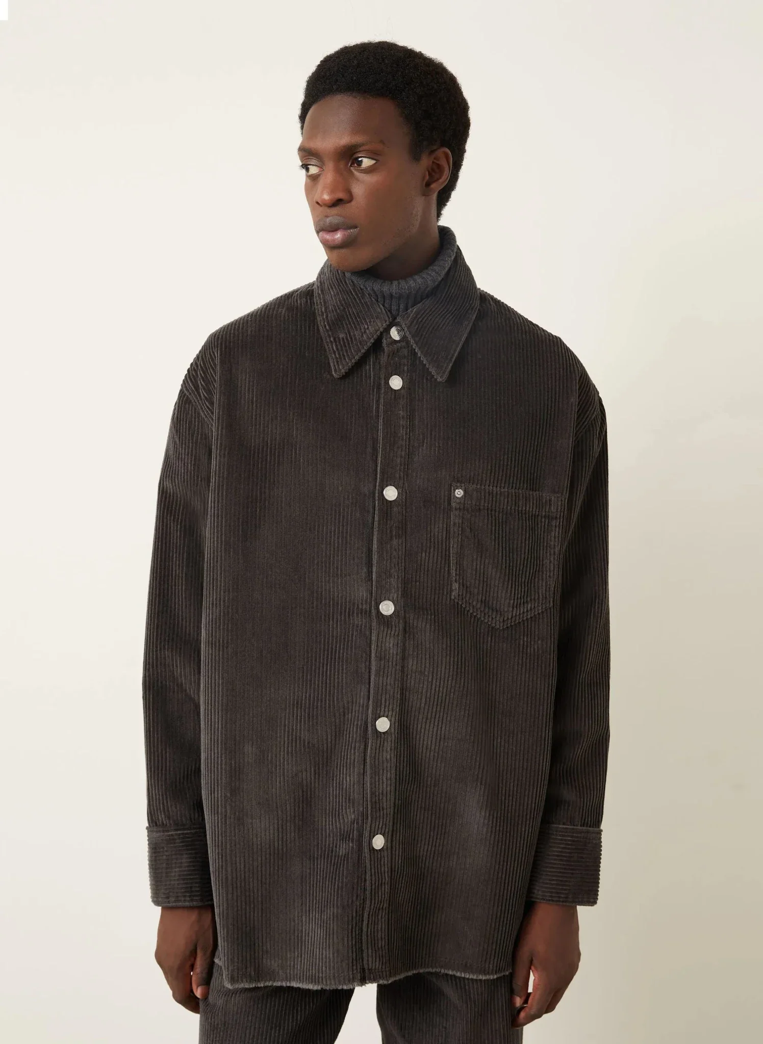 AMI PARIS – Surchemise Grise Velours Côtelé En Coton