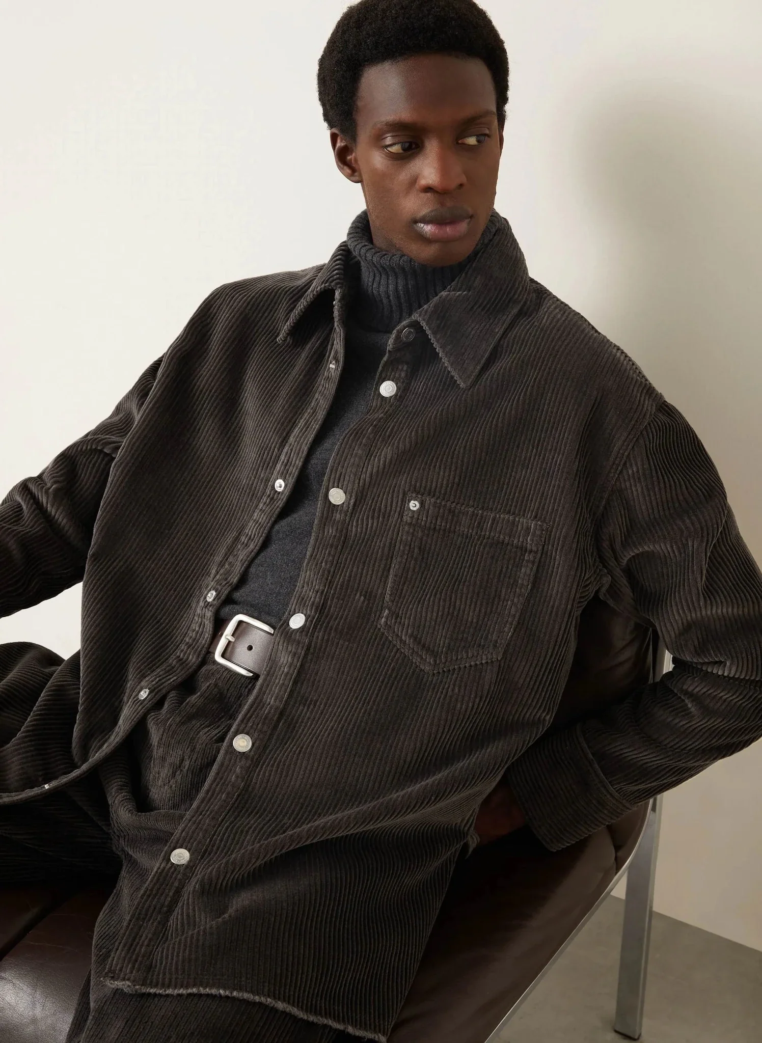 Une allure structurée : Le velours côtelé de coton épais donne de la tenue à la pièce, tandis que les fentes latérales accentuent sa fluidité et permettent une plus grande liberté de mouvement.