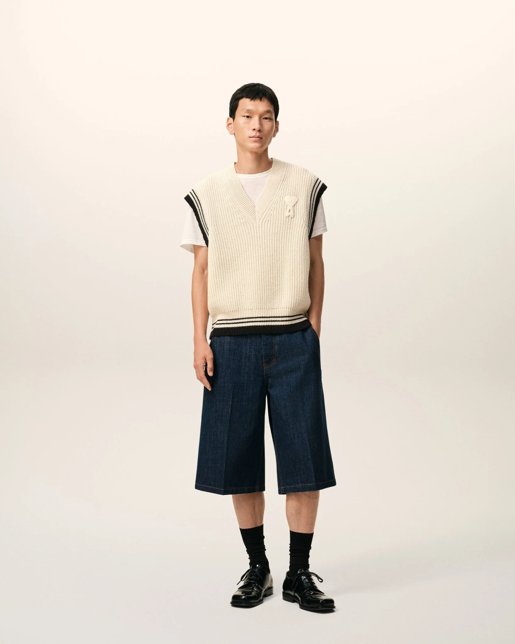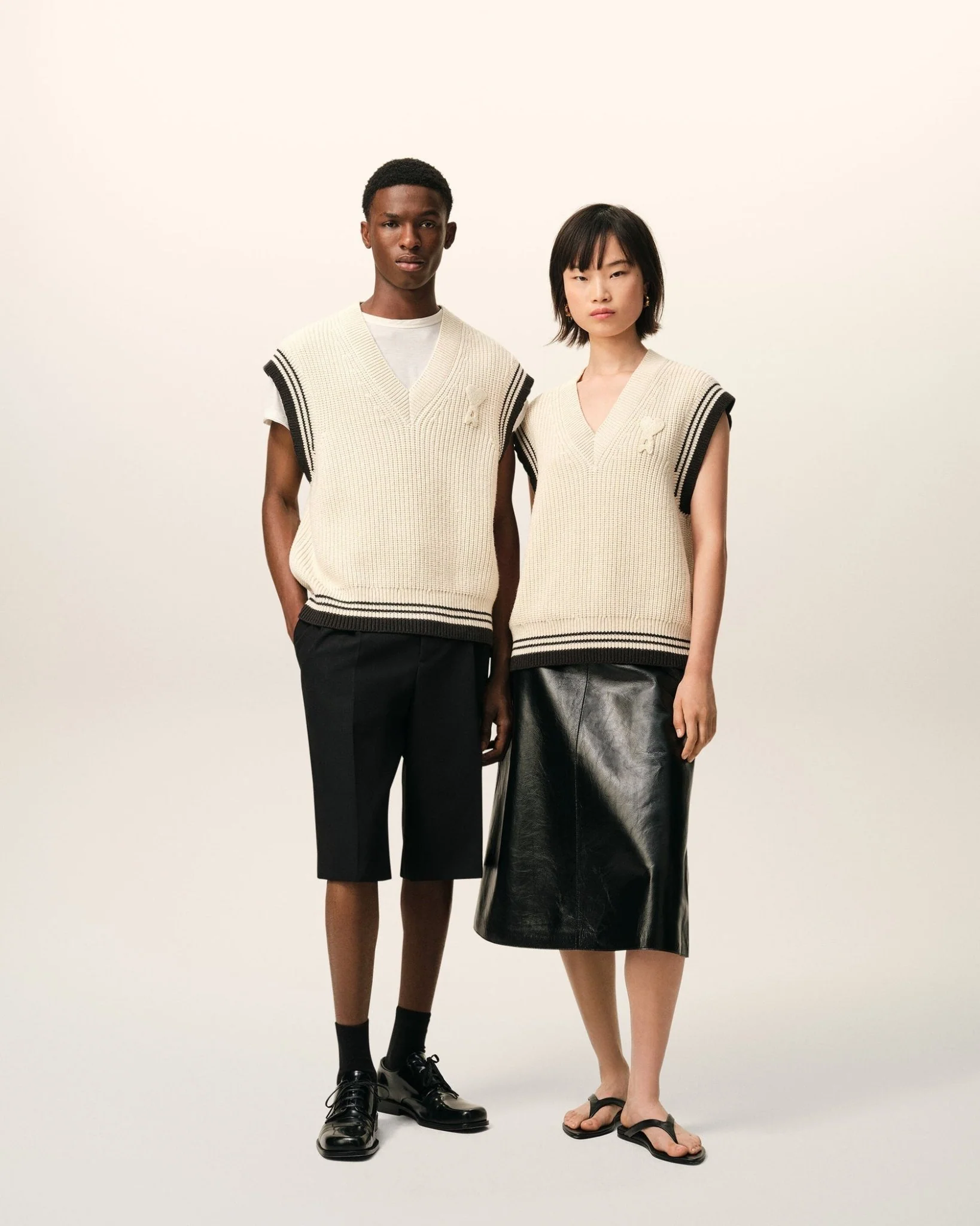 Ce pull AMI PARIS incarne l’élégance intemporelle de la maison parisienne avec une construction minutieuse. Confectionné en maille côtelée associant coton et laine, il offre une douceur naturelle et une thermorégulation optimale. Son design unisexe au col V affine la silhouette, tandis que l’absence de manches le rend polyvalent pour les superpositions. Les demi-côtes anglaises structurent le tricot pour une tenue impeccable. Les écussons crochetés signature – Ami de Coeur sur la poitrine et Ami Paris au dos – authentifient ce basique de garde-robe. Fabriqué au Portugal selon les standards de qualité de la marque, ce pull allie savoir-faire artisanal et esthétique contemporaine, garantissant une pièce durable et incontournable.
