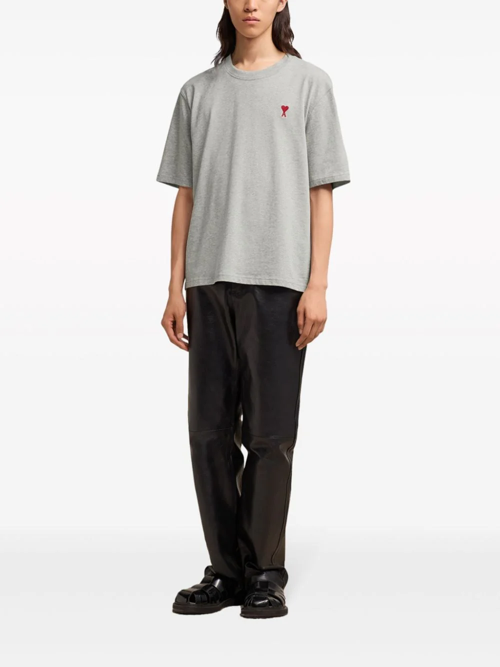 Ami Paris T-shirt à logo Ami de Coeur brodé gris chiné
