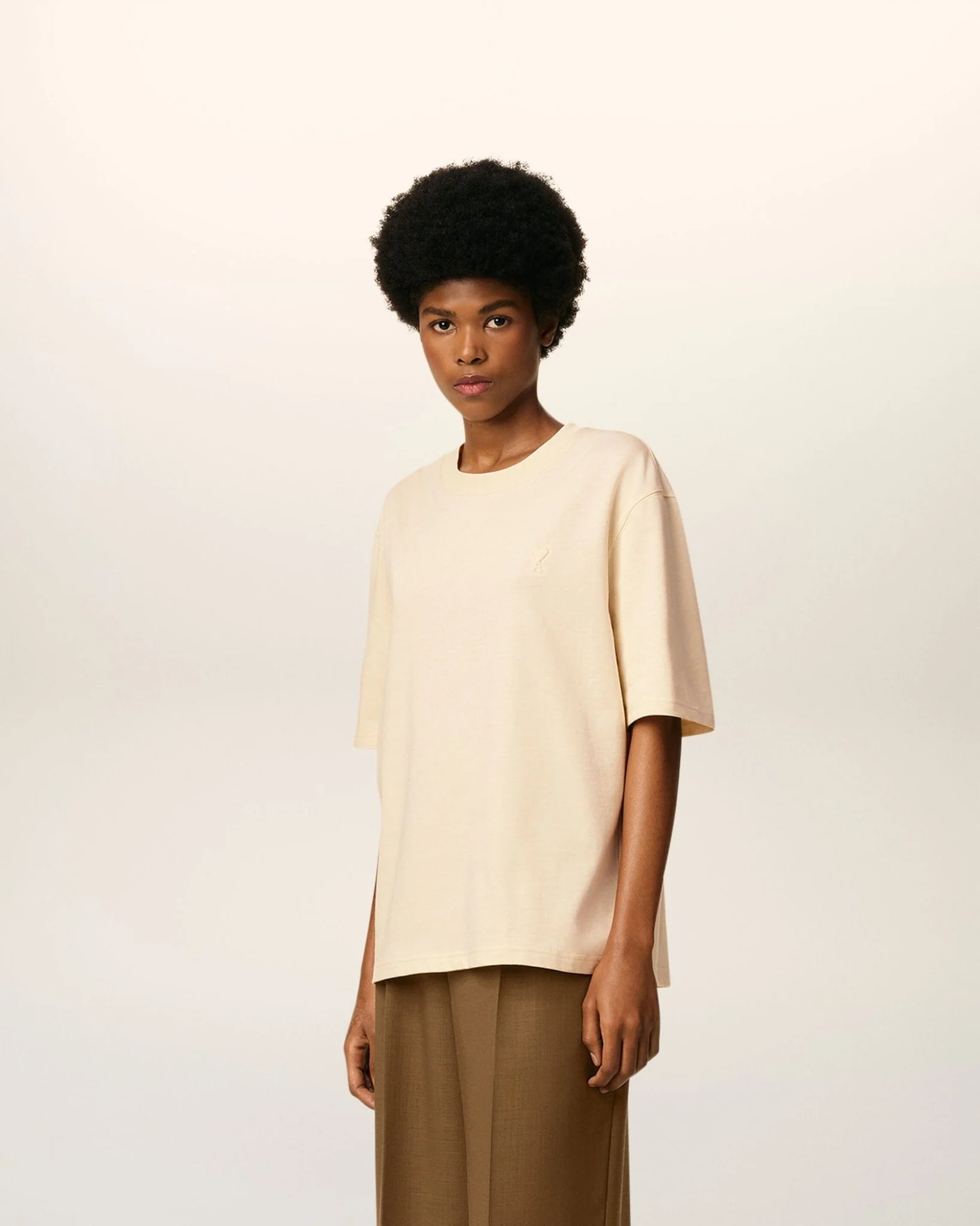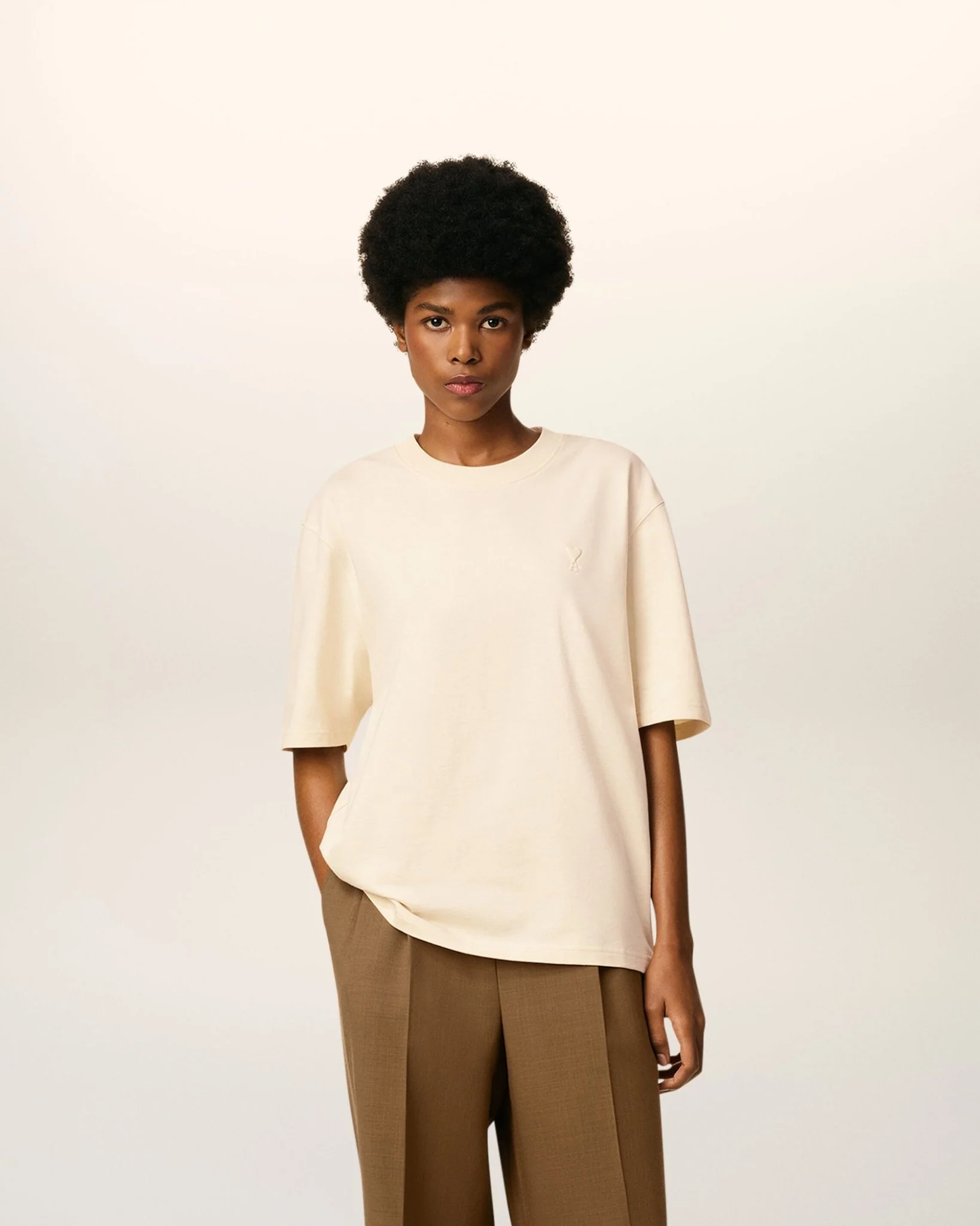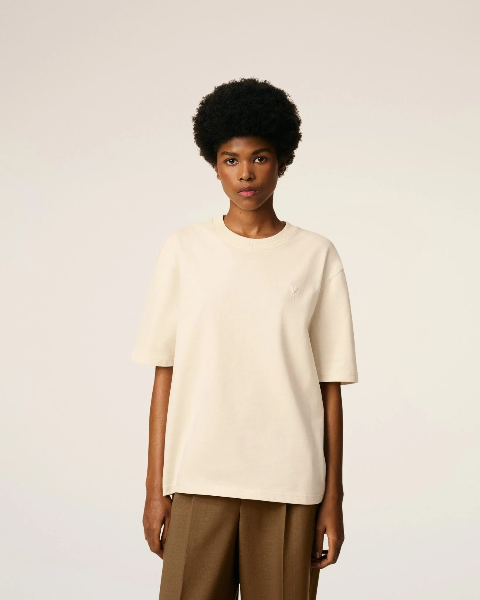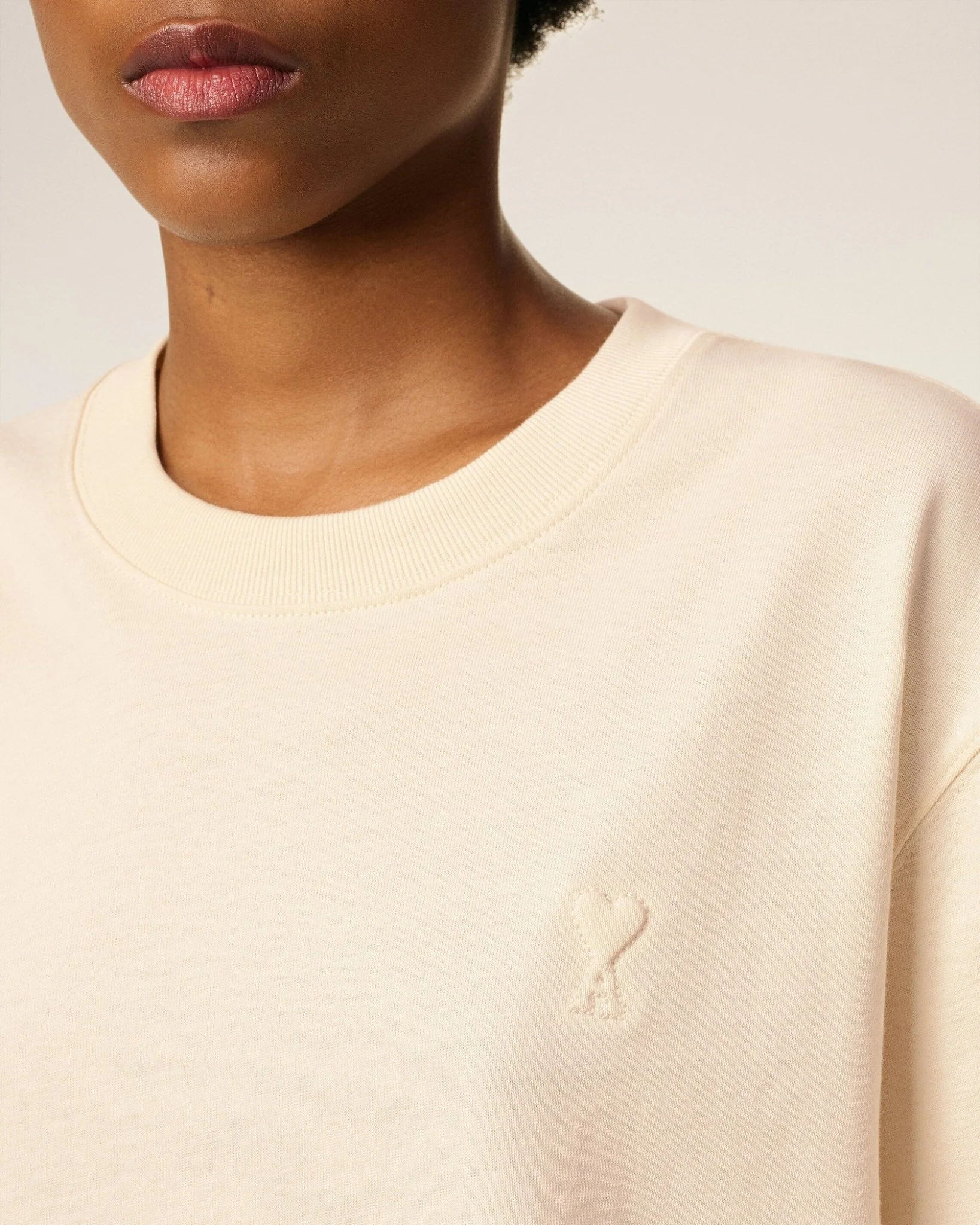 AMI PARIS – T-shirt En Coton Ami De Coeur Blanc crème