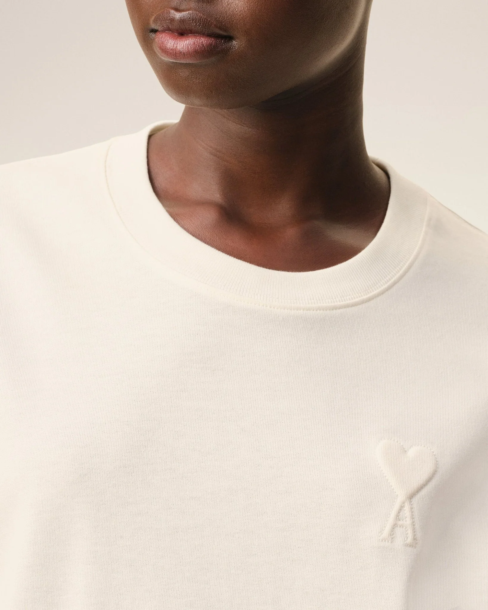 AMI PARIS – T-shirt en Coton avec Motif Ami de Cœur en Relief Blanc crème