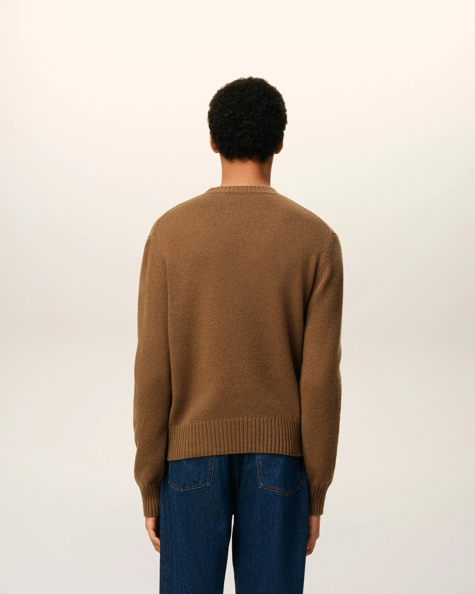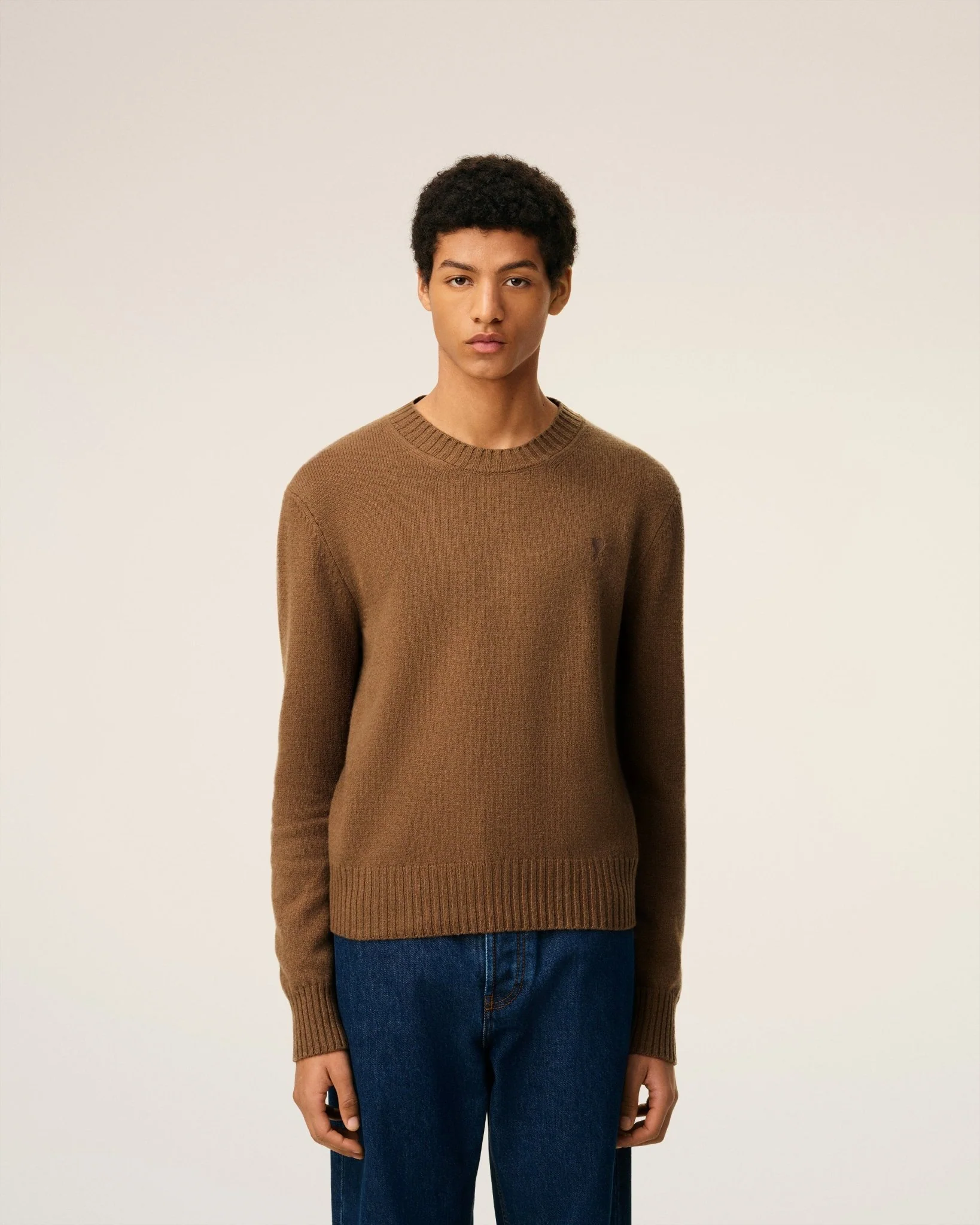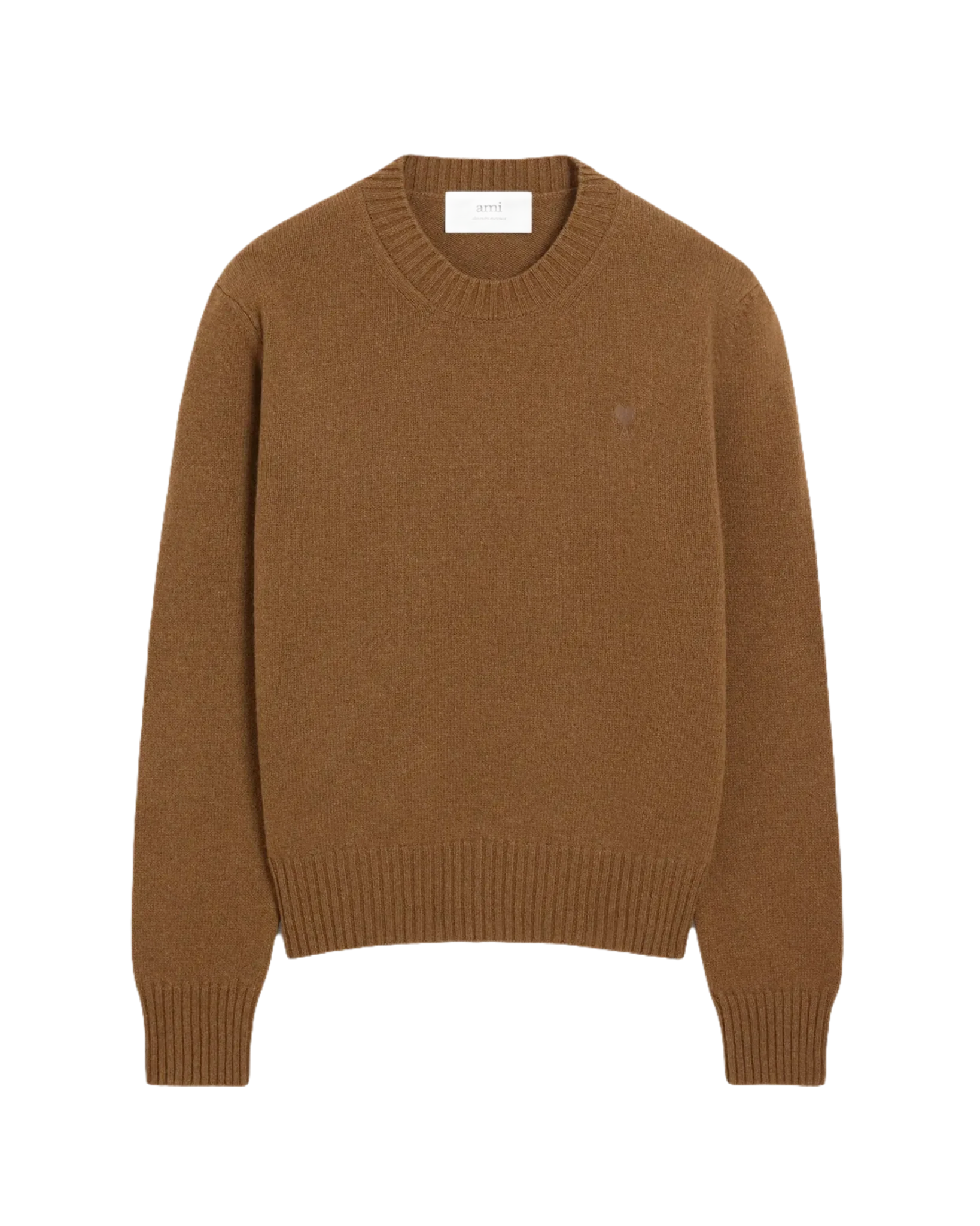 AMI – Pull marron col rond ami de cœur en cachemire