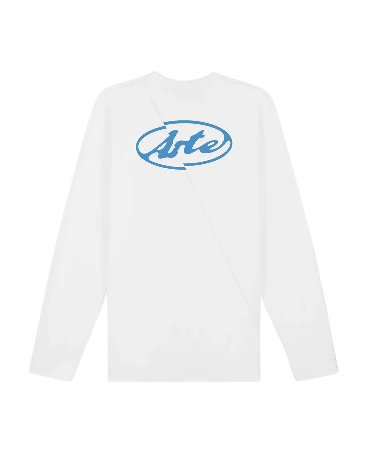 Ce t-shirt à manches longues ARTE présente un logo circulaire brodé en bleu sur la poitrine, élément signature de la collection Printemps/Été 2026. La composition graphique est volontairement fragmentée par une couture diagonale qui traverse le vêtement, établissant un dialogue visuel avec la philosophie créative de la saison. Réalisé en coton épais de qualité supérieure, ce modèle blanc offre une structure épurée rehaussée par des détails intentionnellement déconstruits. Le col légèrement surélevé et la coupe décontractée garantissent un port confortable et intemporel, tandis que les finitions asymétriques reflètent l’approche novatrice de la marque. Cette pièce s’inscrit dans une démarche de réinvention créative : la collection célèbre une décennie d’évolution d’Arte en déconstruisant ses propres archives. Les coutures diagonales, les textures inattendues et les éléments graphiques fragmentés créent une tension dynamique entre ordre et désordre, transformant chaque détail en expression d’un langage visuel mature et réfléchi. Destiné aux amateurs de design contemporain exigeant, ce t-shirt incarne une exploration profonde du patrimoine créatif d’Arte, où chaque élément morcelé contribue à une harmonie visuelle singulière et cohérente.
