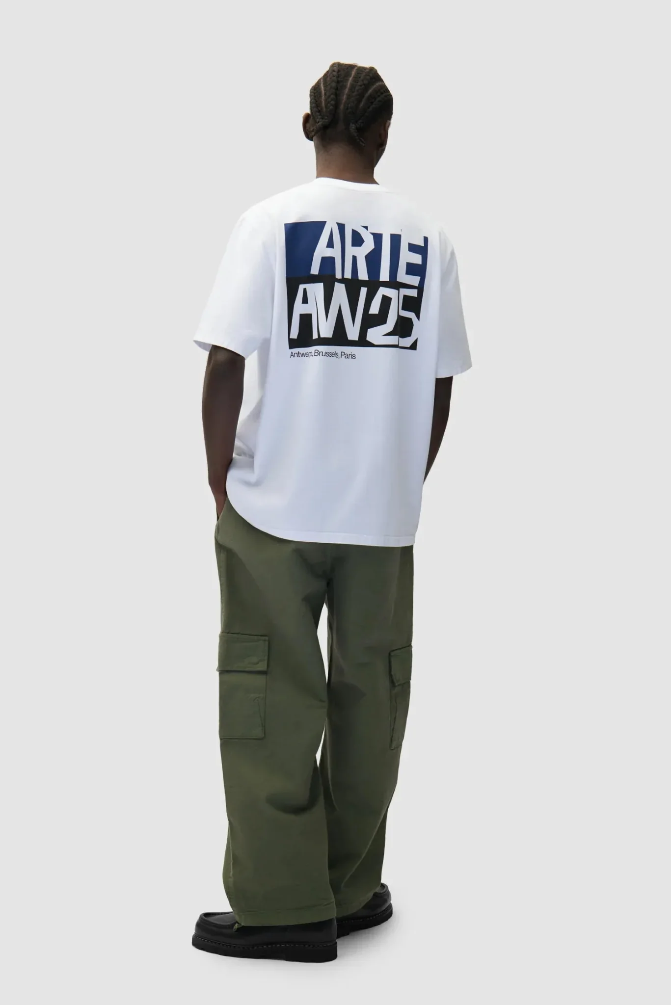 Le tee-shirt comporte une œuvre d’art sérigraphiée en bleu marine et noir au dos qui reprend le thème de la collection. Fabriqué en coton épais de première qualité, ce T-shirt blanc est doux au toucher, avec une encolure légèrement plus haute et une coupe décontractée. Fabriqué au Portugal, il est composé à 100 % de […]