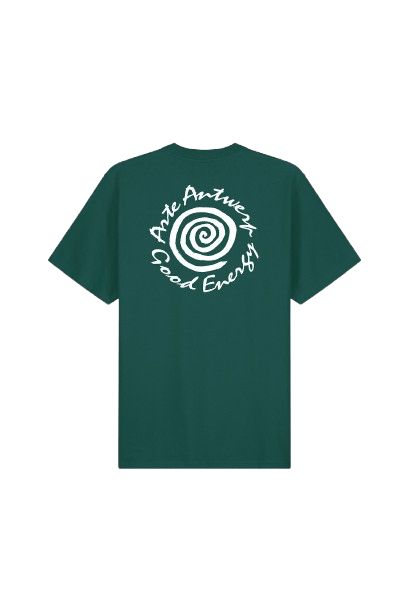 Le T-shirt comporte une œuvre d’art sérigraphiée en blanc dans le dos qui reprend le thème de la collection. Fabriqué en coton épais de première qualité, ce T-shirt vert foncé est doux au toucher, avec une encolure légèrement plus haute et une coupe décontractée. Le logo Arte est brodé en blanc sur le côté gauche de la poitrine.