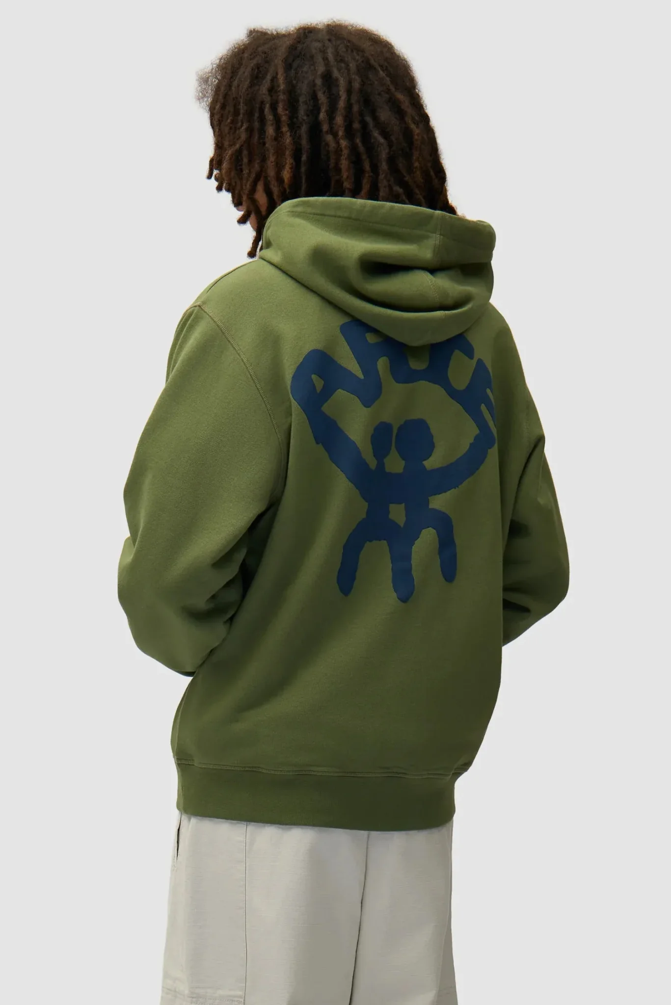 Fabriqué en coton épais de première qualité, ce sweat à capuche présente un graphique saisonnier sérigraphié en bleu marine dans le dos. Le sweat à capuche vert olive a une coupe décontractée et est doté d’une poche kangourou et de cordons de serrage.