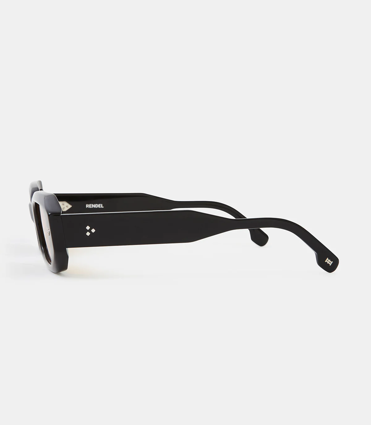 Monture en acétate Mazzucchelli de forme hexagonale. Rivets carrés apparents sur les bords et sur les branches, ainsi que détails de pictogrammes gravés.