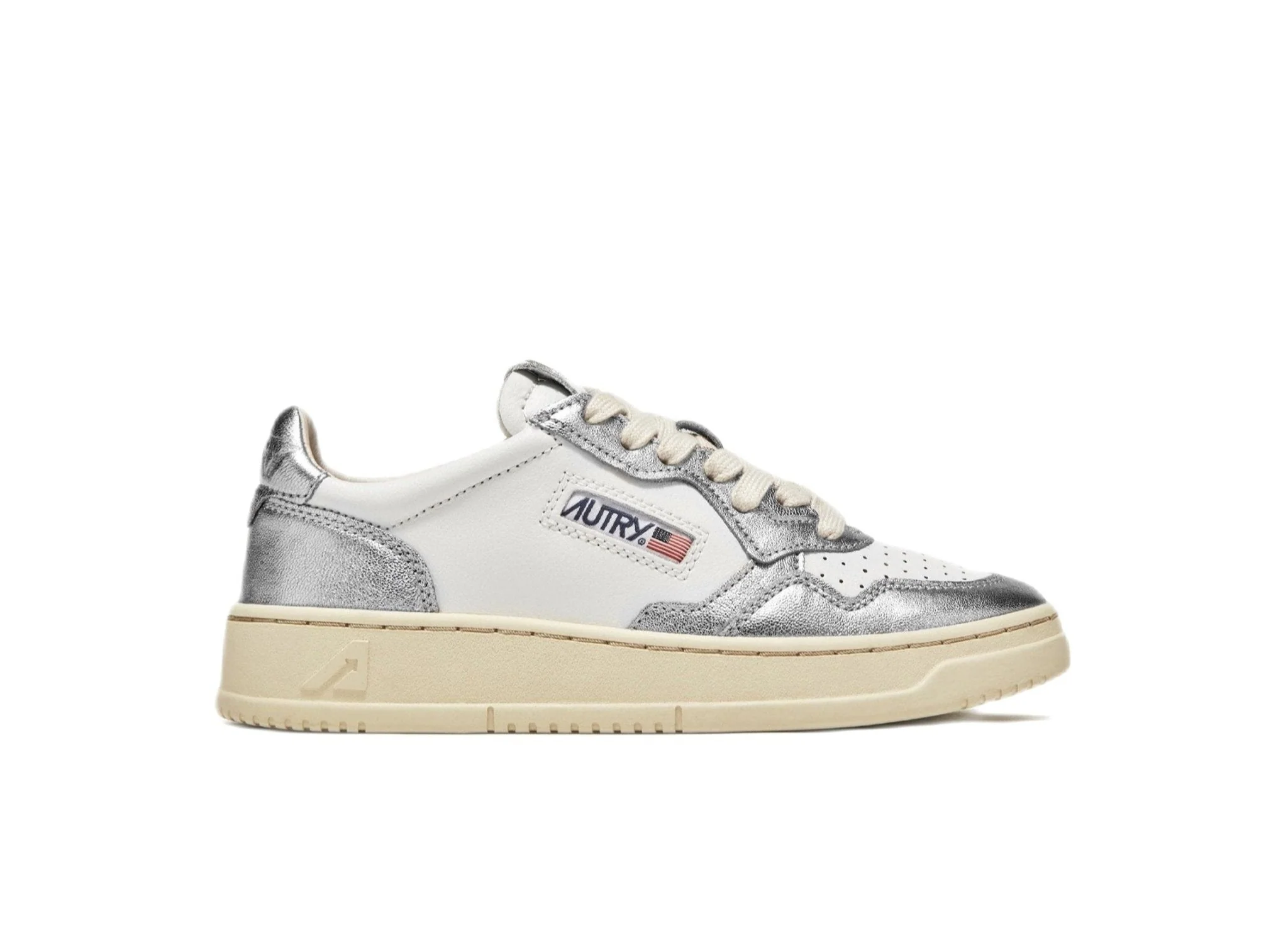 AUTRY – Basket basse cuir blanc et argent métallisé