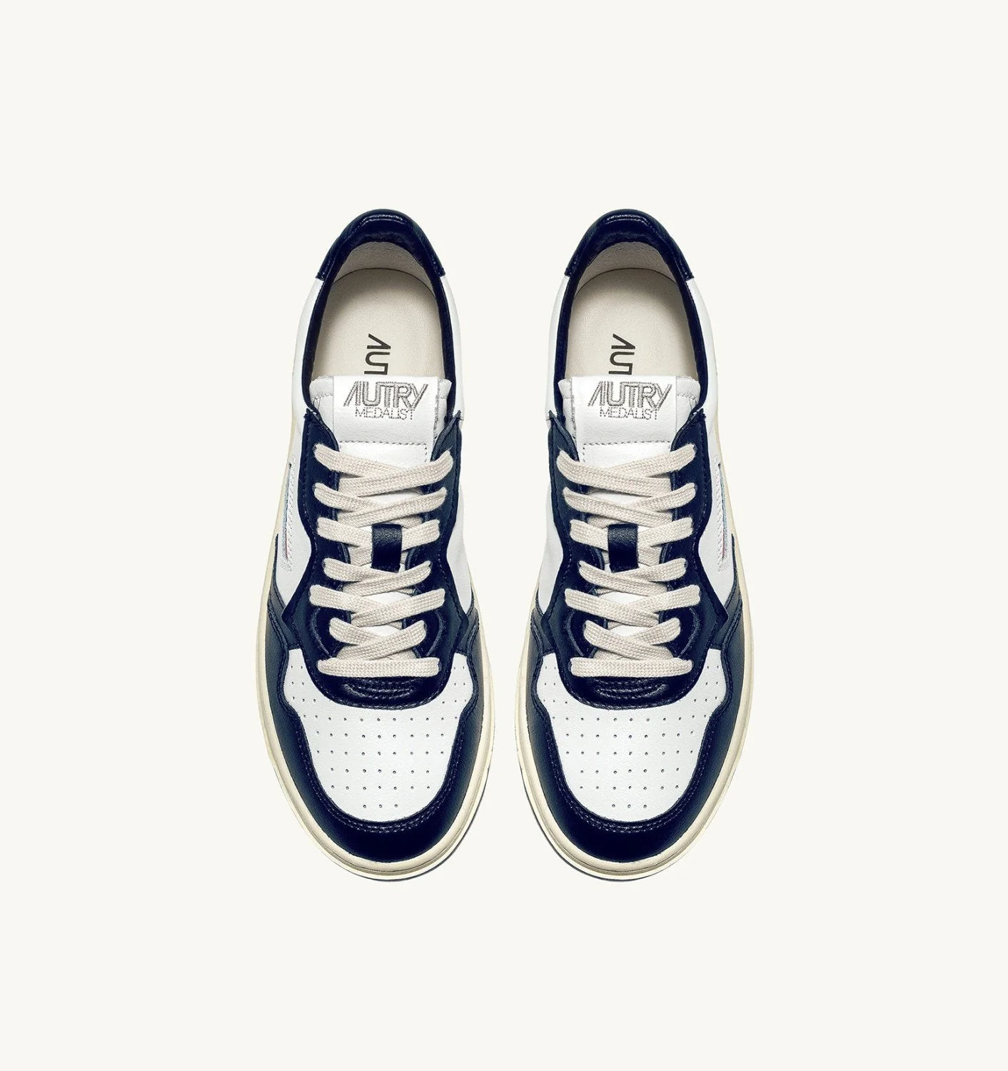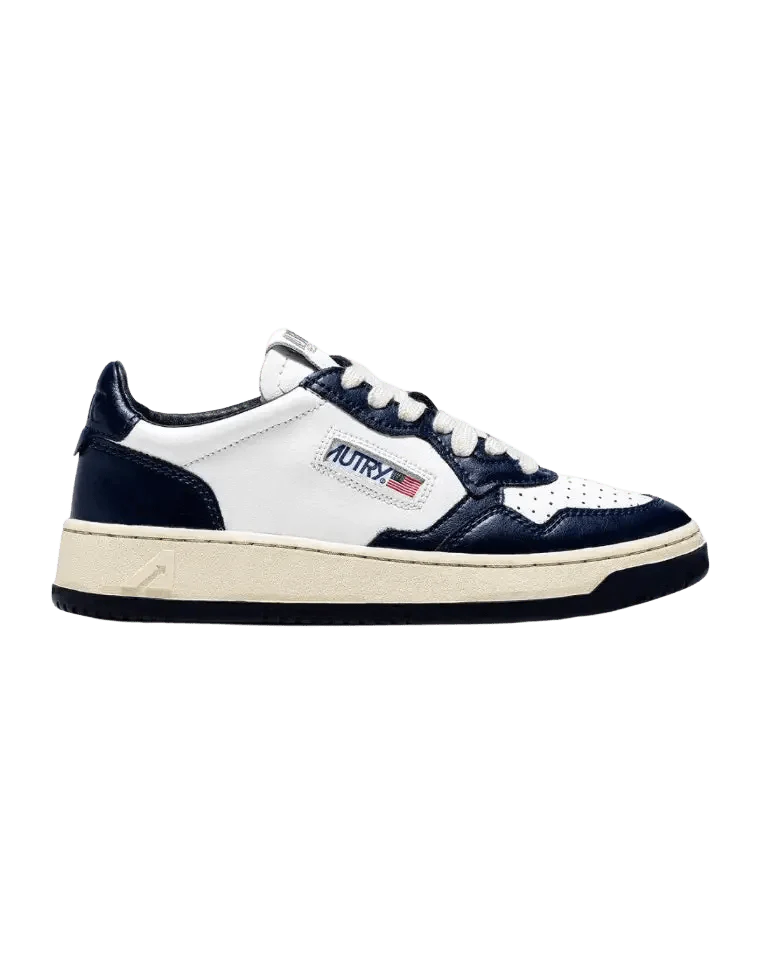 AUTRY – Baskets medalist low bicolor en cuir Blanc et Bleu