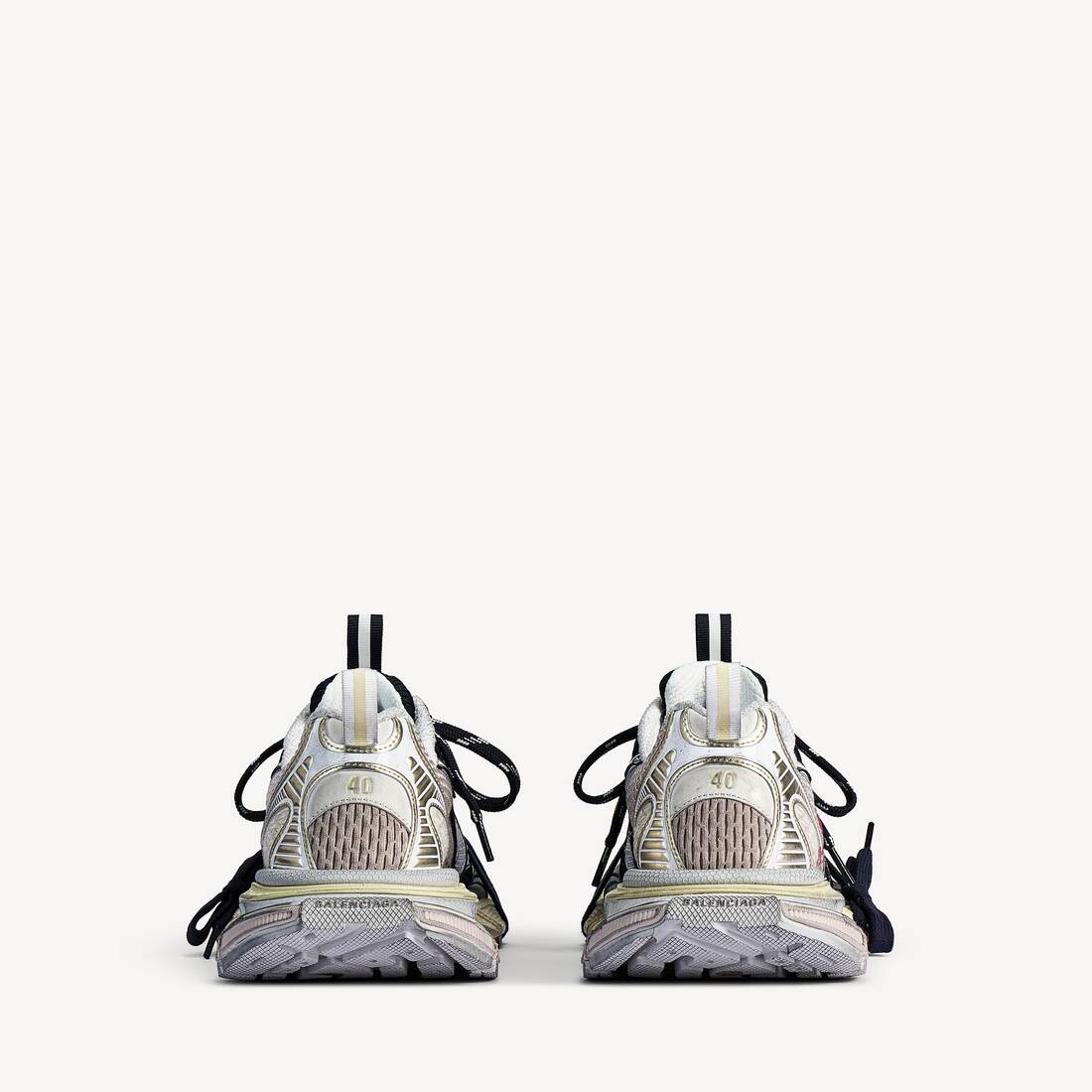 Entretien facile : nettoyez régulièrement avec un chiffon doux et sec. En cas de projection, essuyez immédiatement et laissez sécher à l’air libre, loin de la chaleur et du soleil direct. Évitez les produits chimiques et la machine à laver. Pour un nettoyage approfondi, confiez votre sneaker à un professionnel. Rangez-la dans sa pochette puis sa boîte d’origine avec du papier de soie blanc pour préserver sa forme et la protéger de la lumière et de l’humidité. Les légères irrégularités de fabrication Balenciaga sont normales. Non recommandée pour le sport intensif.