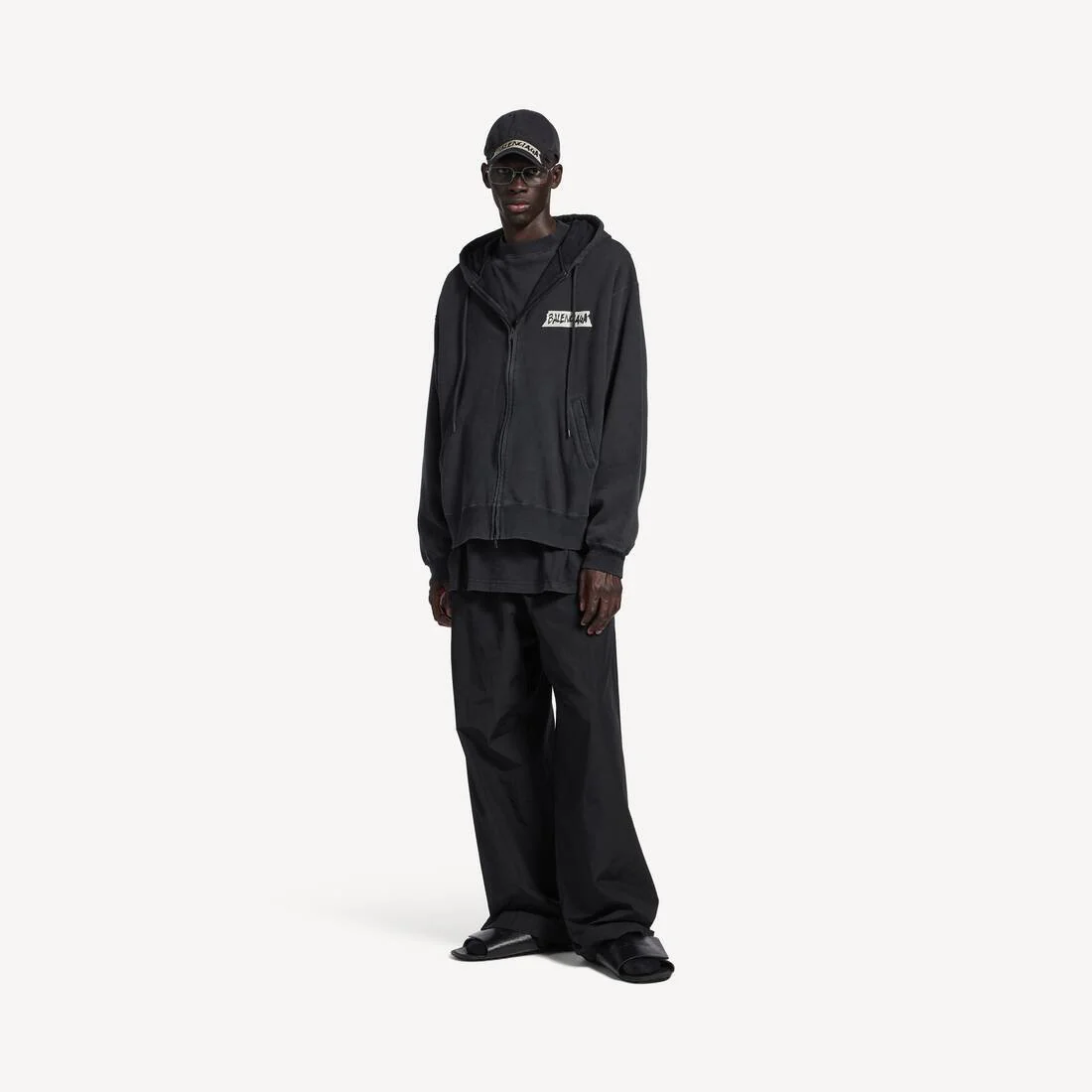 BALENCIAGA – Men’s Masking Tape Oversized Zip-up Hoodie Noir