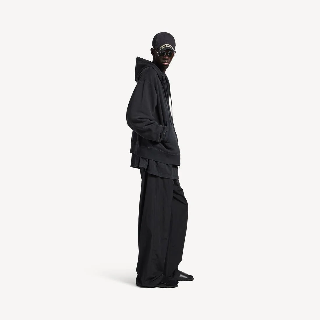 Découvrez le hoodie oversized Balenciaga, une pièce maîtresse de la collection homme qui redéfinit le streetwear contemporain. Confectionné en coton 100 % premium avec une finition Polaire Dry, ce sweat-shirt allie confort et esthétique avant-gardiste. Ses caractéristiques distinctives incluent une capuche ajustable avec cordon de serrage, des épaules généreusement tombantes pour une silhouette décontractée, et une fermeture éclair double curseur offrant une polyvalence de port. Les deux poches avant pratiques, associées aux poignets et à la taille élastiqués, garantissent un ajustement sécurisé. Le design signature de Balenciaga se manifeste par les motifs en ruban adhésif appliqués sur la poitrine et le dos, tandis que l’effet usé et sali confère une authenticité brute et recherchée. Fabriqué au Portugal selon les standards de qualité exigeants de la maison, ce hoodie noir incarne l’essence du luxe urbain moderne.