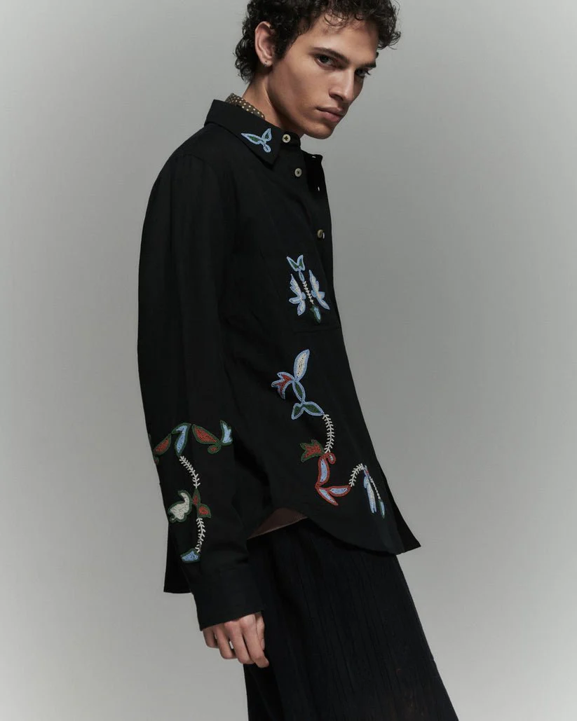 100 % coton, brodé à la main avec des perles ID marque : rouat shirt black