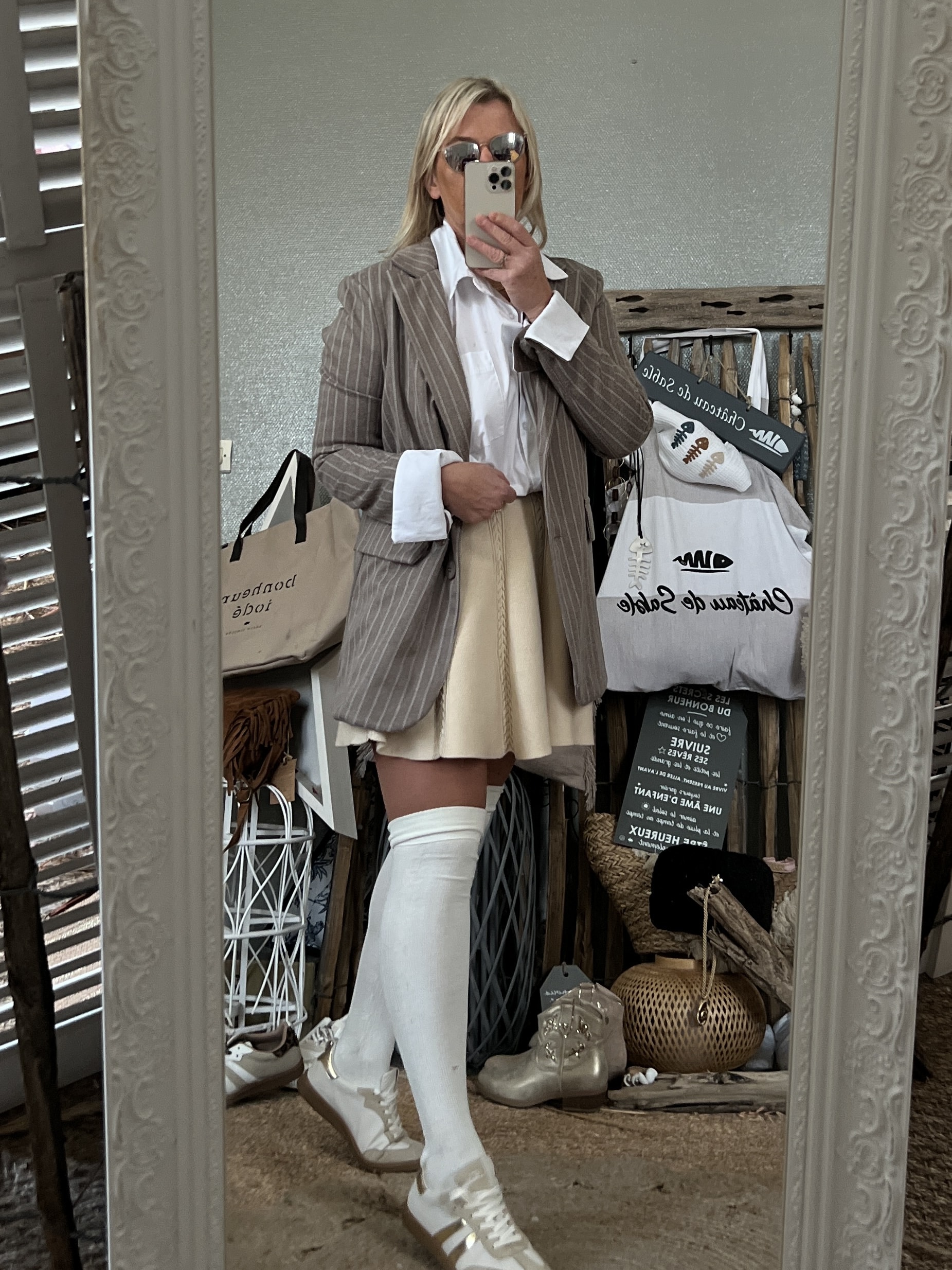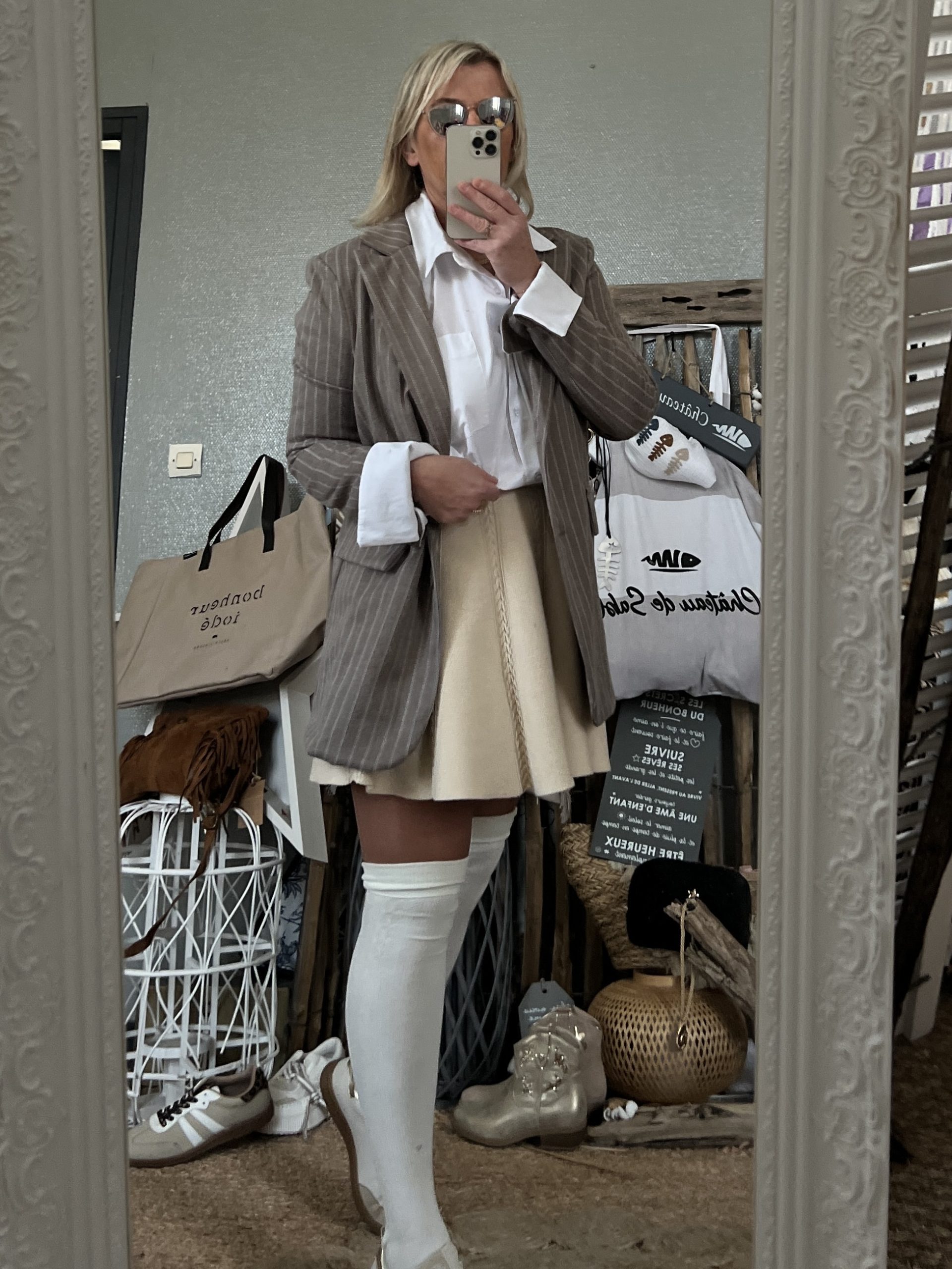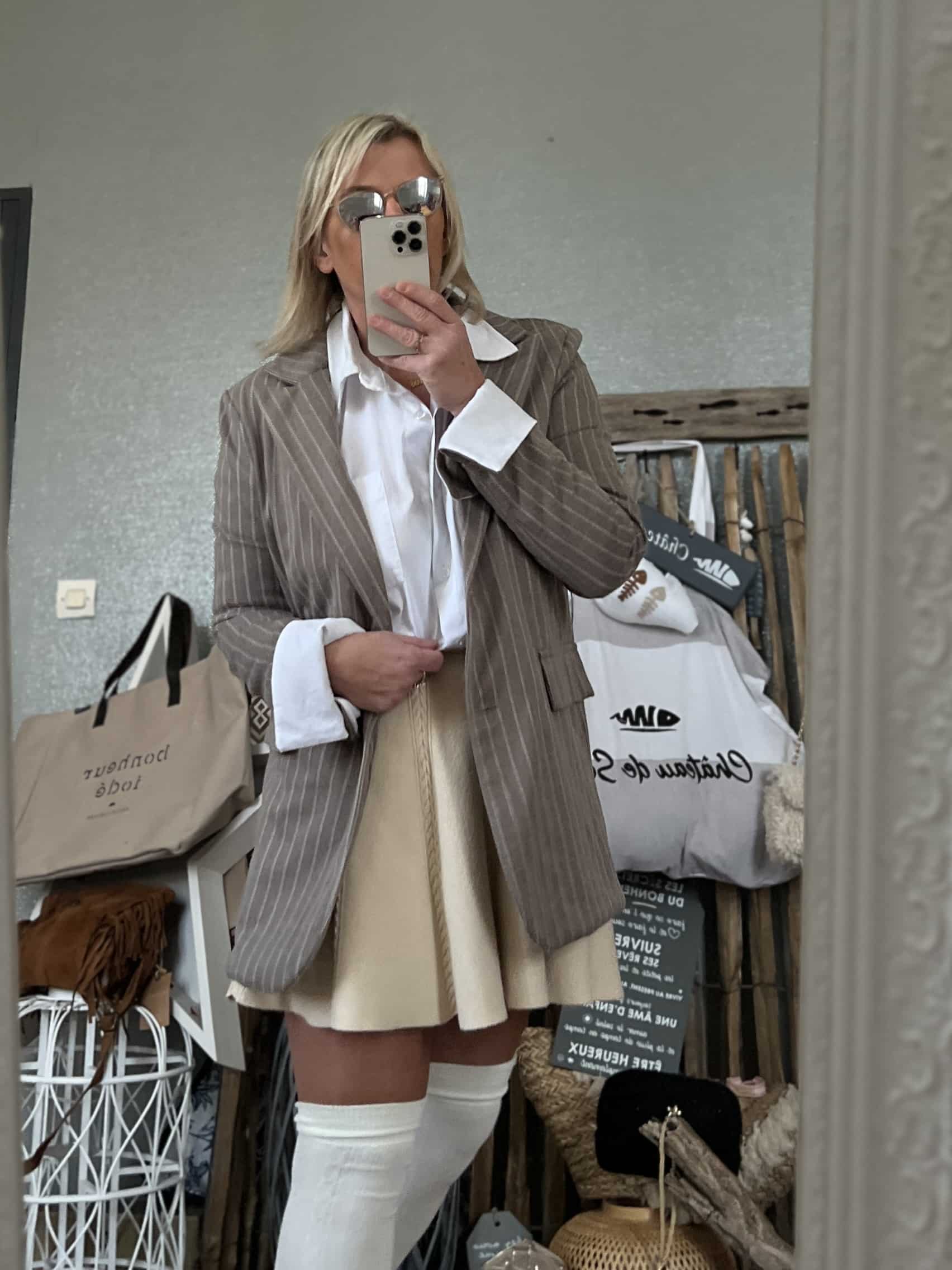 Gros coup de coeur pour ce blazer gris rayƩ avec son revers blanc! Taille unique 38/42