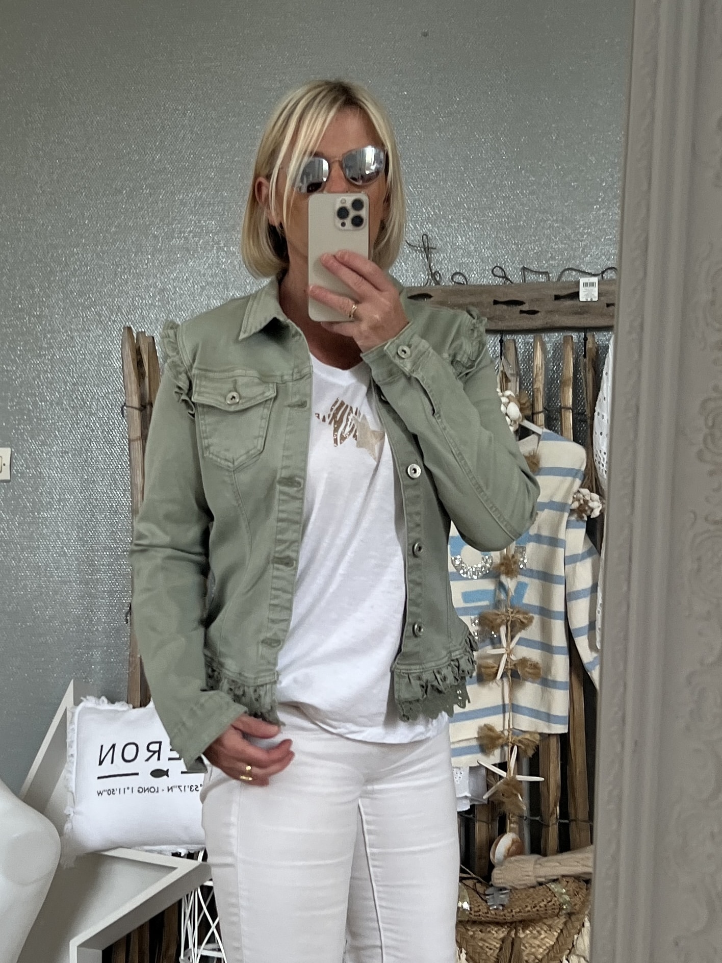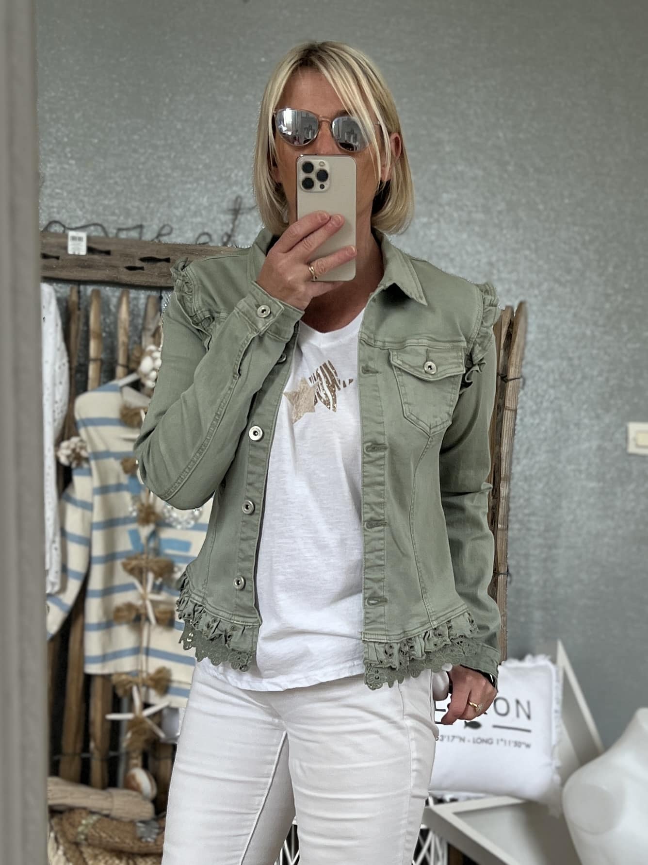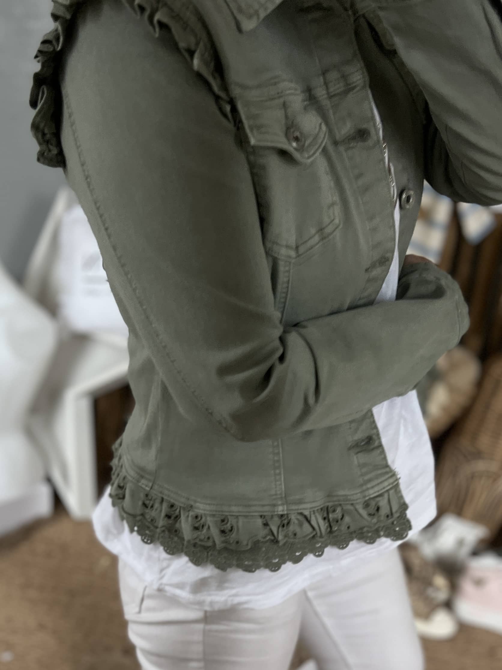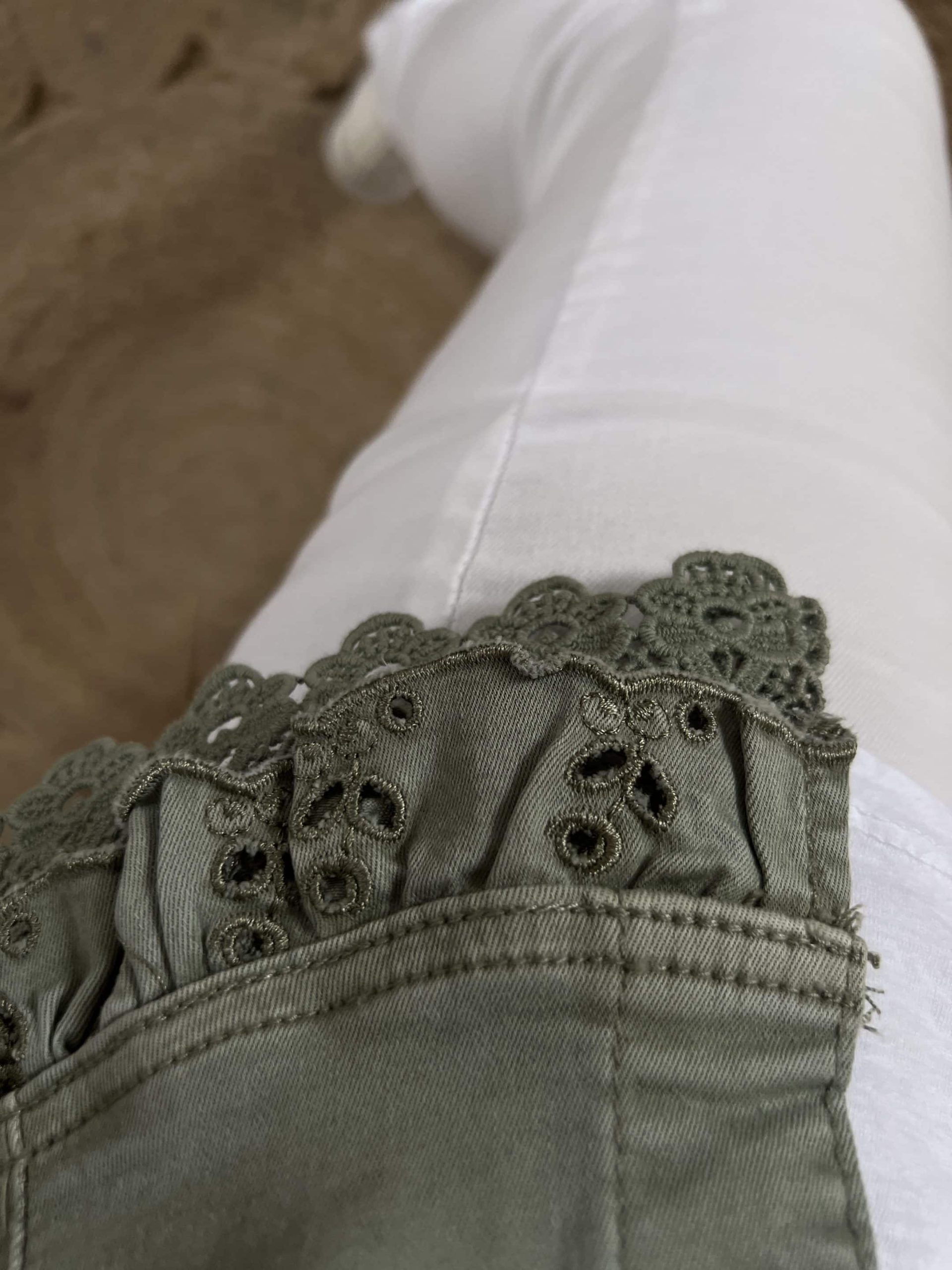 Blouson coton elasthane broderie en bas petites manches volantes juste magnifique