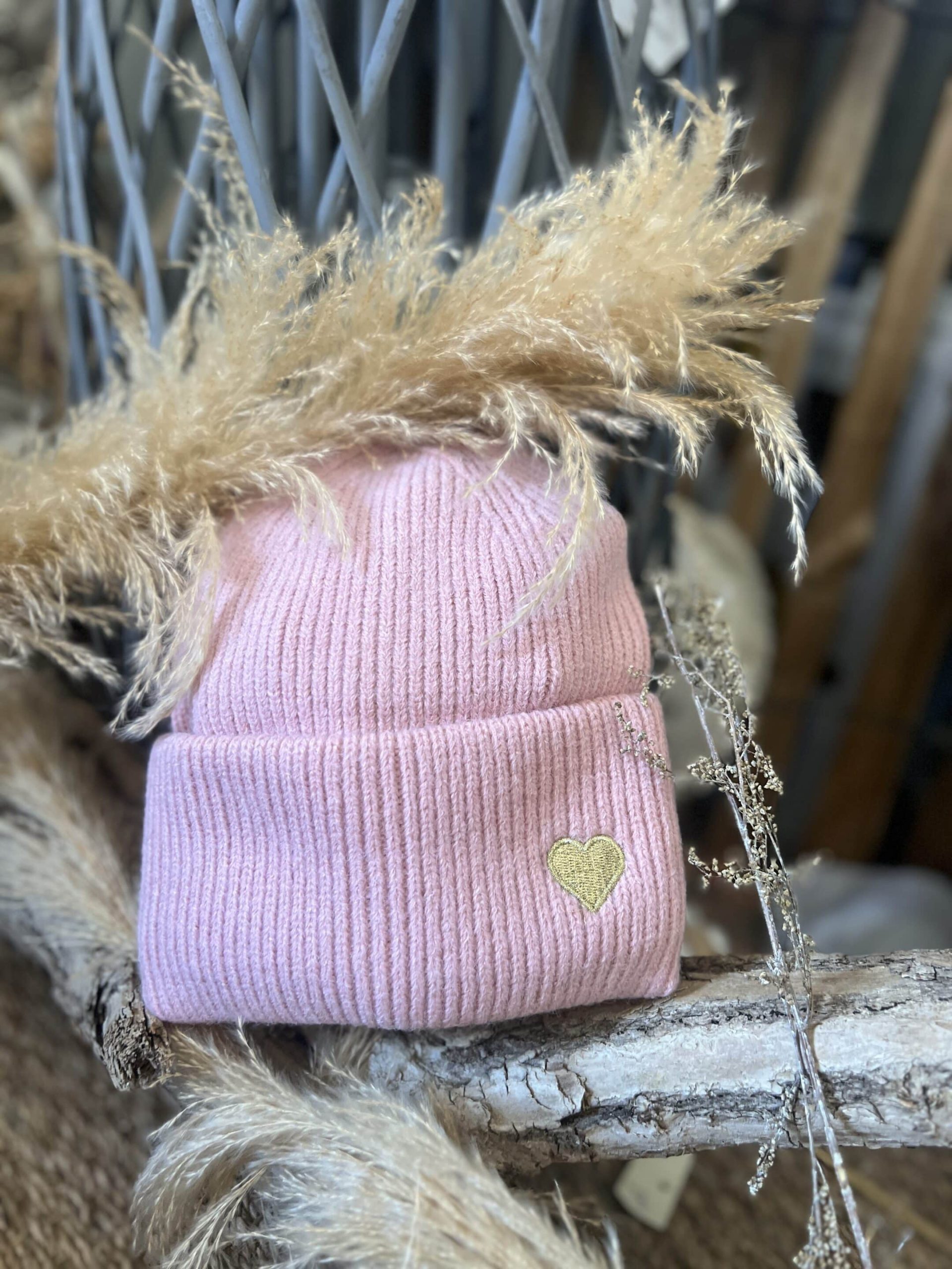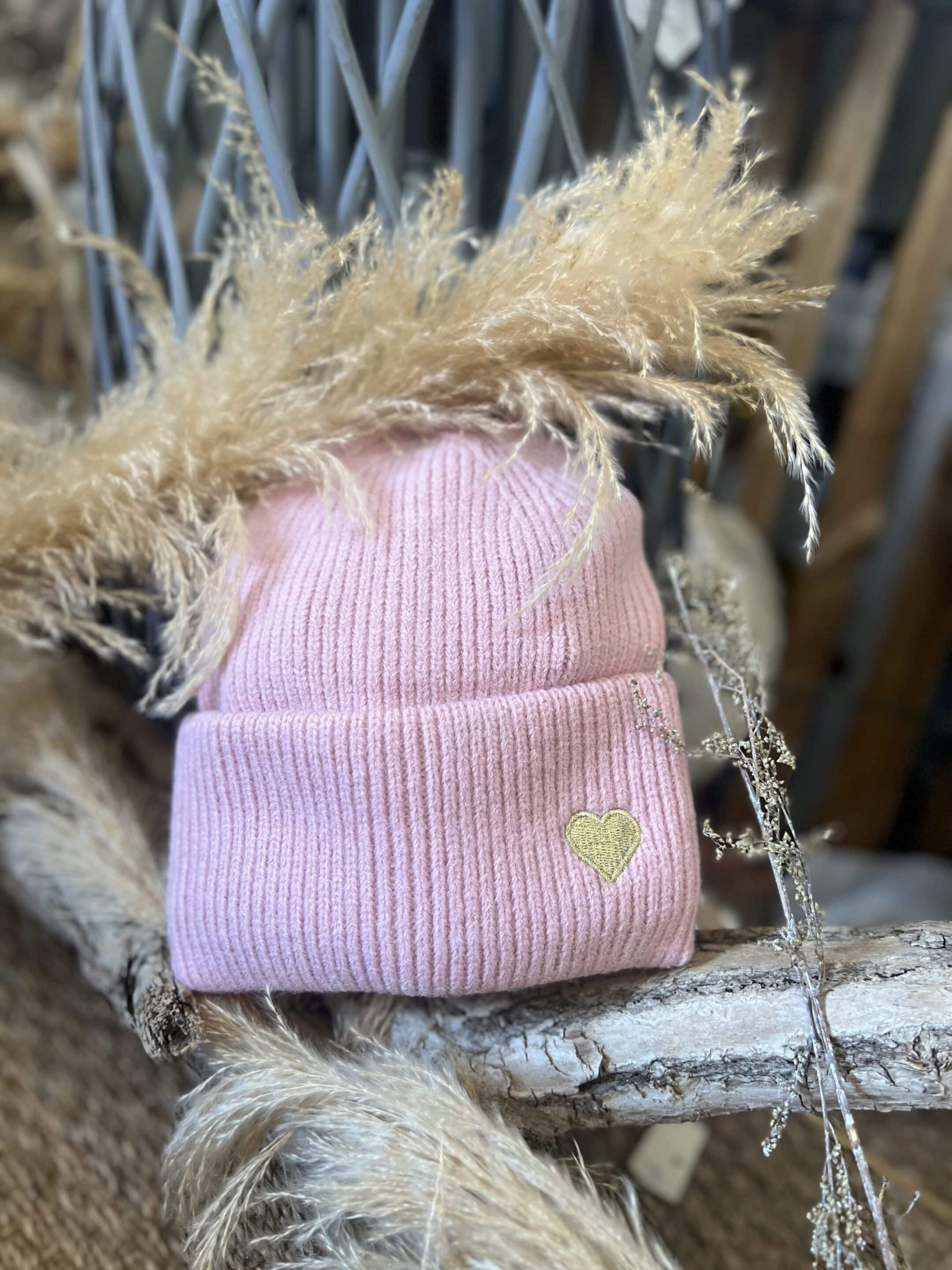Bonnet rose cœur doré