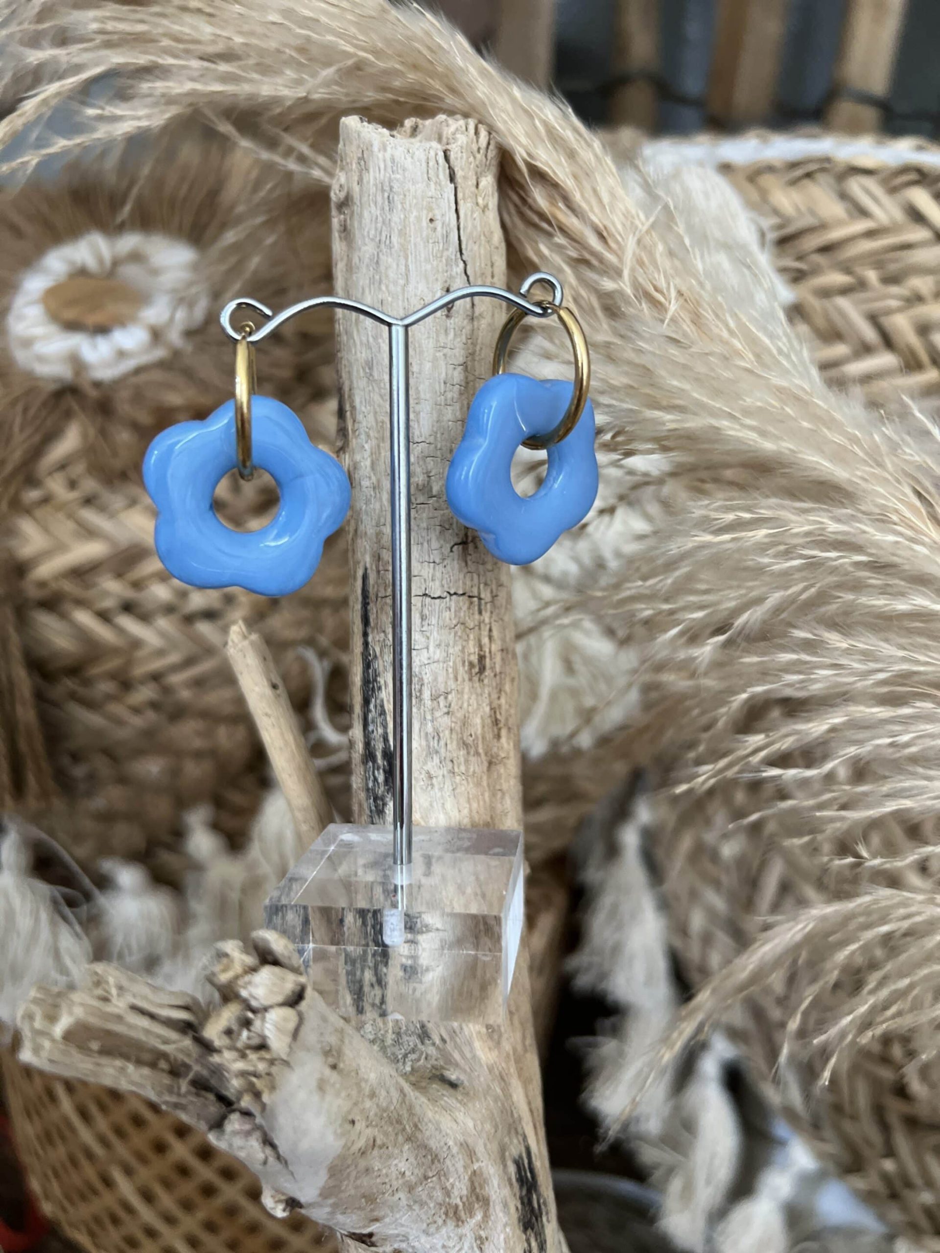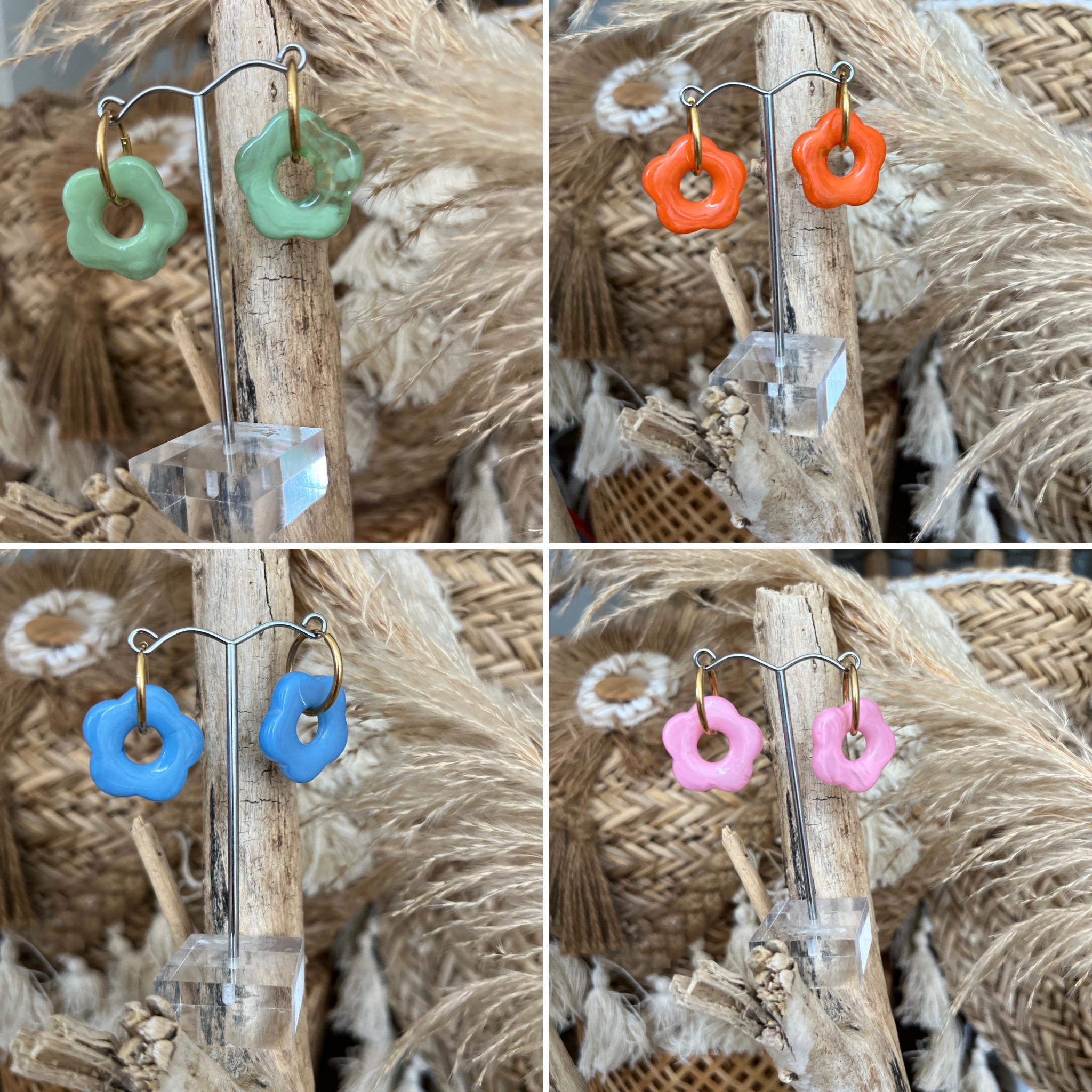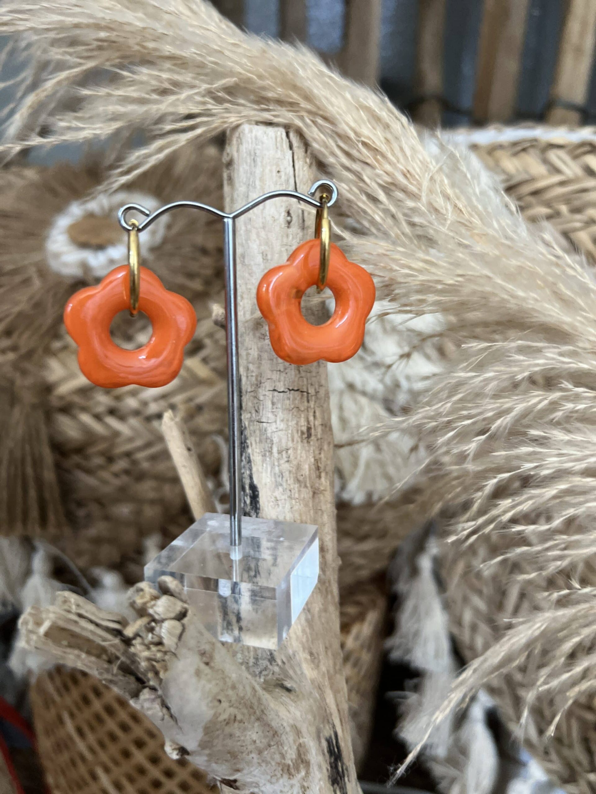 Boucles acier inoxydable doré fleur résine imitant céramique