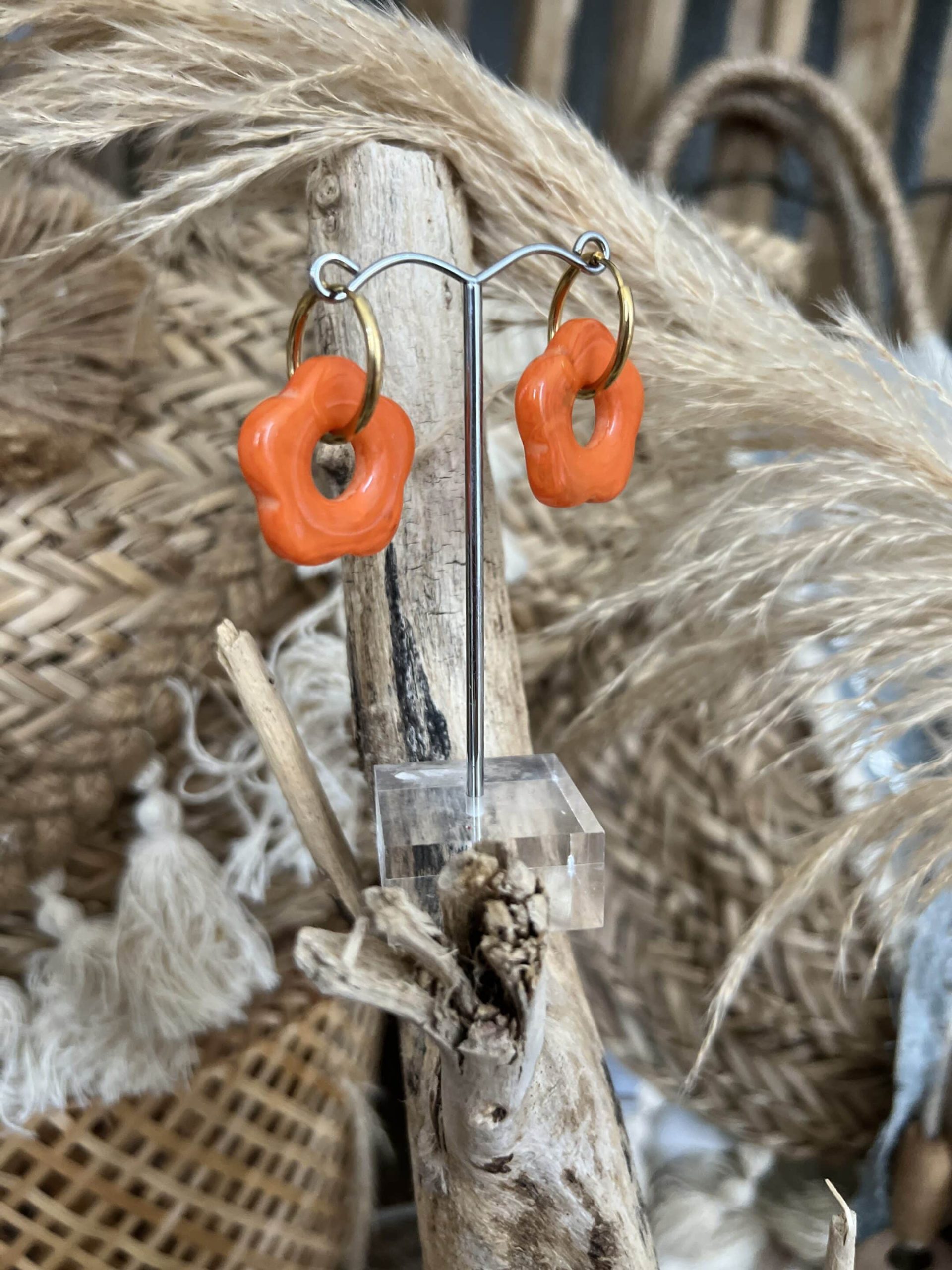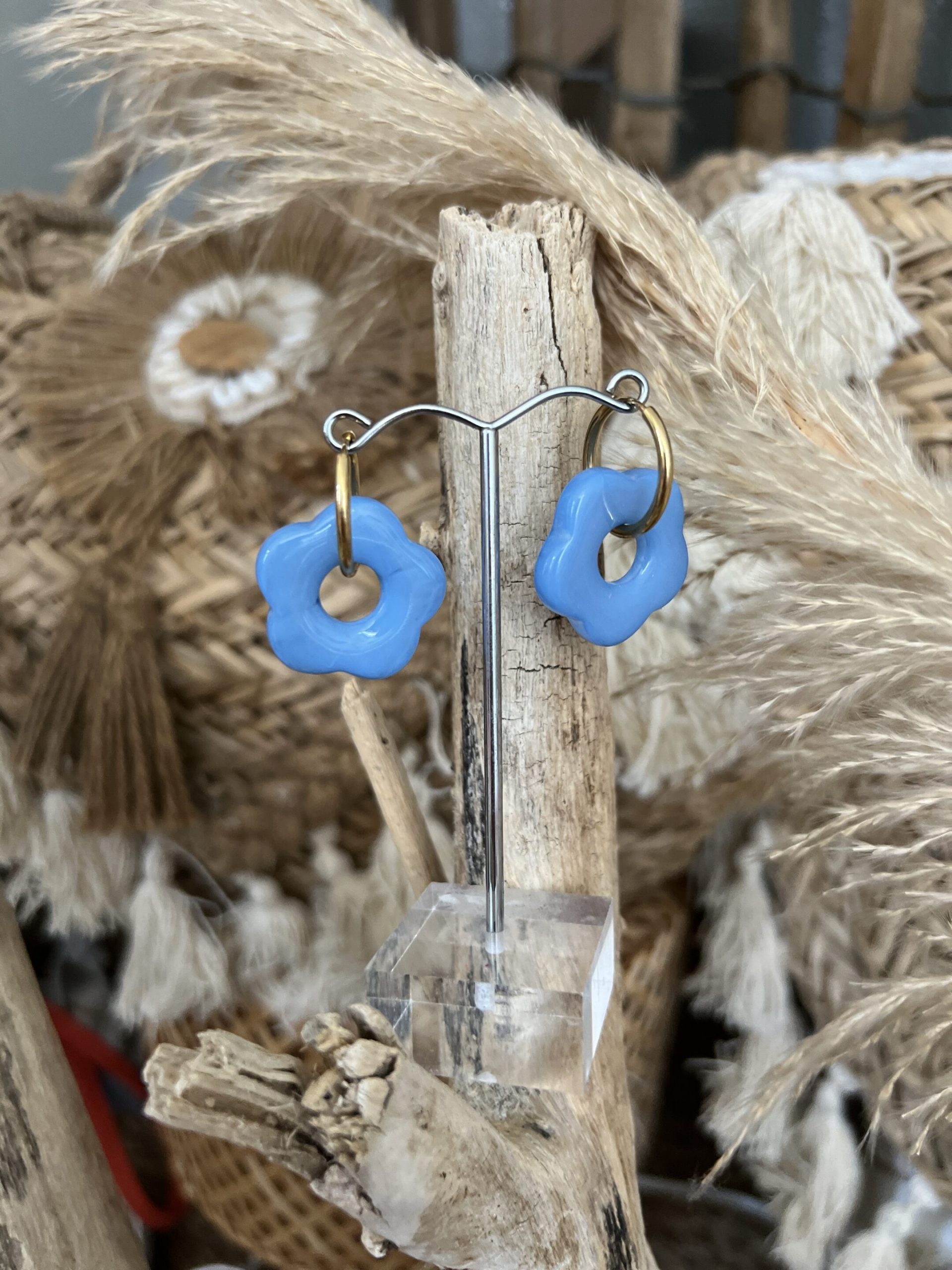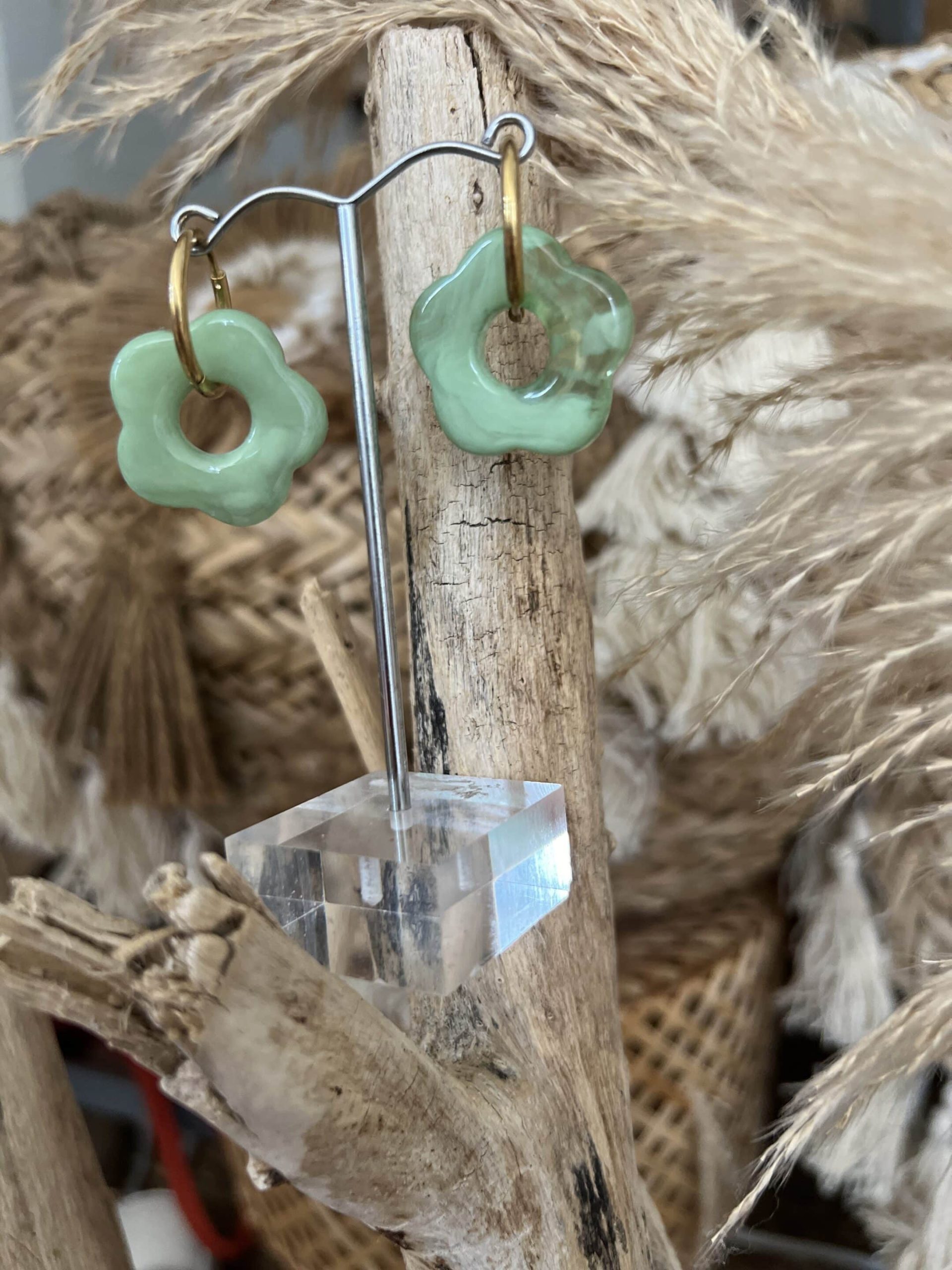 Boucles acier inoxydable doré fleur résine imitant céramique