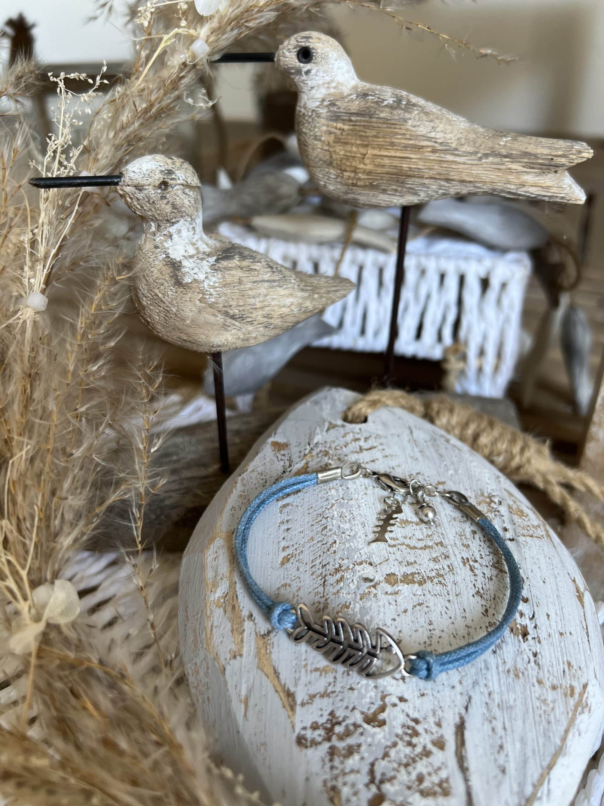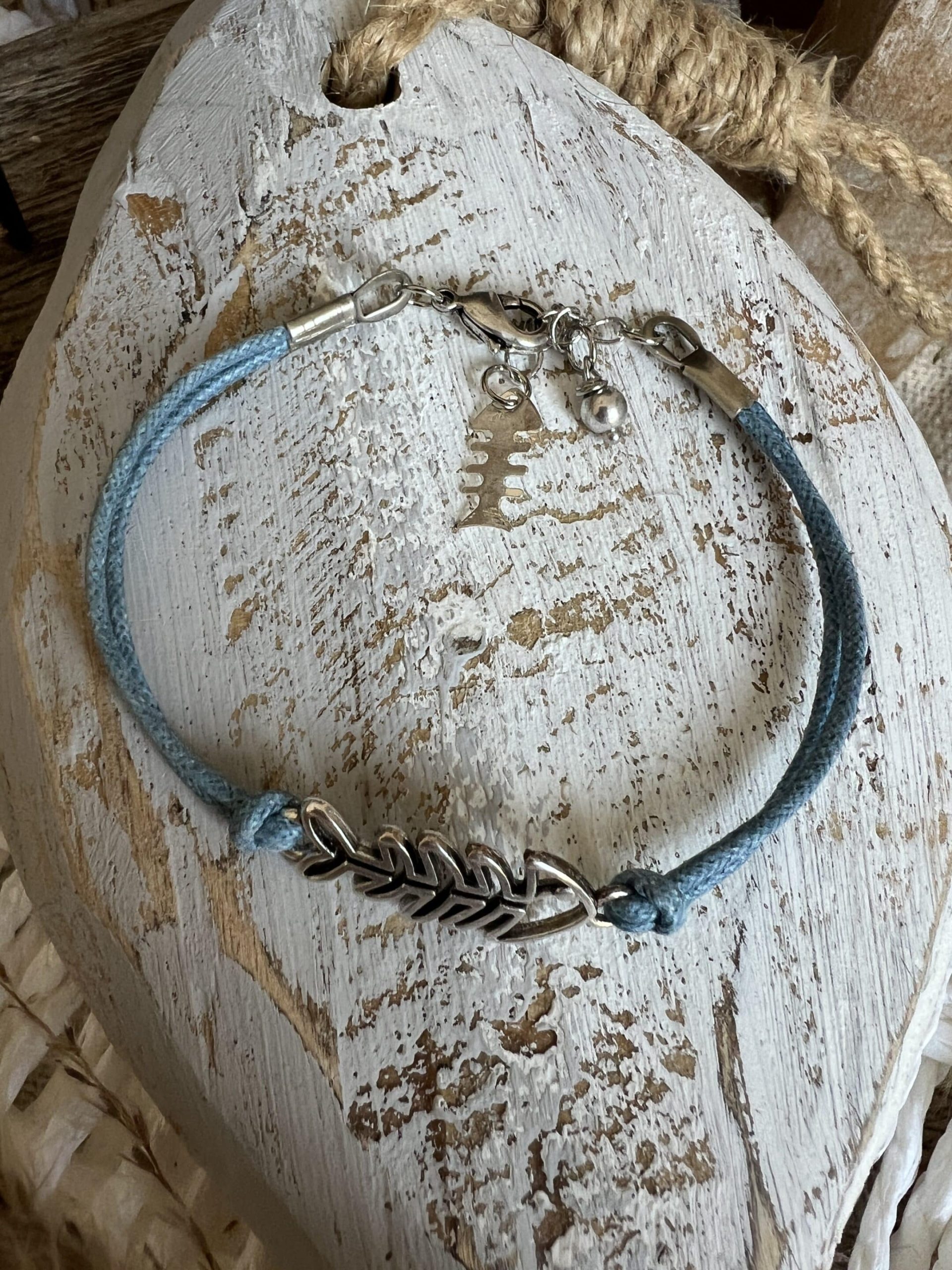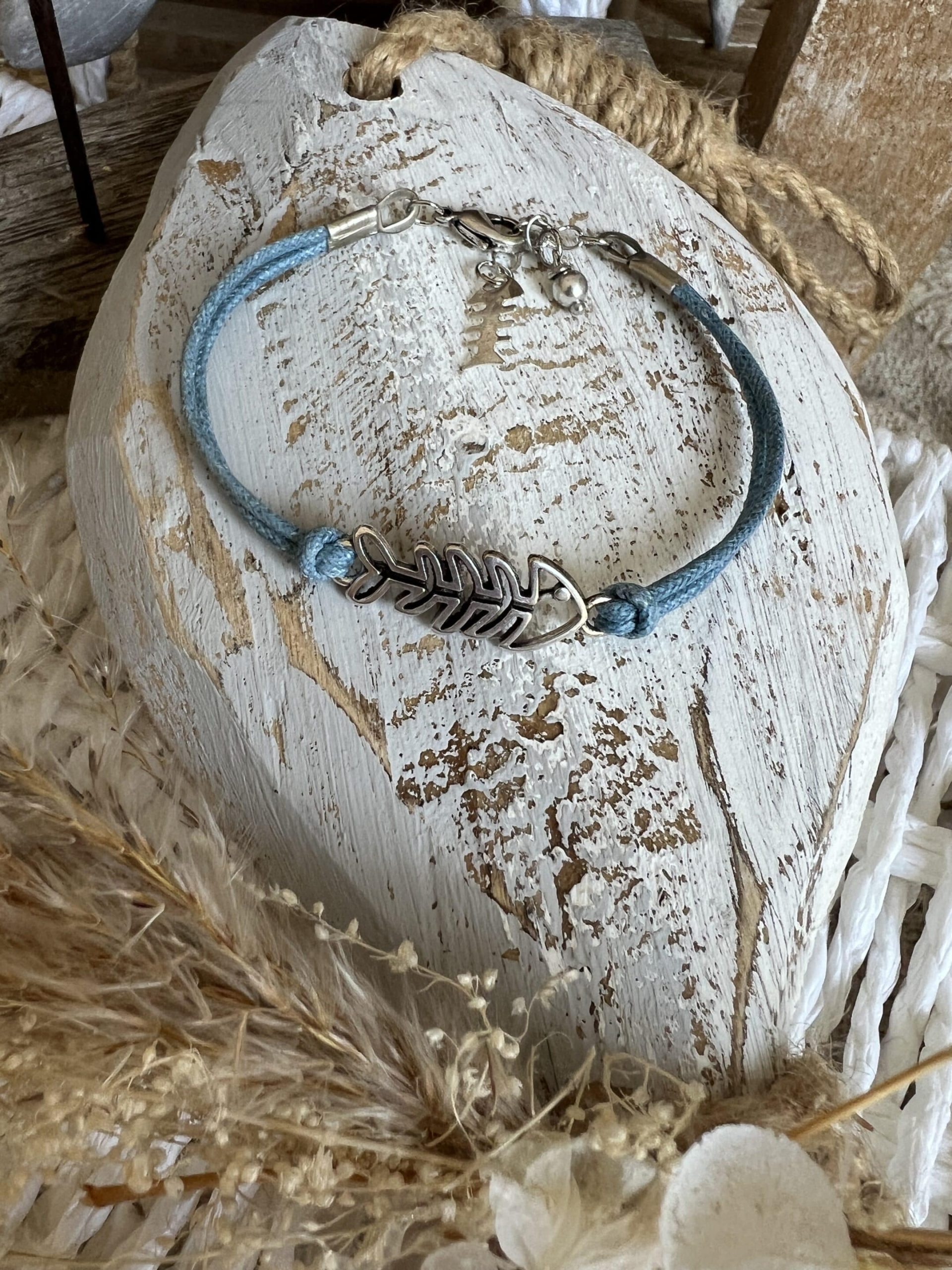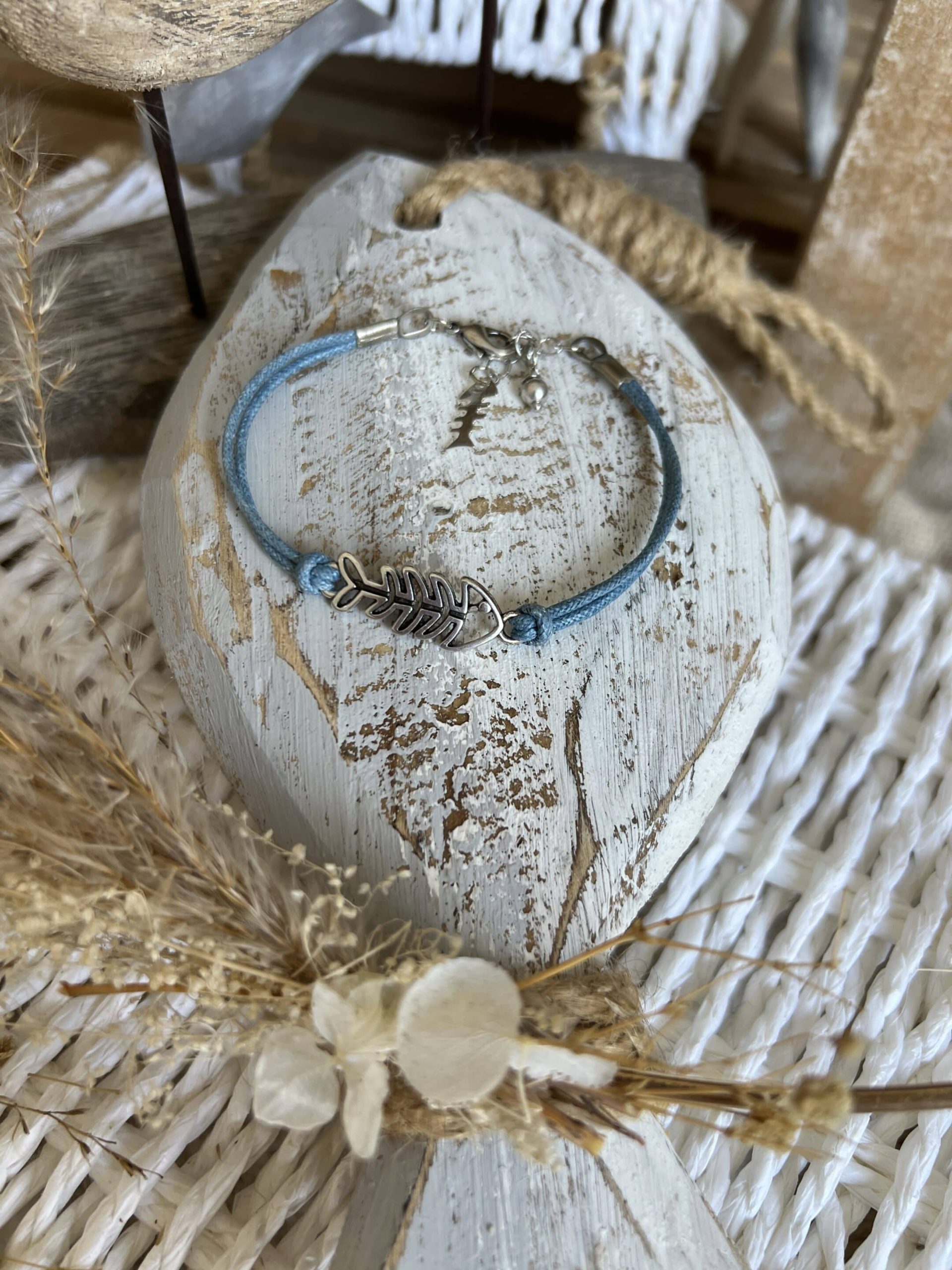 Bracelet coton cire perle métal argentées sans nickel chaînette de réglage ne pas se baigner avec, la pampille au bout du bracelet est aléatoire mais toujours en rapport avec le thème mer