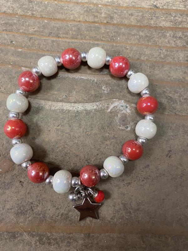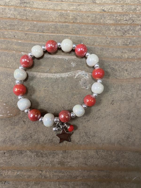 Bracelet élastique perles céramiques perles métal argenté sans nickel