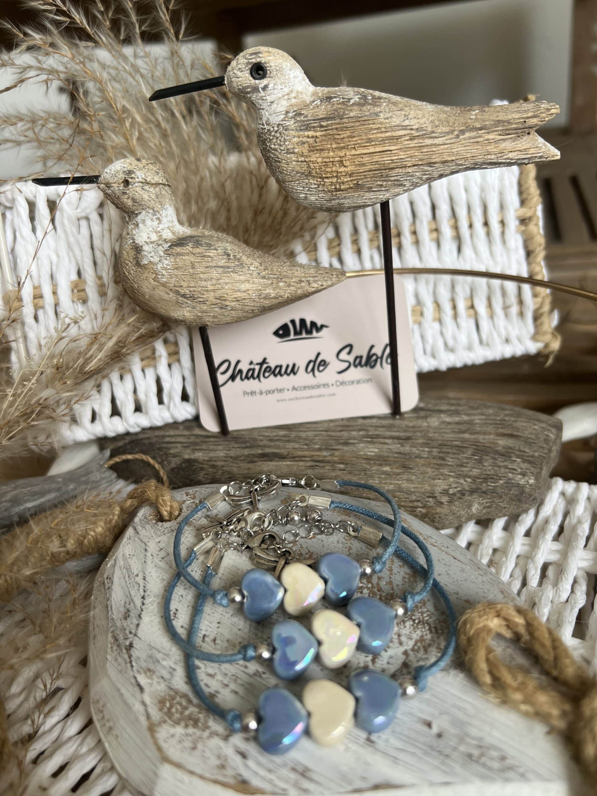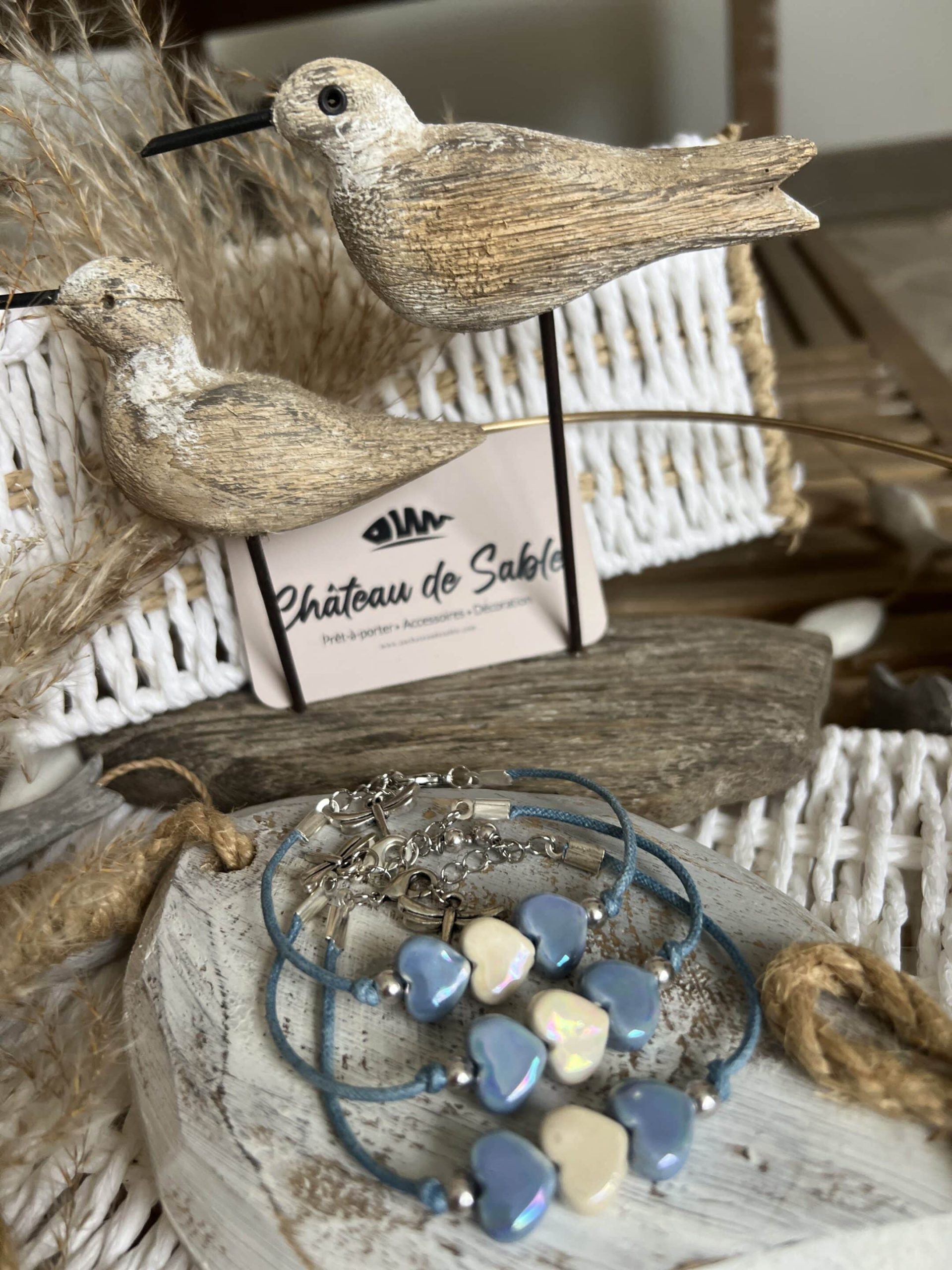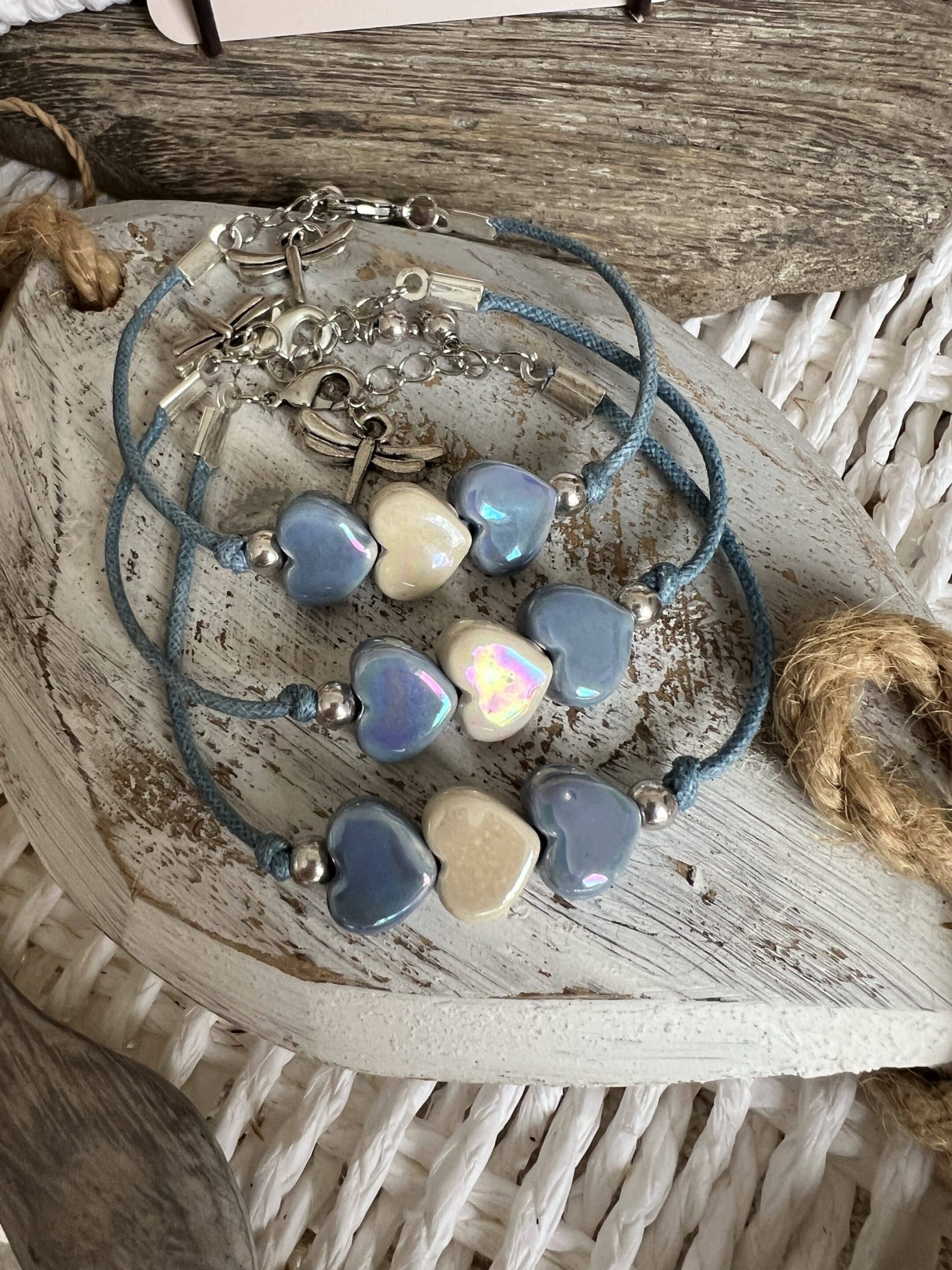 Bracelet coton cire perles céramiques grecques perle métal argentées sans nickel chaînette de réglage ne pas se baigner avec