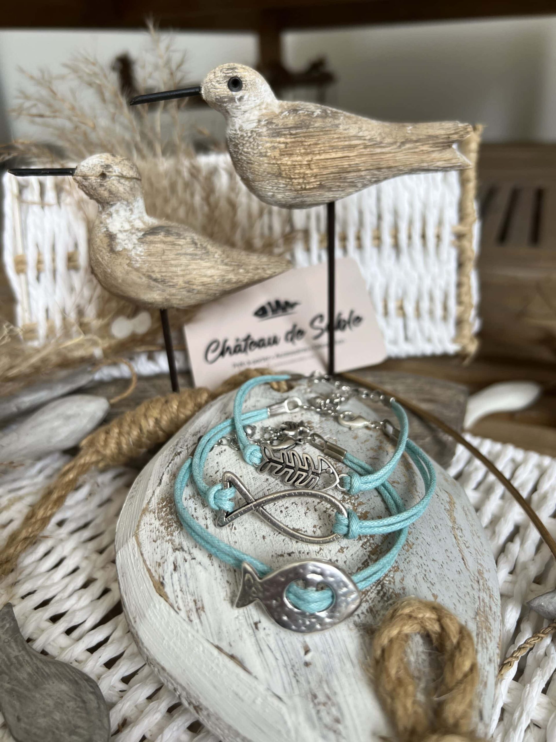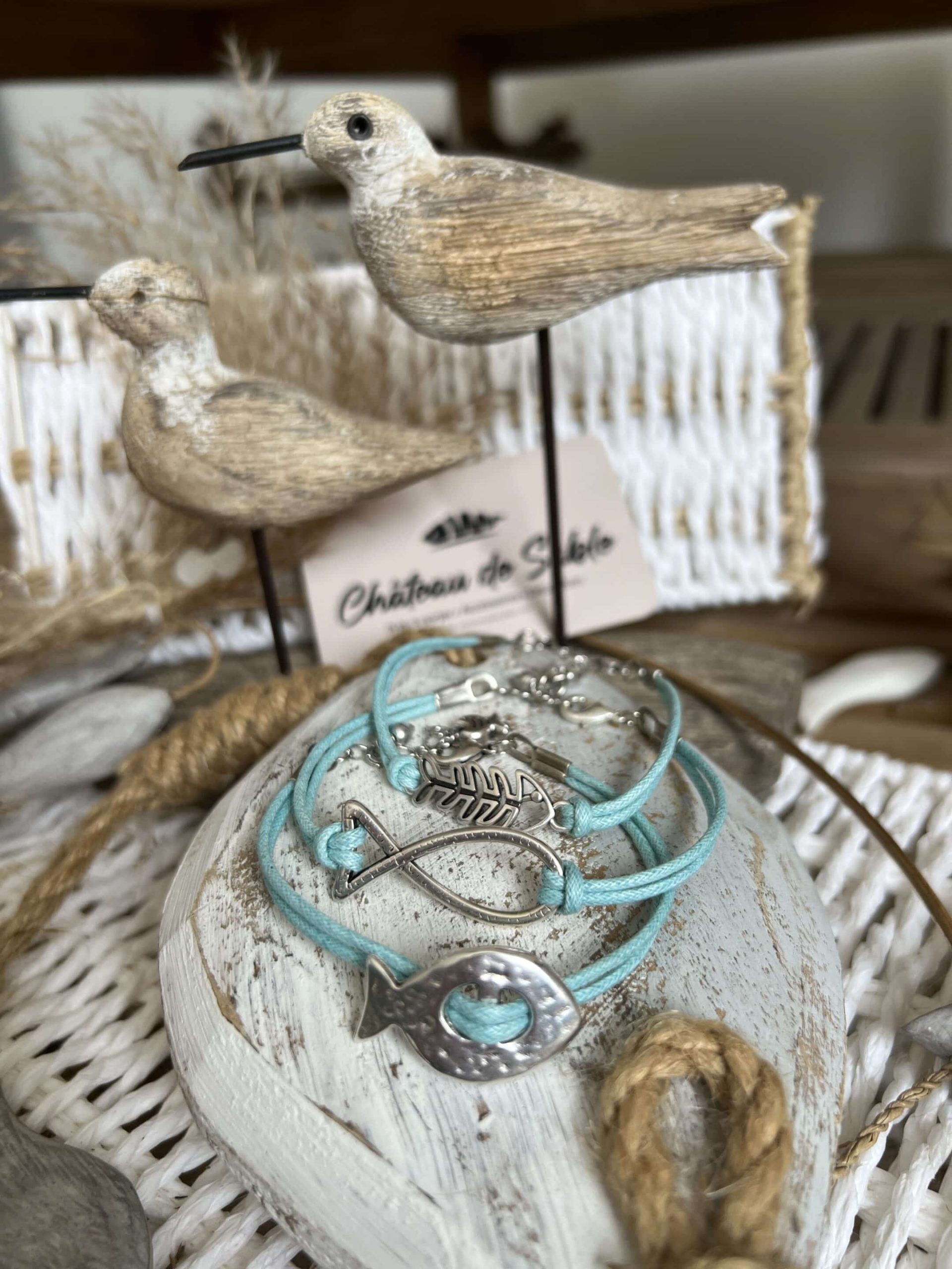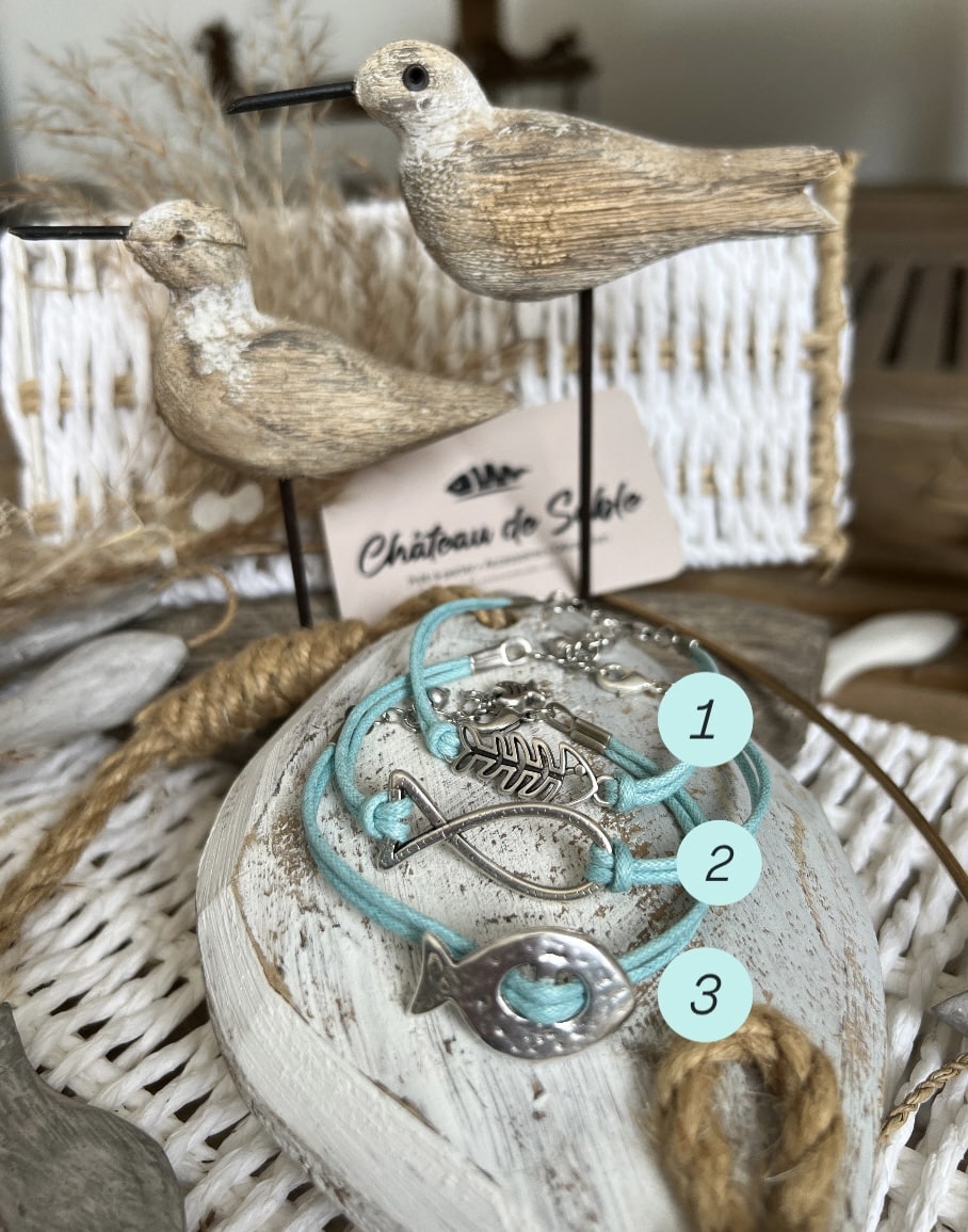 Bracelet métal argenté sans nickel coton ciré création et fabrication CDS