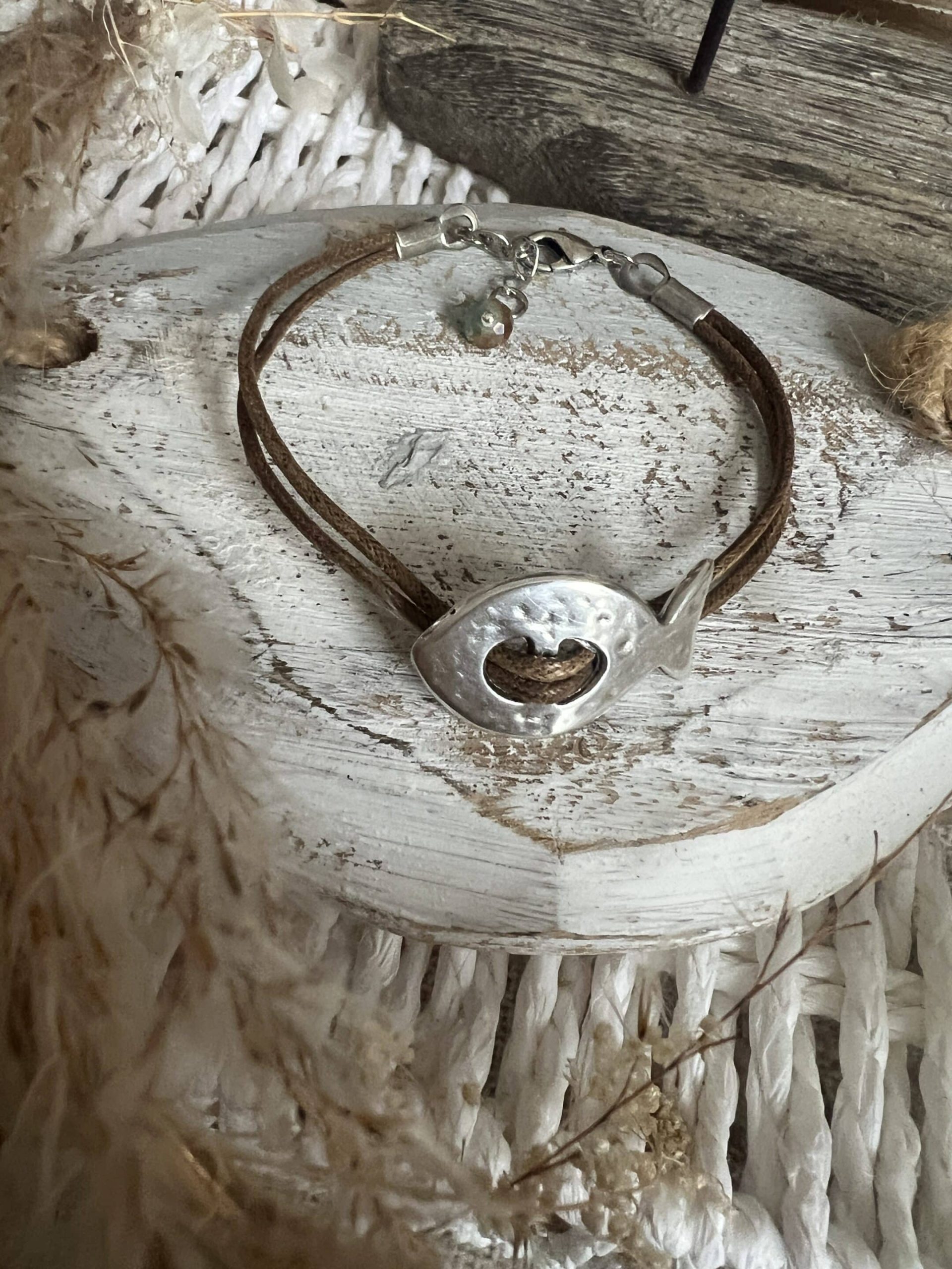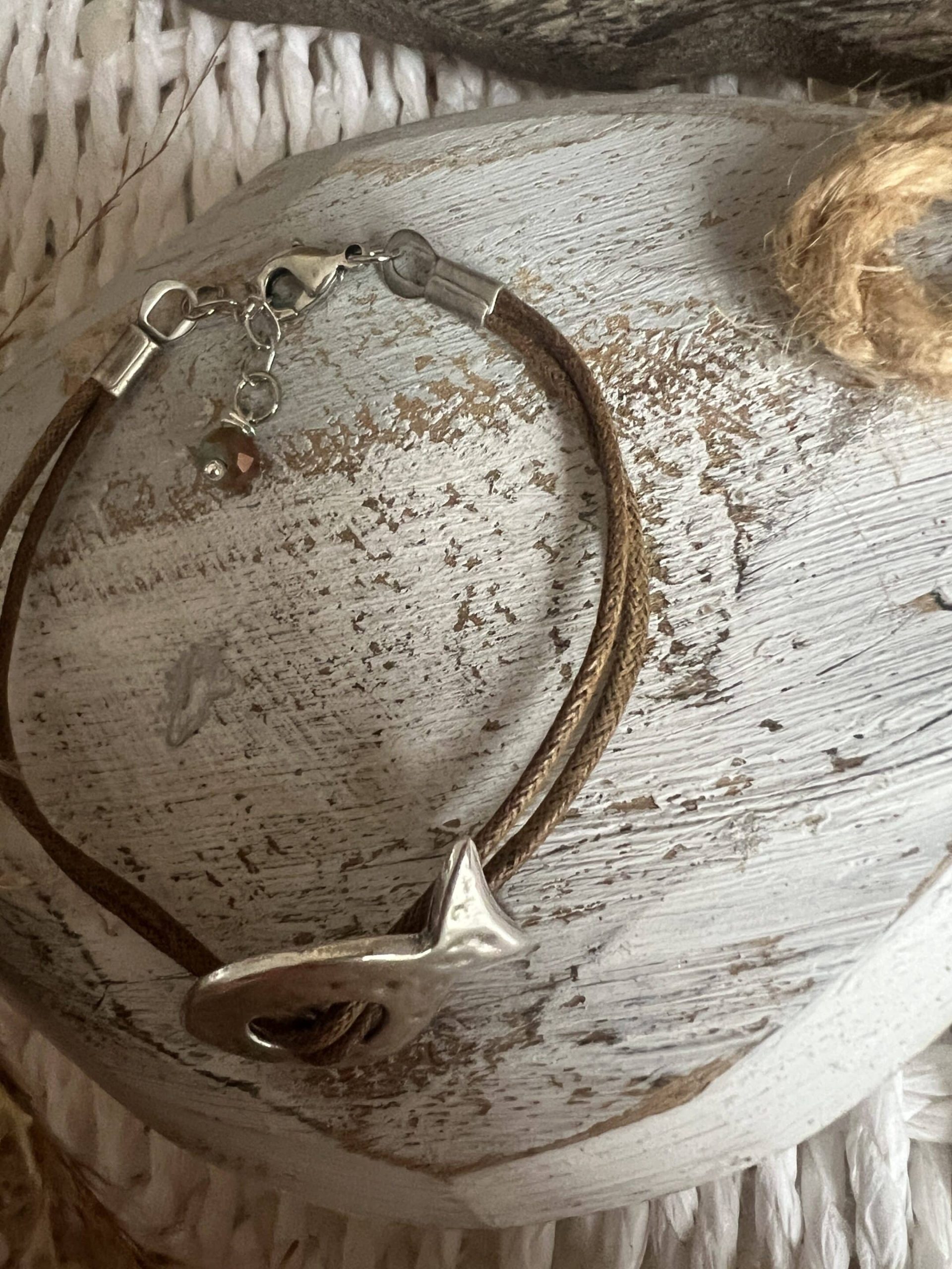 Bracelet étal argenté sans nickel coton cire 16cms plus chaînette création et fabrication CDS