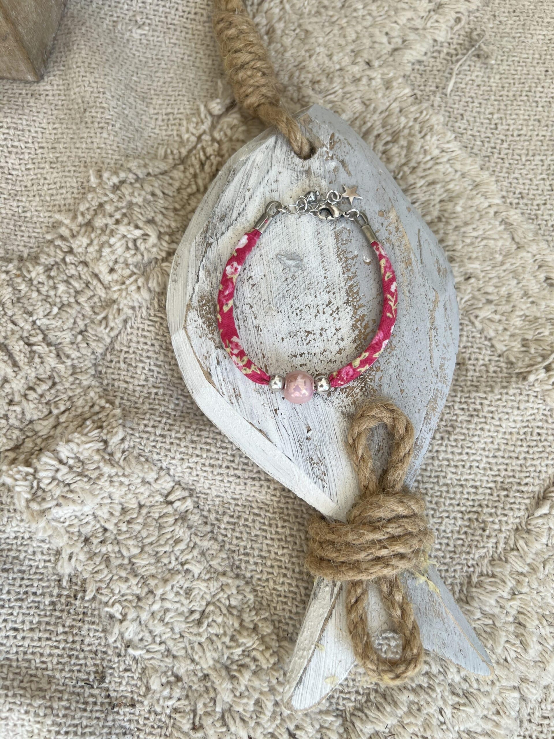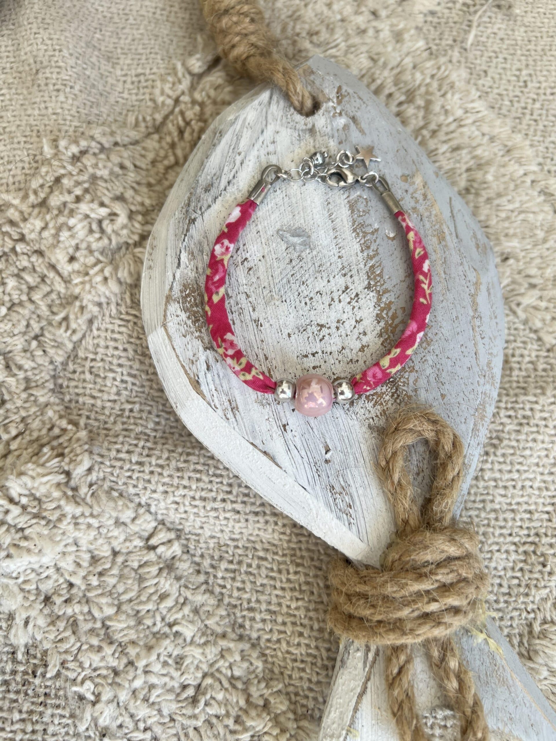 Bracelet tissu Liberty perles Métal sans nickel perle céramique grecque 16cms plus chaînette Fabcrication chateau de sable