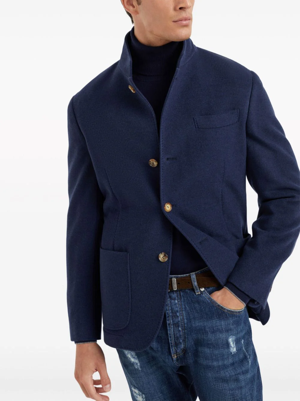 BRUNELLO CUCCINELI – blazer imperméable en cachemire bleu marine