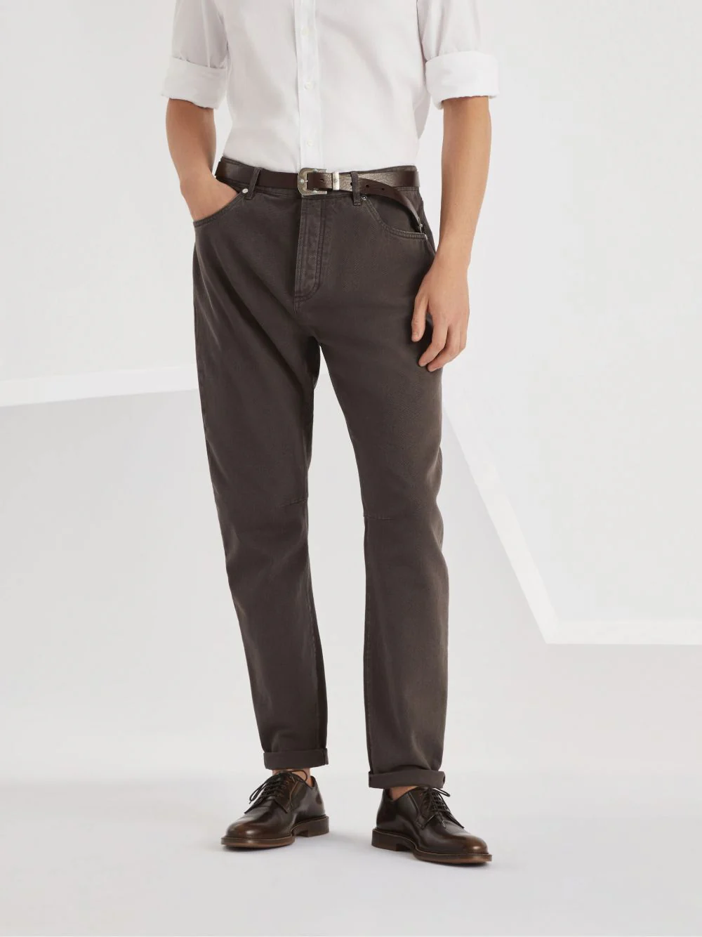 BRUNELLO CUCCINELI – jean à effet délavé marron