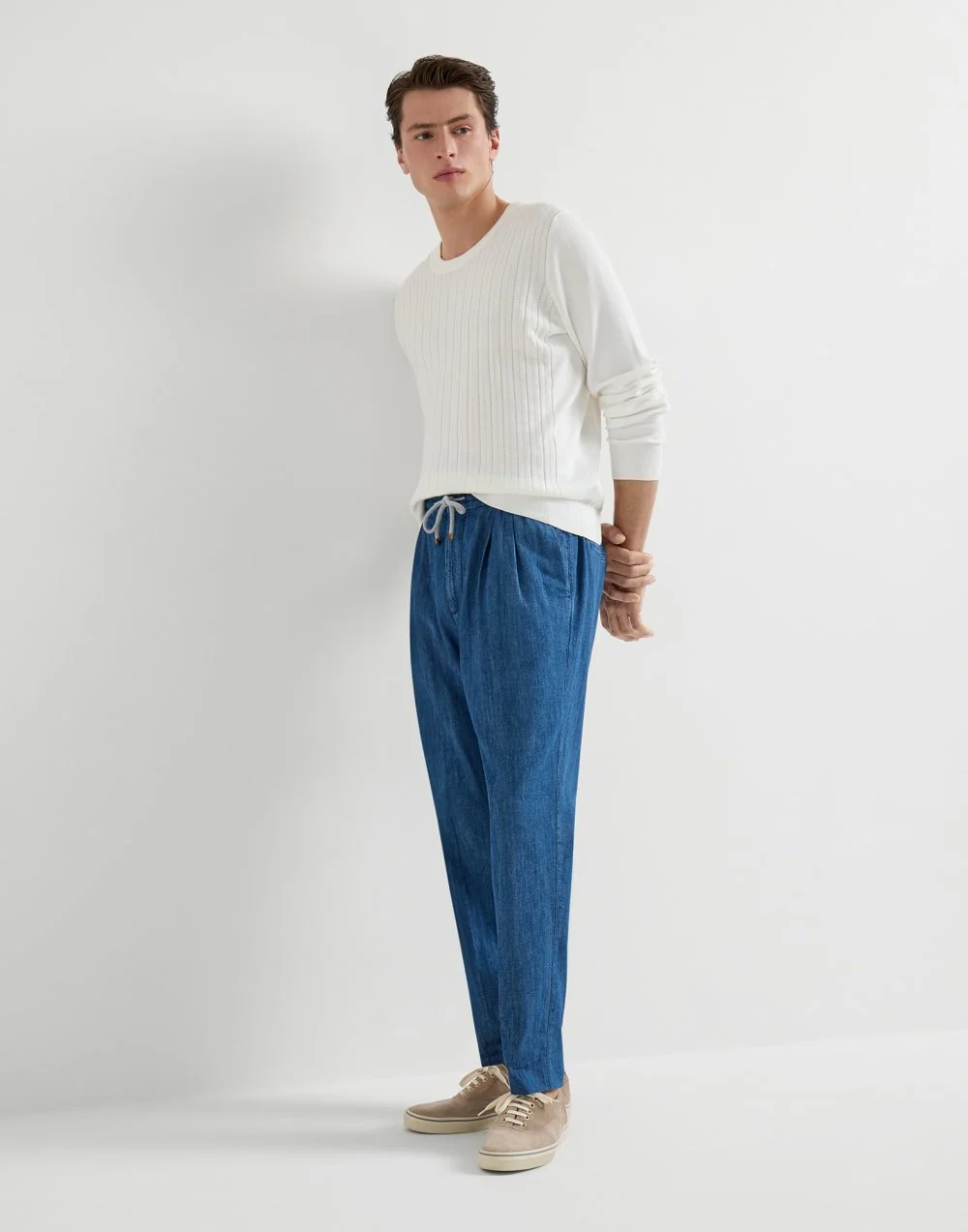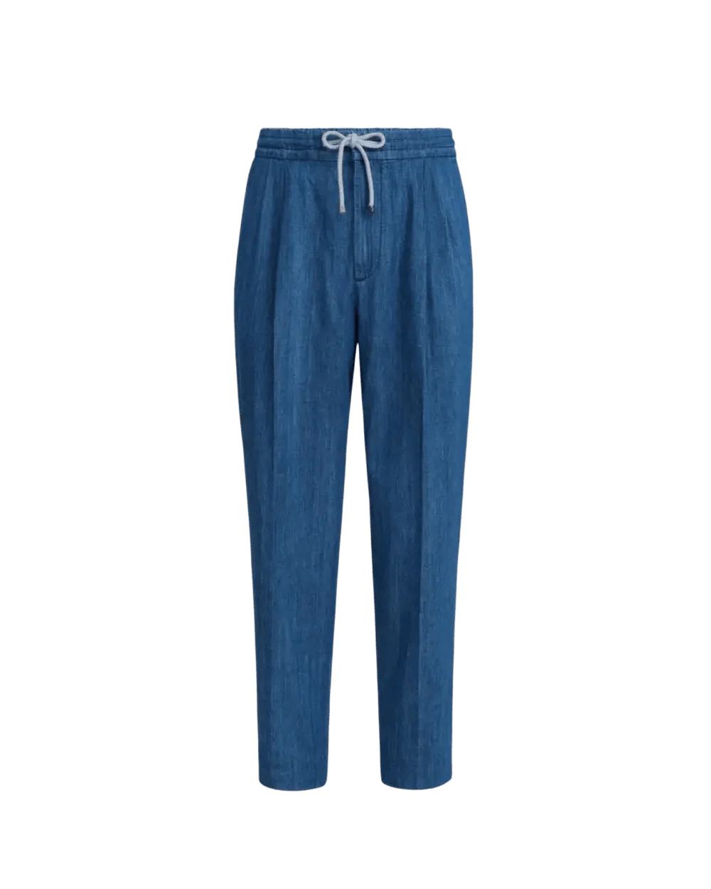 BRUNELLO CUCINELLI – Pantalon en denim léger à coulisse et double pince Bleu