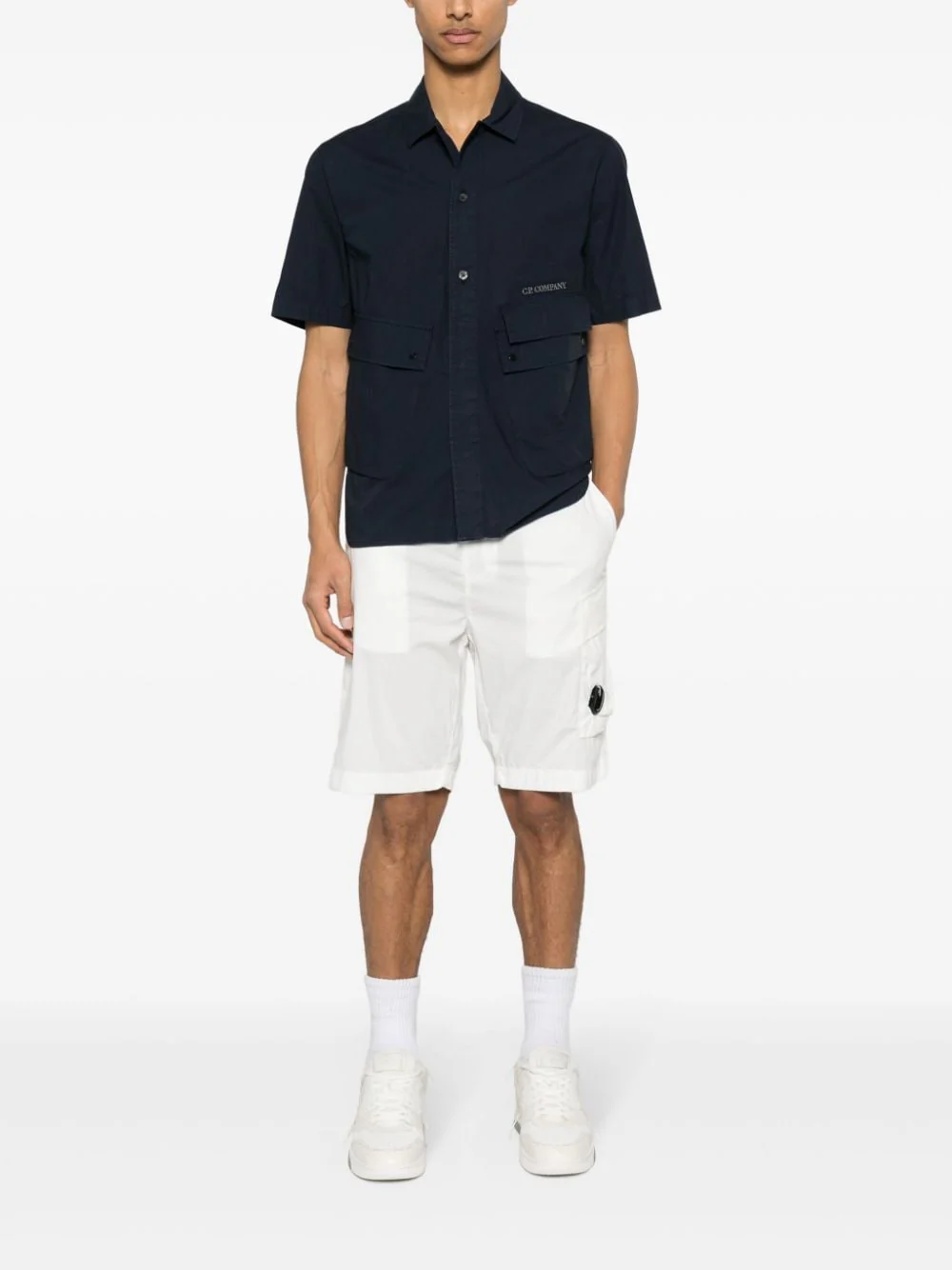 bermuda à verre de lunettes blanc coton construction stretch passants de ceinture deux poches passepoilées latérales deux poches cargo à détail de verre de lunette patch logo sur l’arrière poche arrière passepoilée poche arrière zippée ourlet droit fermeture à braguette dissimulée et bouton C.P. ^ C.P. COMPANY suggère de retirer tout accessoire détachable avant le […]