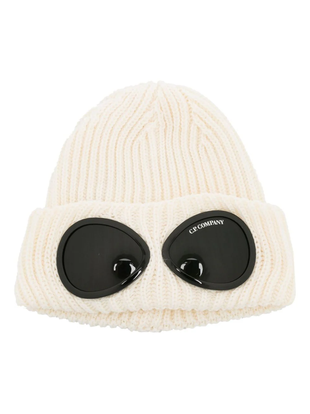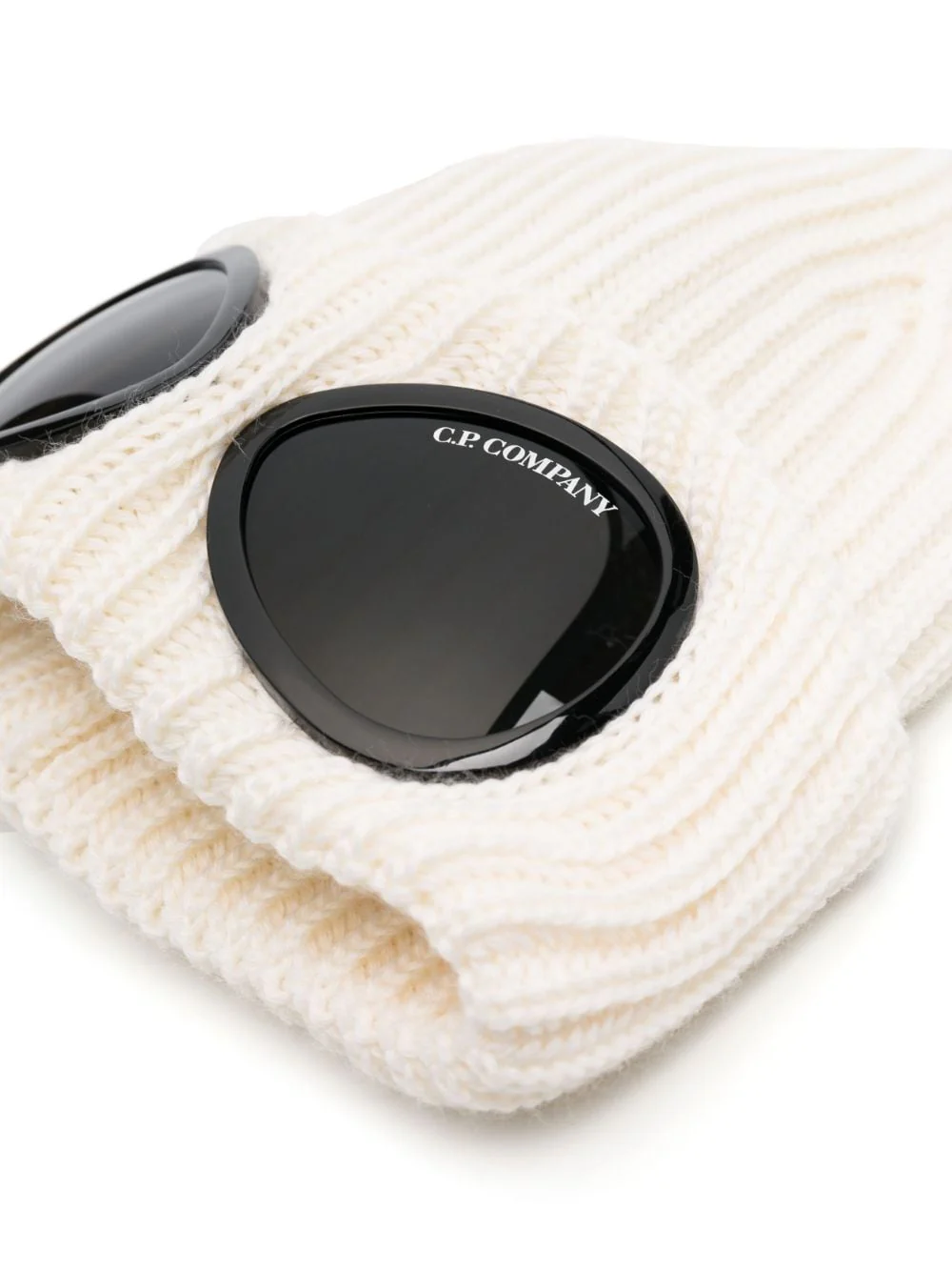 Ce bonnet tricoté dans une épaisse maille côtelée arbore les emblématiques lunettes C.P. Company sur le bord.